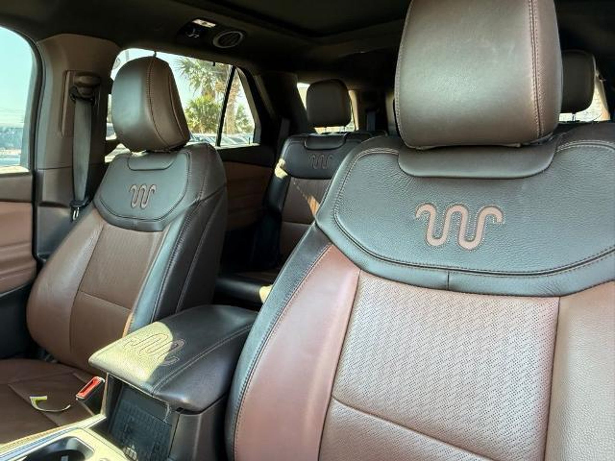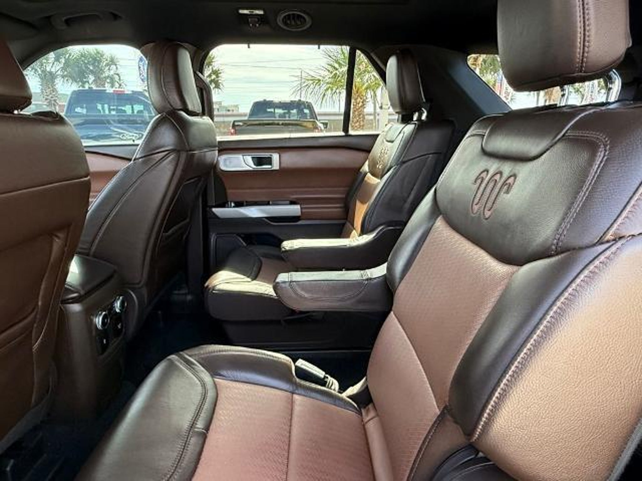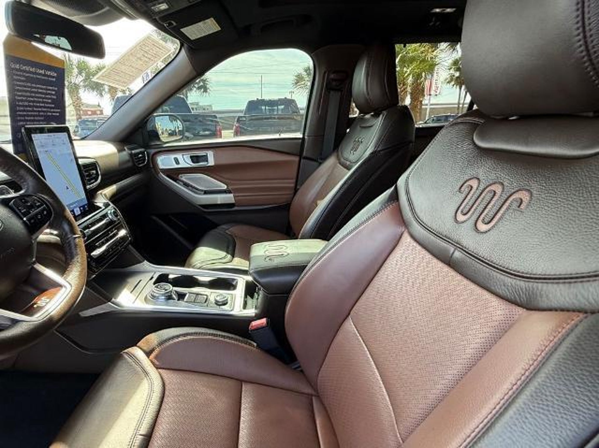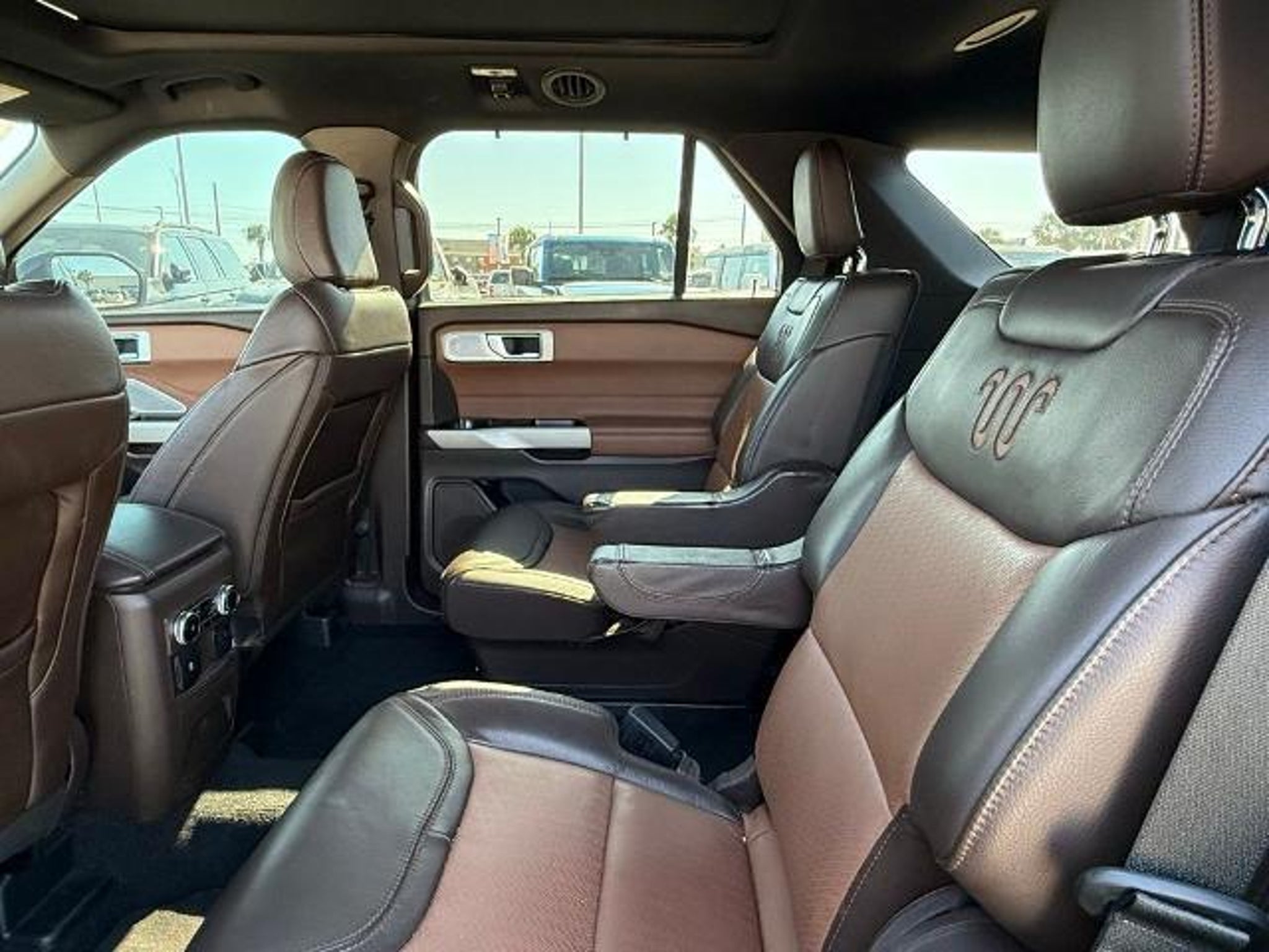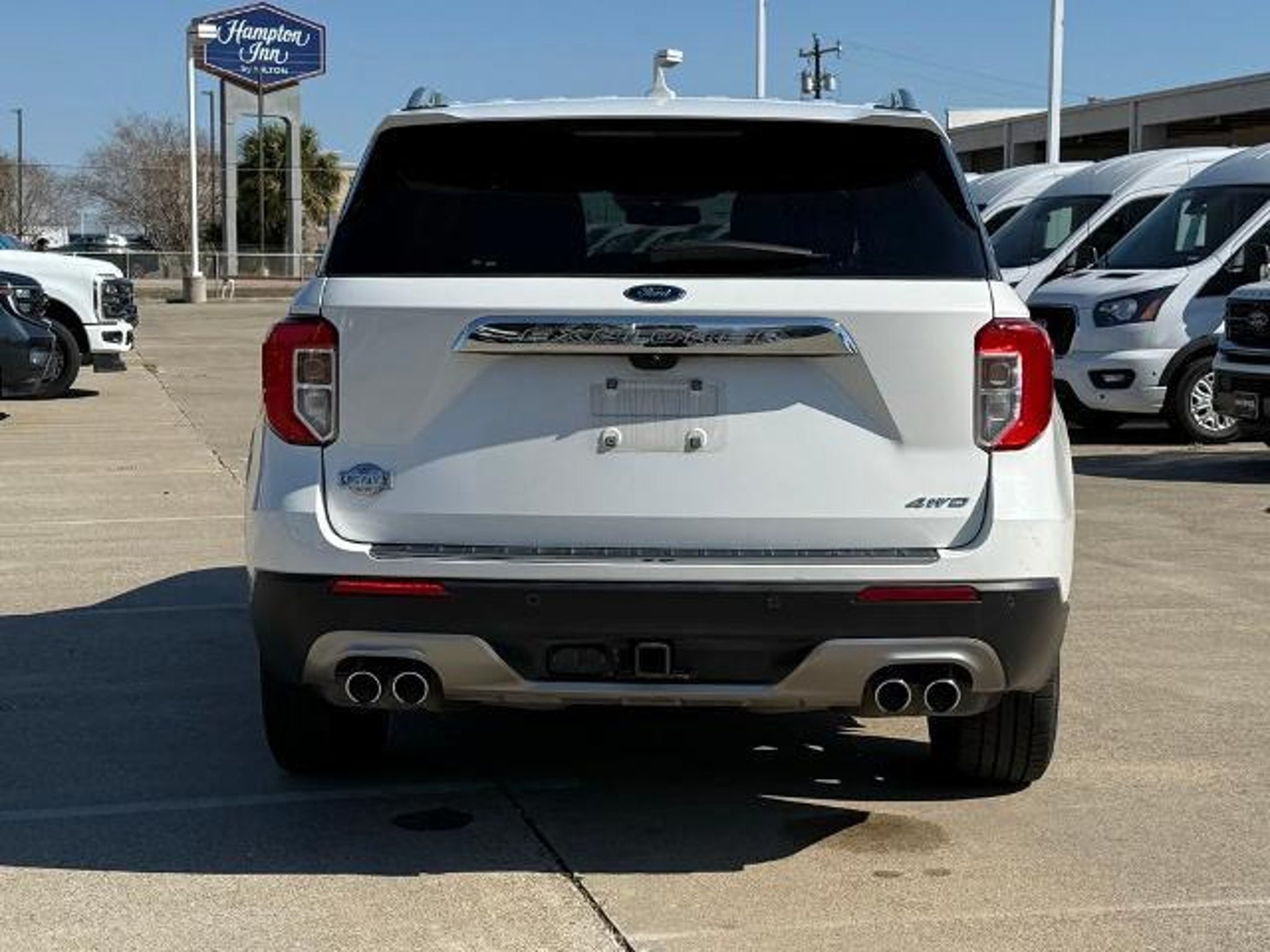 Star White Metallic Tri-Coat 2024 Ford Explorer King Ranch 4WD 10-Speed Automatic 3.0L EcoBoost V6 4WD. This vehicle comes equipped with the following features and options: Class IV Trailer Tow Package, Equipment Group 701A, Technology Package (10.1 LCD Capacitive Portrait Touchscreen and 2 Additional Speakers), 4WD, 12 Speakers, 3.31 Non-Limited-Slip Rear Axle Ratio, 360-Degree Camera Credit, 3rd row seats: bench, 4-Wheel Disc Brakes, 4G LTE Wi-Fi Hotspot Credit, ABS brakes, Air Conditioning, Alloy wheels, AM/FM radio: SiriusXM, Auto High-beam Headlights, Auto-dimming door mirrors, Auto-dimming Rear-View mirror, Automatic temperature control, Brake assist, Bumpers: body-color, Cargo Area Management System, Compass, Delay-off headlights, Driver door bin, Driver vanity mirror, Dual front impact airbags, Dual front side impact airbags, Electronic Stability Control, Emergency communication system: SYNC 3 911 Assist, Exterior Parking Camera Rear, FordPass Connect, Four wheel independent suspension, Front anti-roll bar, Front Bucket Seats, Front Center Armrest, Front dual zone A/C, Front fog lights, Front reading lights, Fully automatic headlights, Garage door transmitter, Genuine wood dashboard insert, Heated door mirrors, Heated front seats, Heated rear seats, Heated steering wheel, Illuminated entry, Knee airbag, Leather steering wheel, Low tire pressure warning, Memory seat, Mesa Del Rio Lthr Htd/Vent Sport Capt's Chairs, Navigation System, Occupant sensing airbag, Outside temperature display, Overhead airbag, Overhead console, Panic alarm, Passenger door bin, Passenger vanity mirror, Power door mirrors, Power driver seat, Power Liftgate, Power passenger seat, Power steering, Power windows, Radio data system, Radio: B&O Sound System by Bang & Olufsen, Rain sensing wipers, Rear air conditioning, Rear anti-roll bar, Rear reading lights, Rear window defroster, Rear window wiper, Remote keyless entry, Reverse Brake Assist Credit, Security system, Speed control, Speed-sensing steering, Speed-Sensitive Wipers, Split folding rear seat, Spoiler, Steering wheel memory, Steering wheel mounted audio controls, SYNC 3 Communications & Entertainment System, SYNC 3/Apple CarPlay/Android Auto, Tachometer, Telescoping steering wheel, Tilt steering wheel, Traction control, Trip computer, Turn signal indicator mirrors, Twin Panel Moonroof, Variably intermittent wipers, Ventilated front seats, Voice-Activated Touchscreen Navigation System, and Wheels: 20 10-Spoke Aluminum w/KR Center Cap.