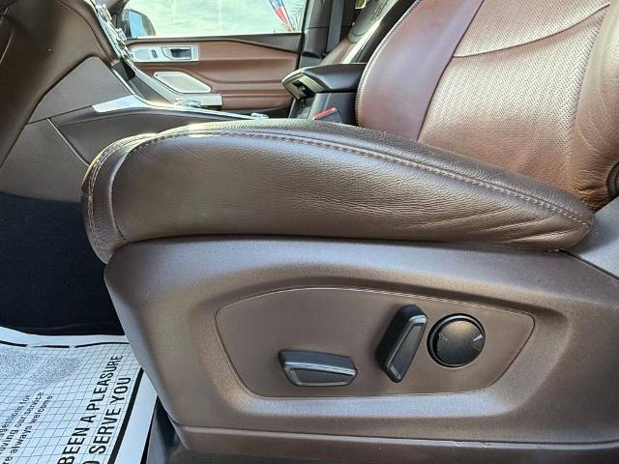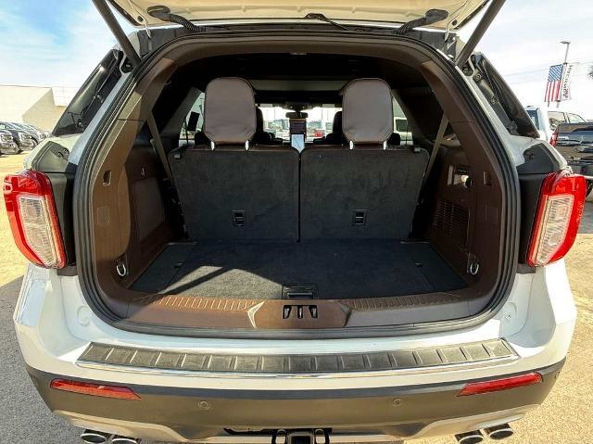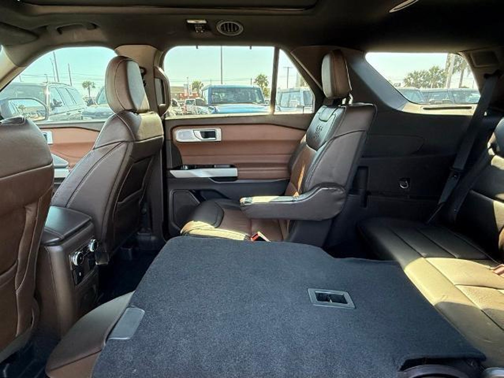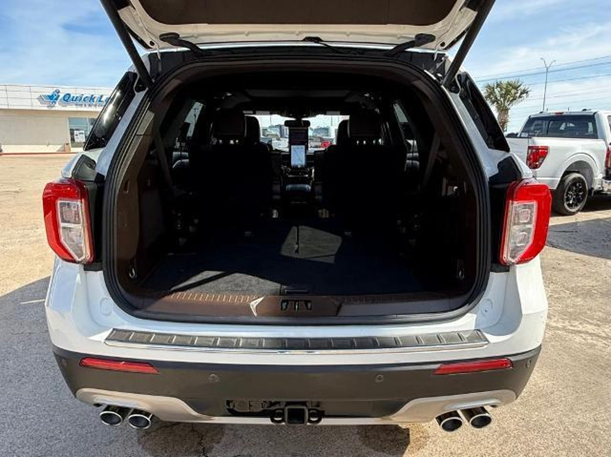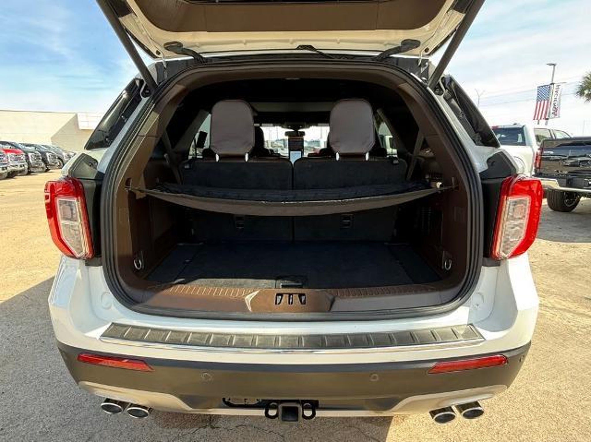 Star White Metallic Tri-Coat 2024 Ford Explorer King Ranch 4WD 10-Speed Automatic 3.0L EcoBoost V6 4WD. This vehicle comes equipped with the following features and options: Class IV Trailer Tow Package, Equipment Group 701A, Technology Package (10.1 LCD Capacitive Portrait Touchscreen and 2 Additional Speakers), 4WD, 12 Speakers, 3.31 Non-Limited-Slip Rear Axle Ratio, 360-Degree Camera Credit, 3rd row seats: bench, 4-Wheel Disc Brakes, 4G LTE Wi-Fi Hotspot Credit, ABS brakes, Air Conditioning, Alloy wheels, AM/FM radio: SiriusXM, Auto High-beam Headlights, Auto-dimming door mirrors, Auto-dimming Rear-View mirror, Automatic temperature control, Brake assist, Bumpers: body-color, Cargo Area Management System, Compass, Delay-off headlights, Driver door bin, Driver vanity mirror, Dual front impact airbags, Dual front side impact airbags, Electronic Stability Control, Emergency communication system: SYNC 3 911 Assist, Exterior Parking Camera Rear, FordPass Connect, Four wheel independent suspension, Front anti-roll bar, Front Bucket Seats, Front Center Armrest, Front dual zone A/C, Front fog lights, Front reading lights, Fully automatic headlights, Garage door transmitter, Genuine wood dashboard insert, Heated door mirrors, Heated front seats, Heated rear seats, Heated steering wheel, Illuminated entry, Knee airbag, Leather steering wheel, Low tire pressure warning, Memory seat, Mesa Del Rio Lthr Htd/Vent Sport Capt's Chairs, Navigation System, Occupant sensing airbag, Outside temperature display, Overhead airbag, Overhead console, Panic alarm, Passenger door bin, Passenger vanity mirror, Power door mirrors, Power driver seat, Power Liftgate, Power passenger seat, Power steering, Power windows, Radio data system, Radio: B&O Sound System by Bang & Olufsen, Rain sensing wipers, Rear air conditioning, Rear anti-roll bar, Rear reading lights, Rear window defroster, Rear window wiper, Remote keyless entry, Reverse Brake Assist Credit, Security system, Speed control, Speed-sensing steering, Speed-Sensitive Wipers, Split folding rear seat, Spoiler, Steering wheel memory, Steering wheel mounted audio controls, SYNC 3 Communications & Entertainment System, SYNC 3/Apple CarPlay/Android Auto, Tachometer, Telescoping steering wheel, Tilt steering wheel, Traction control, Trip computer, Turn signal indicator mirrors, Twin Panel Moonroof, Variably intermittent wipers, Ventilated front seats, Voice-Activated Touchscreen Navigation System, and Wheels: 20 10-Spoke Aluminum w/KR Center Cap.