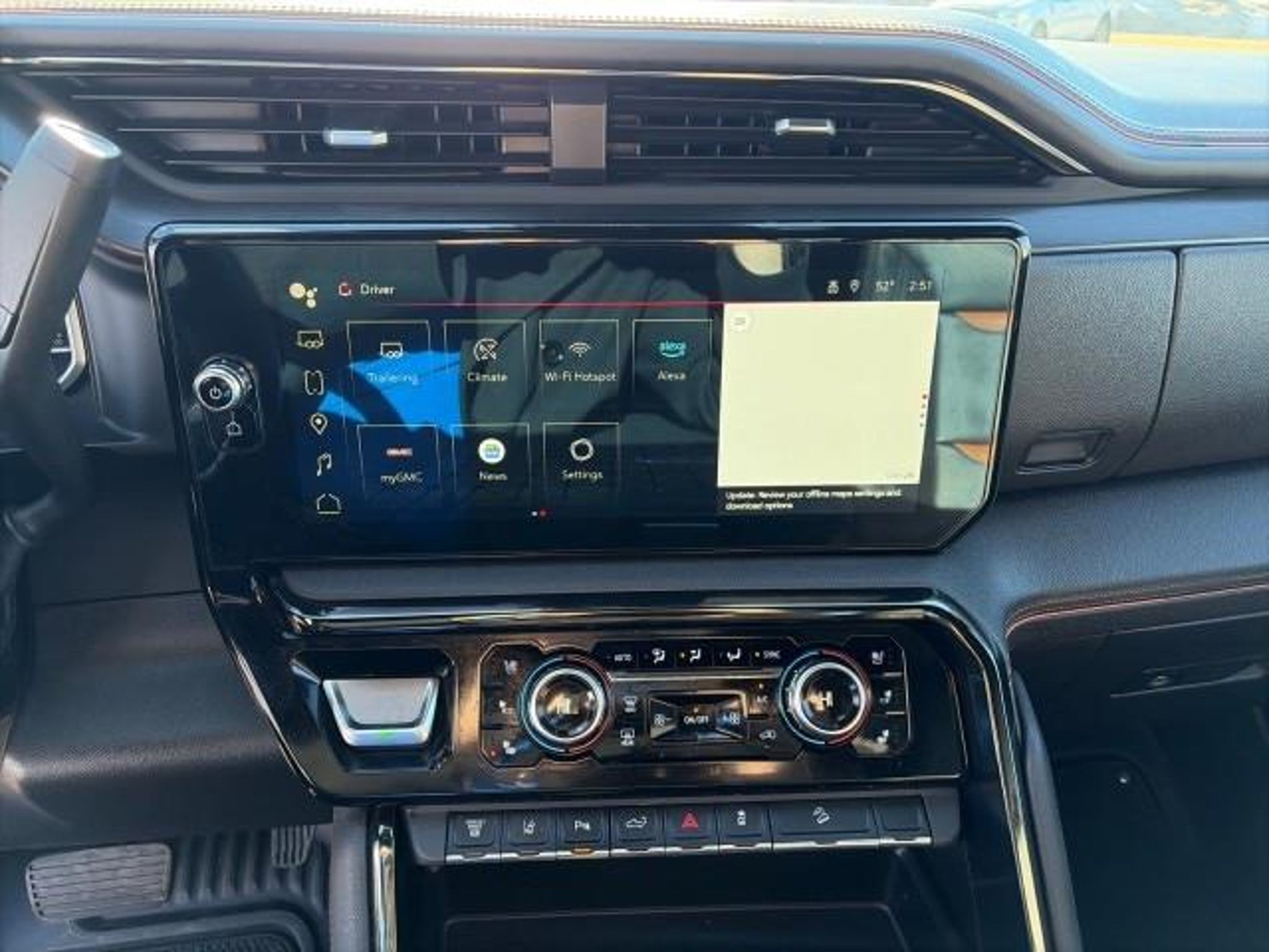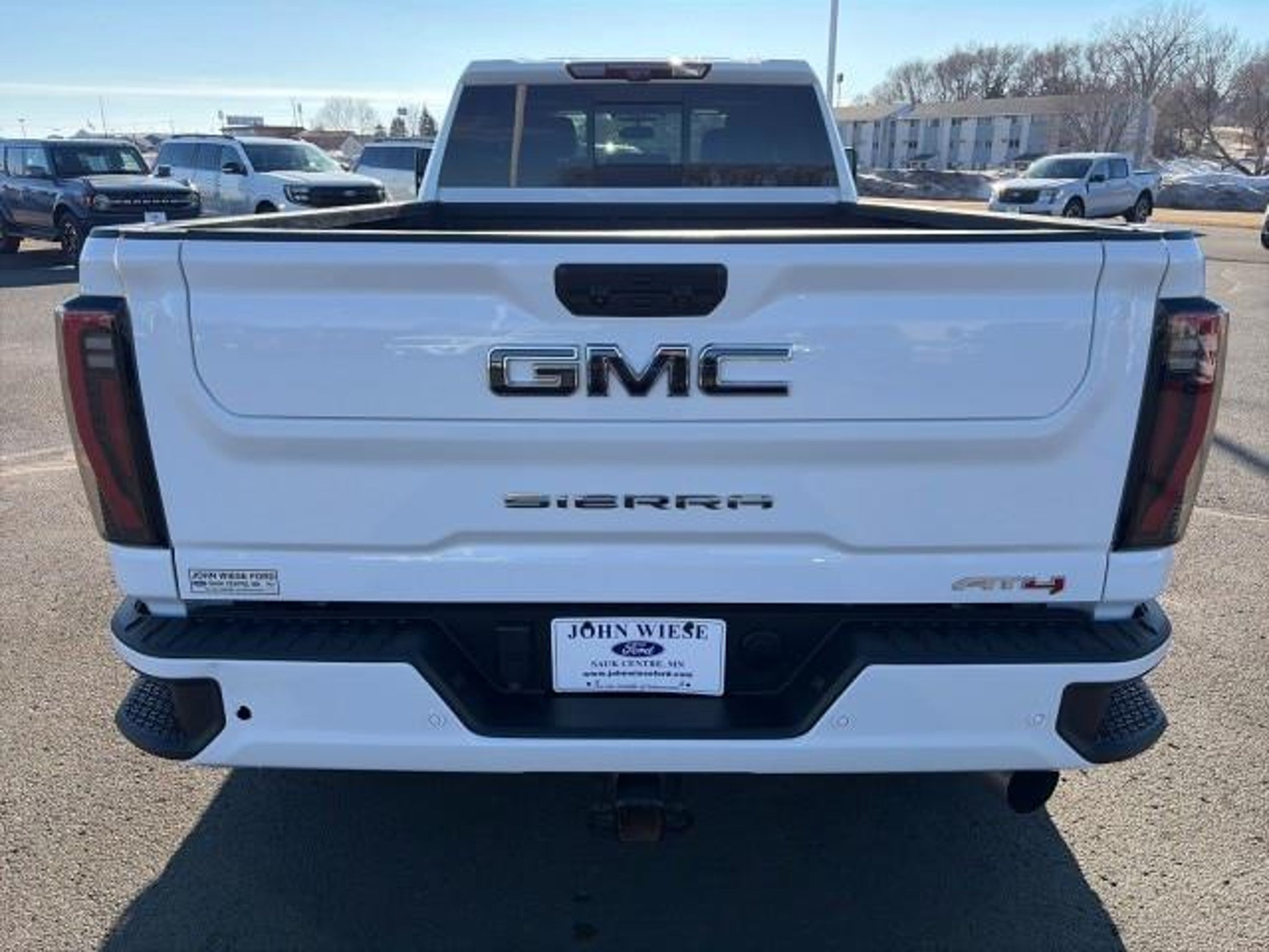 This GMC includes: Optional Equipment: Safety and Security Cab clearance lights Video-feed rearview mirror Head-up display UltraSonic front and rear parking sensors Convenience Adaptive cruise control Garage door opener Diesel exhaust fluid (def) gauge Low level warning for oil, coolant, fuel, washer fluid, brake fluid and diesel exhaust fluid (DEF) Power rear windshield Transmission Allison 10-Speed Automatic Transmission Allison 10-speed automatic Overdrive transmission Lock-up transmission Transmission electronic control Automatic Exterior and Appearance Side assist steps Non-metallic paint 5th wheel and gooseneck prep First-row sliding and tilting glass sunroof with express open/close activation sunshade Front license plate bracket GMC ProGrade Trailering System trailer tire pressure sensors Mechanical 12,250 lbs (5,557 Kgs) GVWR Capped Fuel Fill Powertrain and Mechanical Diesel Compression ignition system Dual lead acid batteries Engine block heater Engine retarder system Duramax 6.6L V-8 diesel direct injection, intercooled turbo, diesel, engine with 470HP Duramax 6.6L V-8 Duramax V8 Intercooled turbo Exterior Power Sunroof First-row sliding and tilting glass sunroof with express open/close activation sunshade Front License Plate Kit Front license plate bracket LED Smoked Amber Roof Marker Lamps Cab clearance lights Off-Road High Clearance Step Side assist steps Power Sliding Rear Window with Defogger Rear window defroster Power rear windshield Winter Grille Cover Additional Options AT4 Preferred Package Cruise control with steering wheel mounted controls Adaptive cruise control Garage door opener Rear window defroster Power rear windshield AT4 Premium Plus Package Preferred Equipment Group 4SB Off-road ride suspension Rancho shock absorbers Dark chrome grille 3 month satellite trial subscription Inclinometer GMC ProGrade Trailering System trailer tire pressure sensors GMC ProGrade Trailering System trailer light test GMC ProGrade Trailering System trailer light malfunction warning GMC ProGrade Trailering System trailer theft alarm GCW Alert weight capacity alert AM/FM/SiriusXM with 360Lsatellite Technology Package Auto-dimming rear view mirror Video-feed rearview mirror Head-up display HD Rear Vision Camera w/Hitch View rear mounted camera Day/Night rearview mirror Interior Adaptive Cruise Control Cruise control with steering wheel mounted controls Adaptive cruise control Ultrasonic Front and Rear Park Assist UltraSonic front and rear parking sensors Auto-Dimming Inside Rearview Mirror with Camera