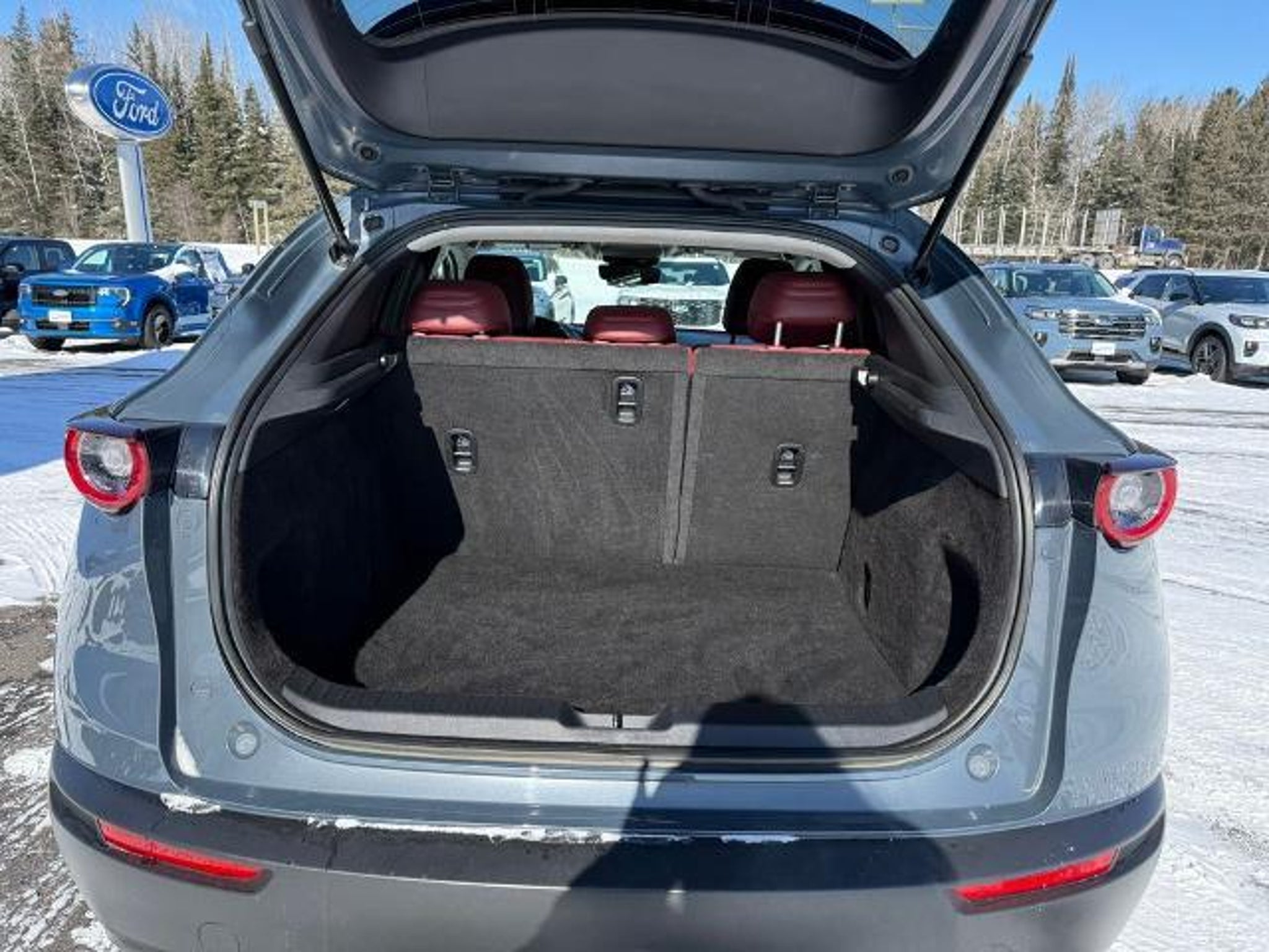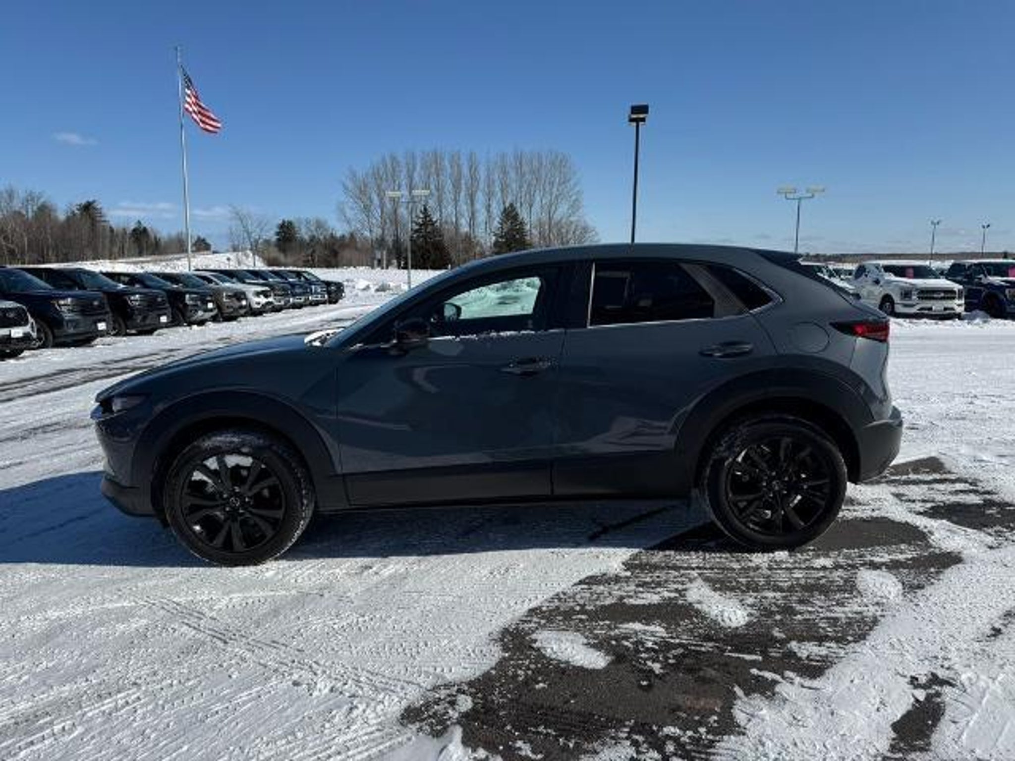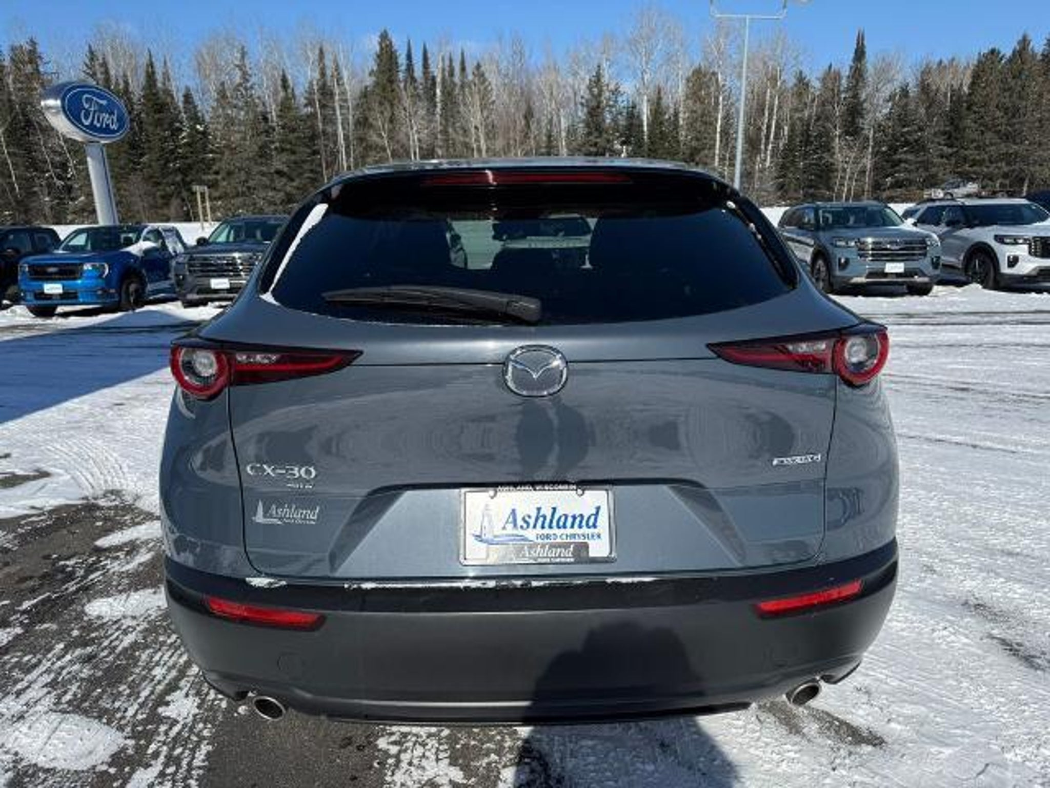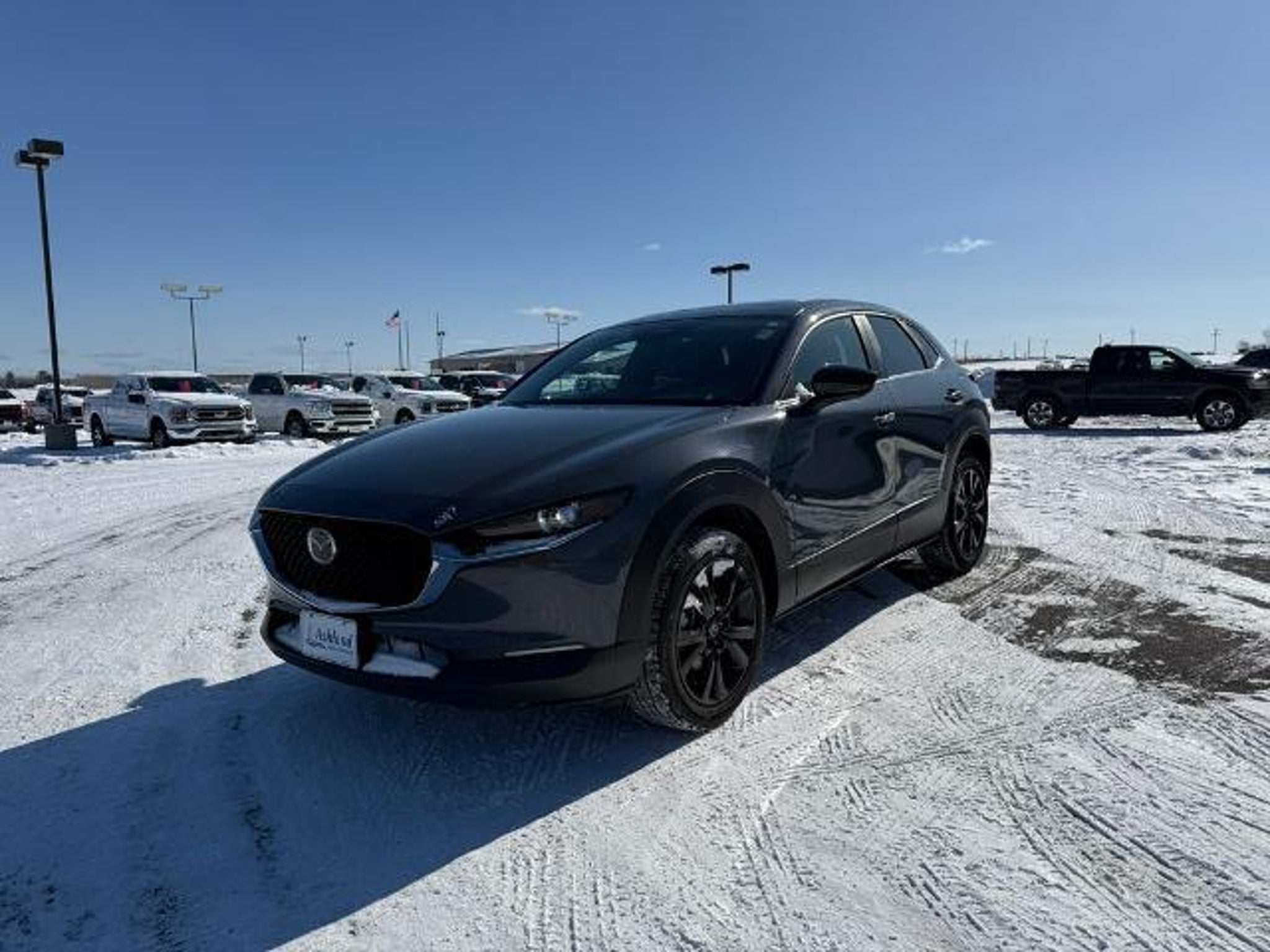 Odometer is 1613 miles below market average! 26/33 City/Highway MPG 2024 Mazda CX-30 2.5 S Carbon Edition Wisconsin Safety Inspection performed on this vehicle 4-Wheel Disc Brakes, 4.095 Axle Ratio, 8 Speakers, ABS brakes, Air Conditioning, Alloy wheels, AM/FM radio, AppLink/Apple CarPlay and Android Auto, Auto High-beam Headlights, Automatic temperature control, Brake assist, Bumpers: body-color, Compass, Delay-off headlights, Driver door bin, Driver vanity mirror, Dual front impact airbags, Dual front side impact airbags, Electronic Stability Control, Emergency communication system: Mazda Connected Services (3-year complimentary trial included), Exterior Parking Camera Rear, Front anti-roll bar, Front Bucket Seats, Front Center Armrest, Front dual zone A/C, Front reading lights, Front wheel independent suspension, Fully automatic headlights, Heated door mirrors, Heated Front Bucket Seats, Heated front seats, Illuminated entry, Knee airbag, Leather Seat Trim, Leather Shift Knob, Leather steering wheel, Low tire pressure warning, MAZDA CONNECT Infotainment System, Mazda Navigation System, Memory seat, Occupant sensing airbag, Outside temperature display, Overhead airbag, Overhead console, Panic alarm, Passenger door bin, Passenger vanity mirror, Power door mirrors, Power driver seat, Power moonroof, Power steering, Power windows, Radio data system, Radio: AM/FM/HD Audio System, Rain sensing wipers, Rear seat center armrest, Rear side impact airbag, Rear window defroster, Rear window wiper, Remote keyless entry, Roof Rail Credit, Speed control, Speed-sensing steering, Split folding rear seat, Spoiler, Steering wheel mounted audio controls, Tachometer, Telescoping steering wheel, Tilt steering wheel, Traction control, Trip computer, Turn signal indicator mirrors, Variably intermittent wipers, and Wheels: 18 x 7J Aluminum Alloy.