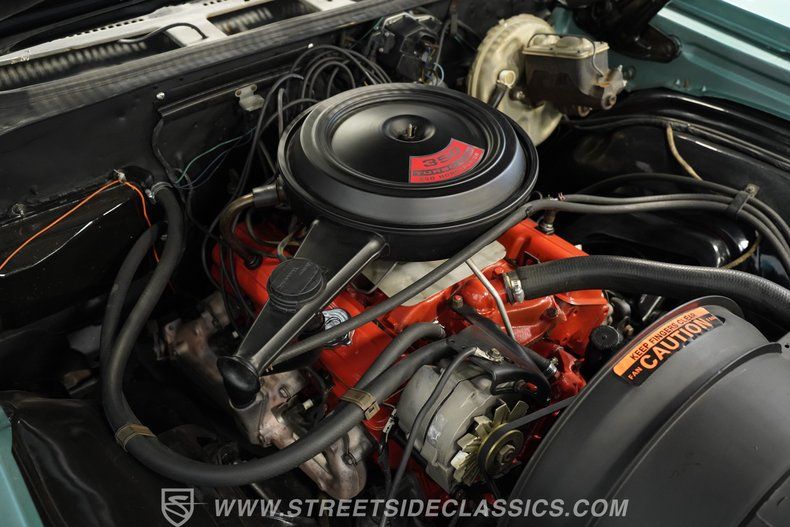 Under the hood, you'll find a numbers-matching 350 small block Chevrolet V8 paired with a TH350 three-speed automatic transmission, both original to the car. The engine bay is clean and stock-appearing, with a recently painted block and well-maintained accessories. Power steering and power brakes enhance drivability, while the factory-style intake and single exhaust with chambered muffler keep the experience authentic. The car starts, idles, and accelerates smoothly, with the transmission shifting confidently through all gears for a relaxed yet engaging drive.