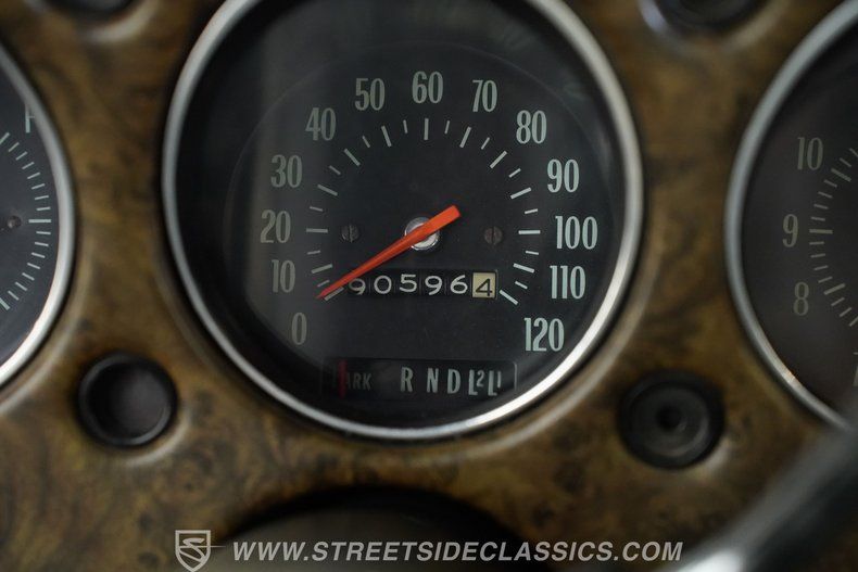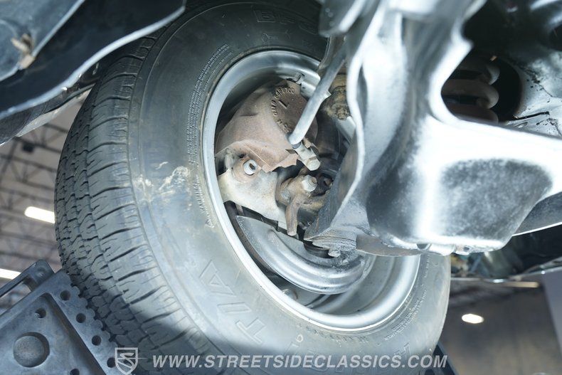 Step inside to discover a black interior that's been thoughtfully refreshed, staying true to its factory roots. The split-bench seating features comfortable cloth upholstery, with matching door panels and a stock-appearing dashboard highlighted by faux woodgrain trim. The headliner and carpeting are in great condition, while front three-point seatbelts provide added reassurance. The classic column shifter, original steering wheel, and period-correct details invite you to settle in and enjoy every mile.