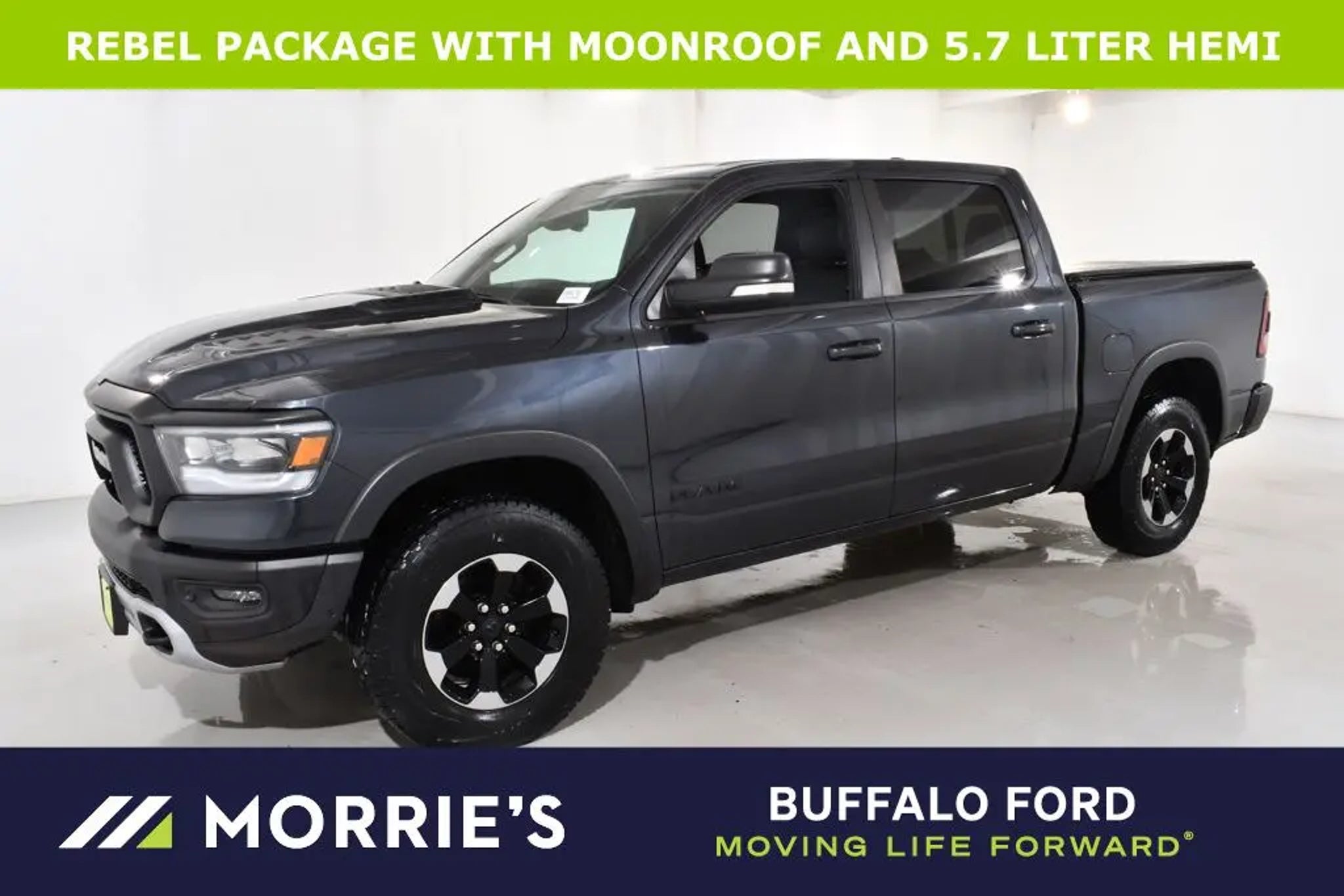 * LOCAL TRADE IN - REBEL PACKAGE WITH 5.7 LITER HEMI POWER - THIS RAM HAS A LOT OF EXTRAS - TAKE A LOOK - PANORAMIC MOONROOF/SUNROOF - 33 GALLON FUEL TANK - UCONNECT WITH NAVIGATION - BLIND SPOT MONITOR WITH CROSS TRAFFIC ALERT - INTEGRATED BRAKE CONTROLLER - BED UTILITY GROUP - LEVE 2 EQUIPMENT GROUP - APPLE CARPLAY - ANDROID AUTO - HEATED SEATING - HEATED STEERING WHEEL - PARKSENSE FRONT AND REAR PARK ASSIST - POWER ADJUSTABLE PEDALS - REMOTE START - UNIVERSAL GARAGE DOOR OPENER - KEYLESS GO - TRAILER HITCH - PREMIUM ALLOY WHEELS * - Service Inspection Records Available. The vehicle shopping experience should be as easy, fun and exciting as owning a car. It is our promise to change the way you buy and own a car. Our Best Price First, Pure and Simple. Additionally, every Morries pre-owned vehicle undergoes a thorough vehicle inspection and is reconditioned to our Morries standard.