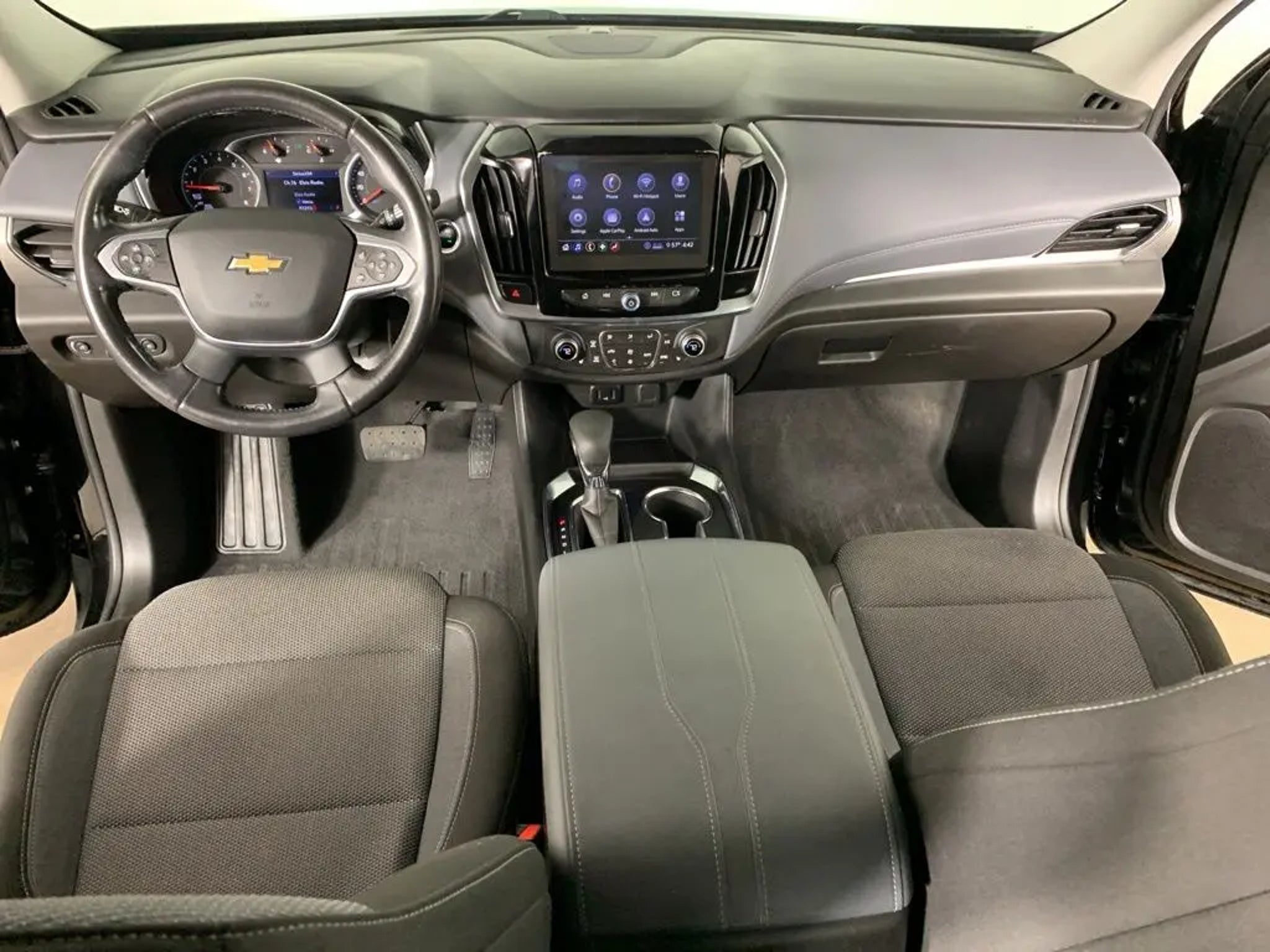 Mosaic Black Metallic 2021 Chevrolet Traverse FWD 1LT Cloth with Jet Black/Dark Galvanized interior - available now at Ford of Peoria in Peoria, IL. This clean AutoCheck one-owner Traverse 1LT blends strong V6 performance, three-row versatility, and modern connectivity, making it a practical and comfortable SUV for families across Central Illinois. Under the hood is a 3.6L V6 SIDI VVT engine paired with a 9-speed automatic transmission, delivering smooth acceleration and confident highway power. According to the window label, fuel economy is rated at 21 MPG combined (18 city / 27 highway), offering solid efficiency for a seven-passenger midsize SUV. Performance and capability "¢ 3.6L V6 SIDI VVT engine "¢ 9-speed automatic transmission "¢ Front-Wheel Drive "¢ 18-inch Bright Silver painted aluminum wheels "¢ Compact spare tire "¢ Trailer sway control "¢ Smooth, refined ride quality Convenience and Driver Confidence Package ($1,795) adds premium safety and comfort features including: "¢ Remote Vehicle Start "¢ Chevrolet Infotainment 3 Plus with 8-inch HD color touchscreen "¢ Apple CarPlay and Android Auto capability "¢ Driver and front passenger heated seats "¢ Power rear liftgate "¢ Rear Park Assist "¢ Enhanced multi-color driver information display "¢ Rear Cross Traffic Alert "¢ Lane Change Alert with Side Blind Zone Alert "¢ Universal Home Remote "¢ HD Rear Vision Camera Safety and driver assistance "¢ Teen Driver technology "¢ Rear Vision Camera "¢ Advanced airbag system "¢ StabiliTrak electronic stability control "¢ Tire Pressure Monitoring System "¢ LATCH child safety system Exterior features "¢ Mosaic Black Metallic exterior "¢ HID headlamps "¢ LED daytime running lamps "¢ LED tail lamps "¢ Heated, power-adjustable body-color mirrors with turn signal indicators "¢ Front fog lamps "¢ Roof rails "¢ Rear window wiper and defroster Interior comfort and technology "¢ Premium cloth seating for 7 passengers "¢ 8-way power driver seat with lumbar control "¢ Third-row 60/40 split folding bench "¢ Leather-wrapped steering wheel "¢ Tri-zone automatic climate control "¢ Keyless open and push-button start "¢ SiriusXM capability "¢ OnStar services capability with 4G LTE Wi-Fi availability Original MSRP was $35,400 with $1,795 in options plus $1,195 destination charge, totaling $38,390 as shown on the factory window sticker. Condition and ownership This 2021 Chevrolet Traverse 1LT FWD features a clean AutoCheck one-owner history and presents in excellent overall condition. With spacious three-row seating, strong V6 performance, and upgraded driver-assist features, its ready for daily commutes, carpools, and weekend travel. Why buy from Ford of Peoria "¢ Part of the Bob Loquercio Auto Group "¢ Conveniently located at 2211 W Pioneer Parkway, Peoria, IL 61615 "¢ Call us at "¢ Transparent pricing and professional finance assistance "¢ Full-service dealership for sales, service, and parts Visit Ford of Peoria today or contact us to schedule your test drive. Experience the space, comfort, and versatility of this 2021 Chevrolet Traverse today.
