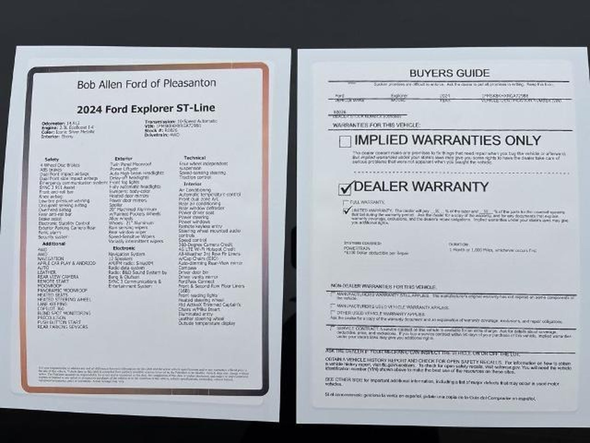 Experience the thrill and versatility of the 2024 Ford Explorer AWD ST-Line. This SUV features a powerful EcoBoost 2.3L Turbo I4 engine paired with a 10-speed shiftable automatic transmission and advanced all-wheel drive for superior performance in any condition. Stand out with 21-inch aluminum wheels and a bold ST-Line design. Enjoy a suite of modern tech, including an 8-inch touchscreen with SYNC infotainment, Apple CarPlay and Android Auto, FordPass Connect with smart device app compatibility, and Amazon Alexa integration. Safety is paramount with adaptive cruise control, lane keeping assist, front automatic emergency braking, blind spot monitoring, and a surround view camera system. Comfort features include heated front seats, a heated steering wheel, dual-zone automatic climate control, and a power-operated rear liftgate. The spacious interior offers third-row seating with versatile folding options, perfect for families or extra cargo. Don't miss out on this feature-packed Explorer-schedule your test drive today! Call us at (913) 352-8521 to schedule your test drive on this 2024 Ford Explorer ST-Line. From the comfort of your home you can shop, get pricing, and trade value. We will deliver your vehicle and paperwork.