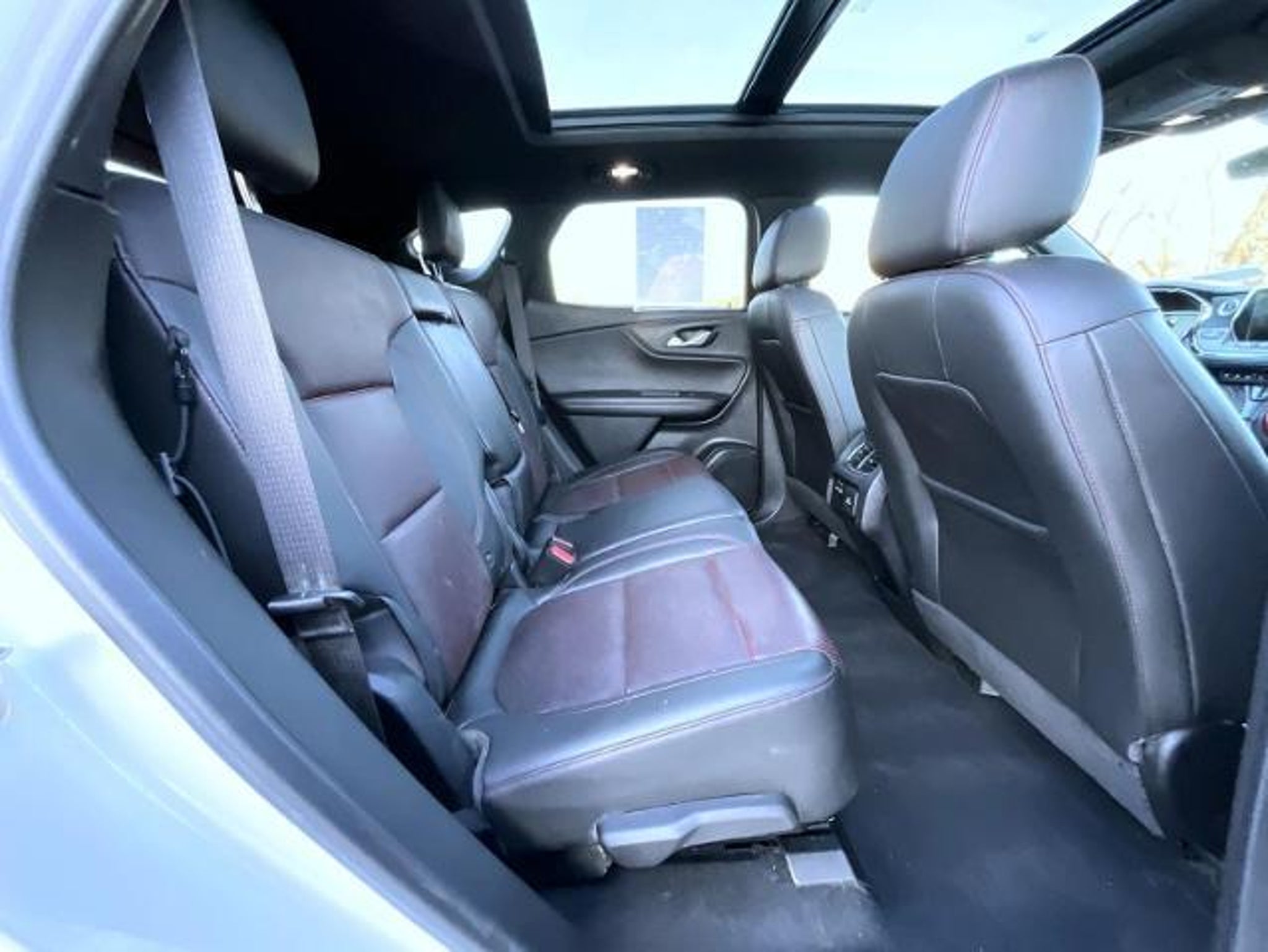 Iridescent Pearl Tricoat 2020 Chevrolet Blazer RS AWD 9-Speed Automatic 3.6L 6 cylinder AWD, 170 Amp Alternator, 1st & 2nd Row All-Weather Floor Liners (LPO), 3.49 Final Drive Axle Ratio, 4-Wheel Disc Brakes, 6 Speakers, 6-Speaker Audio System Feature, 6-Way Power Front Passenger Seat Adjuster, ABS brakes, Advanced Adaptive Cruise Control, Air Conditioning, Alloy wheels, AM/FM radio: SiriusXM, Apple CarPlay/Android Auto, Auto-dimming door mirrors, Auto-dimming Rear-View mirror, Automatic temperature control, Brake assist, Bumpers: body-color, Cargo Management System, Child-Seat-Sensing Airbag, Compass, Delay-off headlights, Driver door bin, Driver vanity mirror, Dual front impact airbags, Dual front side impact airbags, Electronic Stability Control, Emergency communication system: OnStar and Chevrolet connected services capable, Enhanced Automatic Emergency Braking, Enhanced Convenience & Driver Confidence II Pkg, Exterior Parking Camera Rear, Floor Liner Package (LPO), Following Distance Indicator, Forward Collision Alert, Four wheel independent suspension, Front anti-roll bar, Front Bucket Seats, Front Center Armrest, Front dual zone A/C, Front Pedestrian Braking, Front reading lights, Fully automatic headlights, Garage door transmitter, HD Surround Vision, Heated door mirrors, Heated Driver & Front Passenger Seats, Heated front seats, Heated Rear Outboard Seating Positions, Heated steering wheel, Heavy-Duty Cooling System, High-Intensity Discharge Headlights, Hitch Guidance, Hitch Guidance w/Hitch View, Illuminated entry, IntelliBeam Headlamps, Knee airbag, Lane Keep Assist w/Lane Departure Warning, Leather Shift Knob, Low tire pressure warning, Memory Settings For Driver Seat & Exterior Mirrors, Navigation System, Occupant sensing airbag, Outside temperature display, Overhead airbag, Overhead console, Panic alarm, Passenger door bin, Passenger vanity mirror, Perforated Leather-Appointed Seat Trim, Power door mirrors, Power driver seat, Power Liftgate, Power Panoramic Tilt-Sliding Sunroof, Power passenger seat, Power steering, Power Tilt & Telescoping Steering Column, Power windows, Preferred Equipment Group 1RS, Radio data system, Radio: Chevrolet Infotainment 3 Plus System, Radio: Chevrolet Infotainment 3 Premium System, Rear anti-roll bar, Rear Camera Mirror, Rear reading lights, Rear seat center armrest, Rear window defroster, Rear window wiper, Remote keyless entry, Ride & Handling Suspension, Safety Alert Seat, Security system, SiriusXM w/360L, Speed control, Speed-sensing steering, Split folding