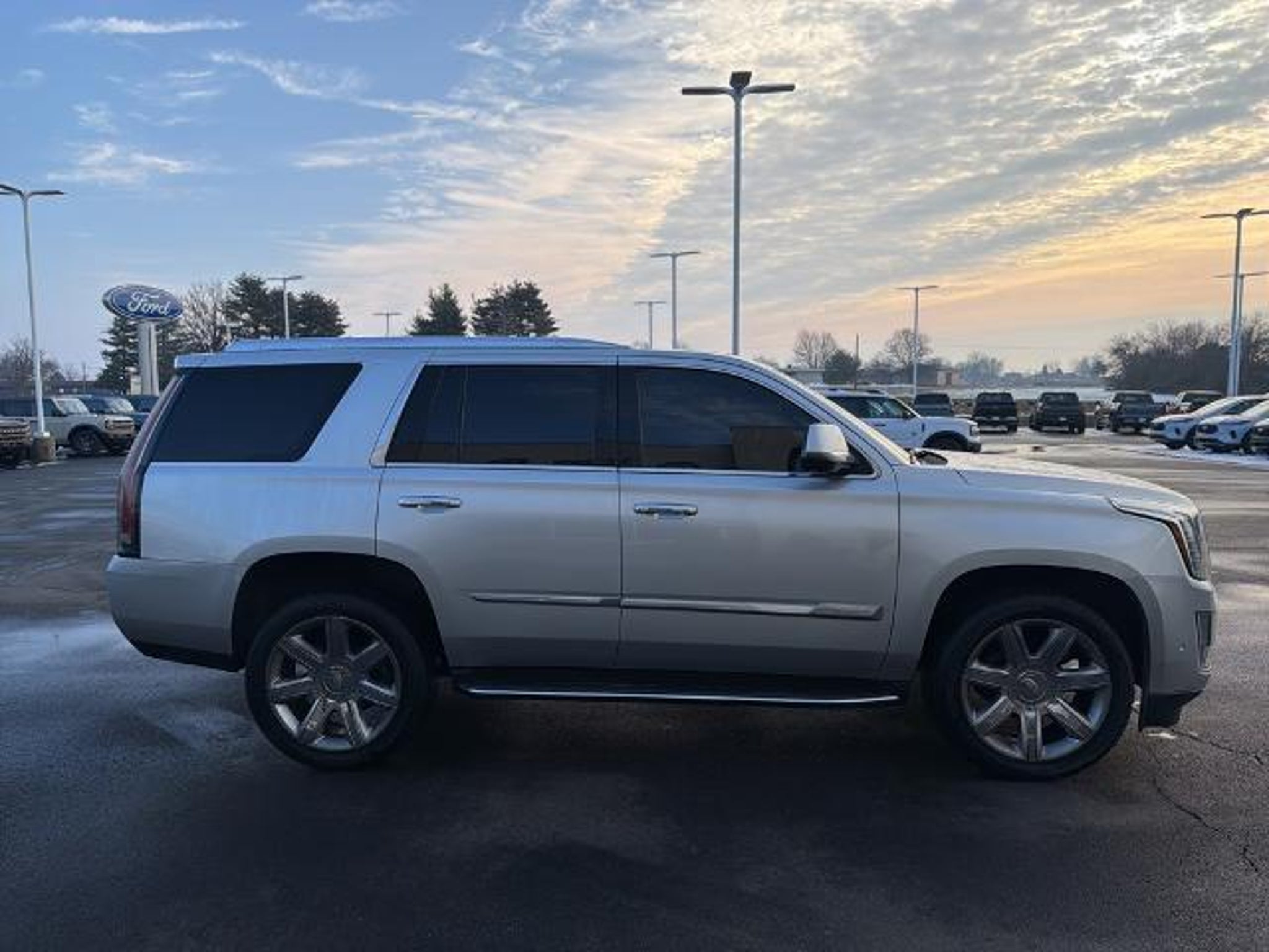 Clean CARFAX. Priced below KBB Fair Purchase Price! 2017 Cadillac Escalade Luxury 6.2L Variable Valve Timing V8 SIDI 4D Sport Utility Radiant Silver Metallic 4WD 8-Speed Automatic 15/20 City/Highway MPG Navigation System, Running Boards, Power Sunroof, Bluetooth Connection, Heated Seats, Power Seat, Ventilated Seats, Leather Seats, Blind Spot Monitoring, Backup Camera, Satellite Radio, Power Liftgate, 4WD, Jet Black Leather, Alloy wheels, Automatic temperature control, Heated steering wheel, Rear air conditioning, Speed control, Steering wheel mounted audio controls. Awards: * JD Power Automotive Performance, Execution and Layout (APEAL) Study * 2017 KBB.com 10 Best Luxury SUVs Odometer is 19599 miles below market average! The O'Brien Ford Pre-Owned Promise Used cars inspected ... reconditioned ... and given our seal of approval ? Great Price: Every used car, truck and suv we sell comes with our great price! We determine the price by reviewing online resources, such as KBB, surveying the used vehicle market and then we beat those prices. ? Quality Vehicles: The majority of our pre-owned cars, trucks, vans and SUVs are fresh, local, trades from right here in Shelby County -- No auction clunkers, these are top quality vehicles. ? Quality Inspection: Buy with confidence with our No Exception Inspection. Every used car we sell goes through a comprehensive 72-point inspection with a certified ASE technician. ? Extended Protection: Pre-Owned Vehicles are eligible for extended warranties of up to seven years or 100,000 miles.