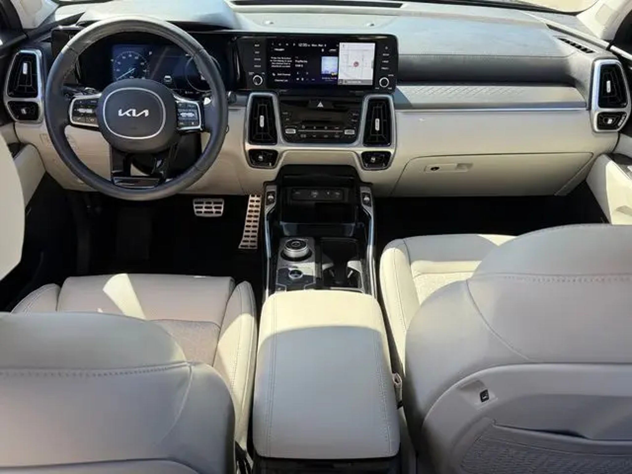 36/33 City/Highway MPG Gravity Blue 2023 Kia Sorento Hybrid SX Prestige AWD 6-Speed Automatic 1.6L I4 DGI Hybrid Turbocharged DOHC 16V LEV3-ULEV70 1.6L I4 DGI Hybrid Turbocharged DOHC 16V LEV3-ULEV70. If you don't drive here, you can't save here! Price may not include recon fee. 1.6L I4 DGI Hybrid Turbocharged DOHC 16V LEV3-ULEV70, 12 Speakers, 3rd row seats: split-bench, 4-Wheel Disc Brakes, ABS brakes, Air Conditioning, Alloy wheels, AM/FM radio: SiriusXM, Apple CarPlay & Android Auto, Auto High-beam Headlights, Auto-dimming Rear-View mirror, Automatic temperature control, Axle Ratio: 3.510, Brake assist, Bumpers: body-color, Carpet Floor Mats, Delay-off headlights, Driver door bin, Driver vanity mirror, Dual front impact airbags, Dual front side impact airbags, Electronic Stability Control, Emergency communication system, Folding Cargo Tray, Four wheel independent suspension, Front anti-roll bar, Front Bucket Seats, Front Center Armrest, Front dual zone A/C, Front fog lights, Front reading lights, Fully automatic headlights, Garage door transmitter: HomeLink, Heated & Ventilated Front Bucket Seats, Heated door mirrors, Heated front seats, Heated rear seats, Heated steering wheel, Illuminated entry, Knee airbag, Leather steering wheel, Low tire pressure warning, Memory seat, Navigation System, Occupant sensing airbag, Outside temperature display, Overhead airbag, Overhead console, Panic alarm, Passenger door bin, Passenger vanity mirror, Perforated Genuine Leather Seat Trim, Power door mirrors, Power driver seat, Power Liftgate, Power passenger seat, Power steering, Power windows, Radio data system, Radio: AM/FM/HD Radio/SiriusXM Audio System, Rain sensing wipers, Rear air conditioning, Rear anti-roll bar, Rear reading lights, Rear window defroster, Rear window wiper, Remote keyless entry, Roof rack: rails only, Security system, Smart Key w/ Push Button and Remote Start, Speed control, Speed-sensing steering, Split folding rear seat, Spoiler, Steering wheel mounted audio controls, Tachometer, Telescoping steering wheel, Tilt steering wheel, Traction control, Trip computer, Turn signal indicator mirrors, Variably intermittent wipers, Ventilated front seats, and Wheels: 19 Machine-Finished Alloy.