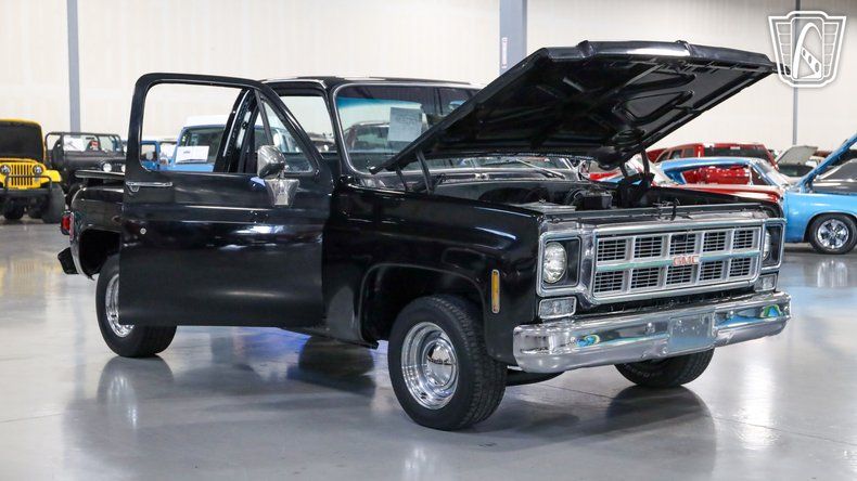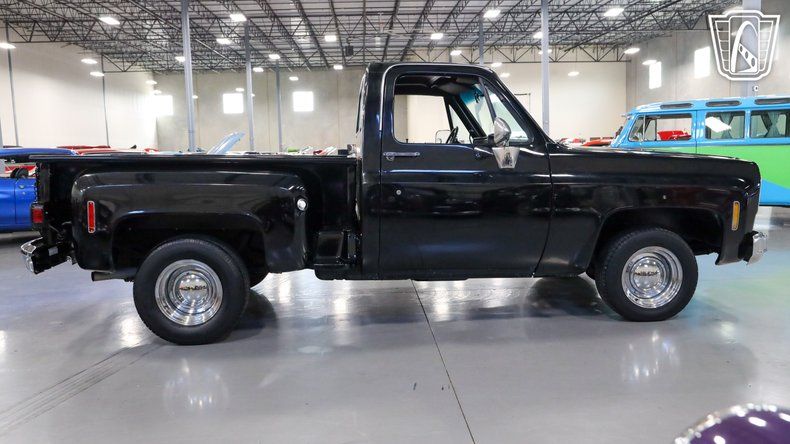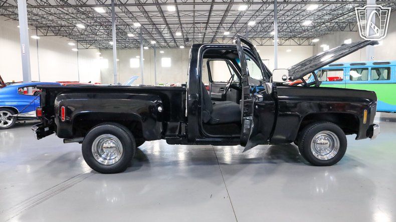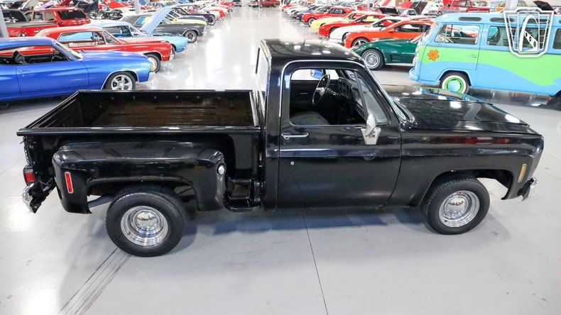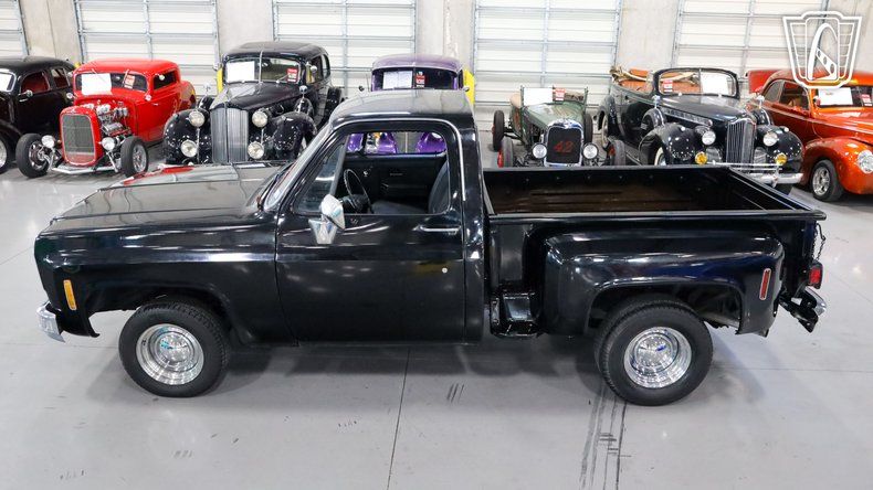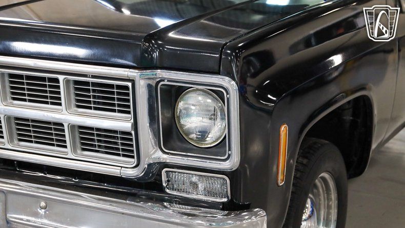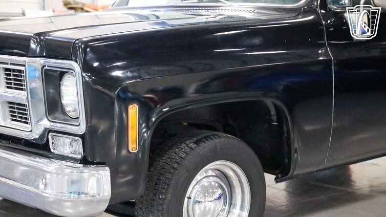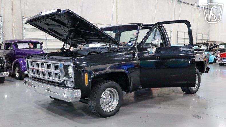Gateway Classic Cars of San Antonio/Austin is proud to offer this 1977 Chevrolet C10, a true classic that captures the timeless charm of vintage American truck design. Slide into the driver's seat and you'll immediately feel the character of an era defined by simplicity and craftsmanship, with a sleek black exterior paired effortlessly with a matching black interior that gives the truck a bold yet understated presence, further enhanced by a GMC front grille and matching rear tailgate that elevate its classic styling. Under the hood, the 350 CID engine hums with a smooth, reliable rhythm and is paired with an automatic transmission to deliver an effortless and enjoyable driving experience, while power steering makes every turn feel natural and responsive and power brakes provide dependable stopping power for added confidence on the road. The custom wooden bed adds a touch of rustic elegance, blending utility with style and showcasing the care and attention put into this truck, while the smoothie steel wheels wrapped in BFGoodrich Radial T/A tires give it a classic, commanding stance, finished off with vintage-style hub caps that tie the entire look together. As you roll down the road, the ride feels smooth and composed, with the tires gripping the pavement effortlessly, and inside the comfortable black interior creates an inviting cabin that makes every drive feel special. This 1977 Chevrolet C10 is more than just a truck, it's an experience that connects you to a time when driving was about more than getting from point A to point B, focusing instead on the journey, the feel of the road, and the joy of being behind the wheel of a truly iconic classic.