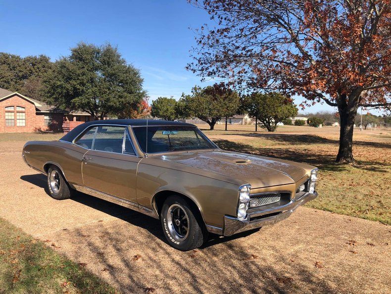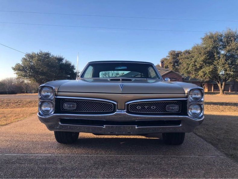 CONDITION This 1967 Pontiac GTO is a sharp, show-quality classic that has been restored and successfully shown at local car events. Finished in gold with a black vinyl top, it presents with bright chrome bumpers and trim that show well. The black interior features a classic Pontiac layout with factory-style gauges and woodgrain-style dash trim for an authentic muscle-era feel.