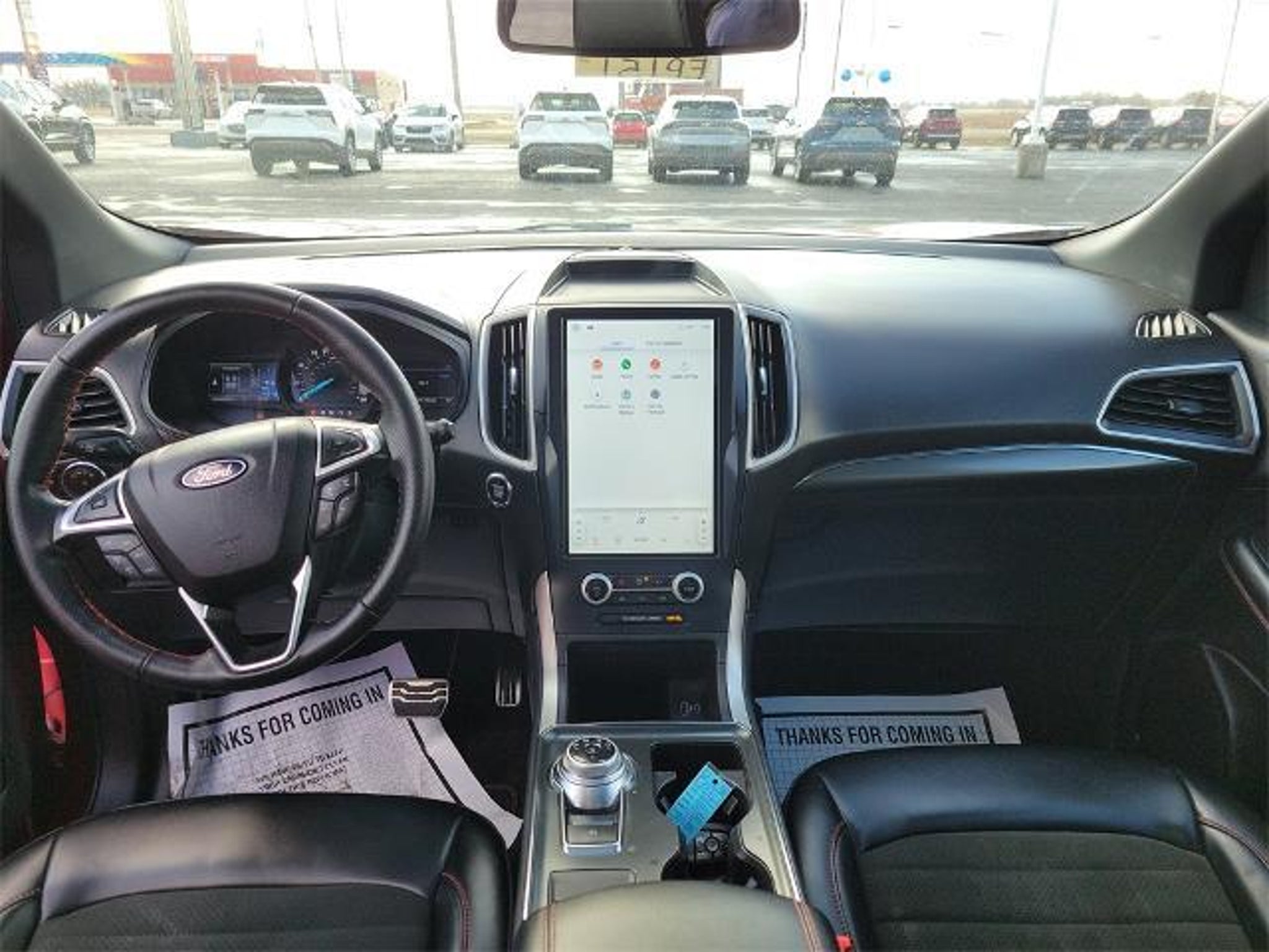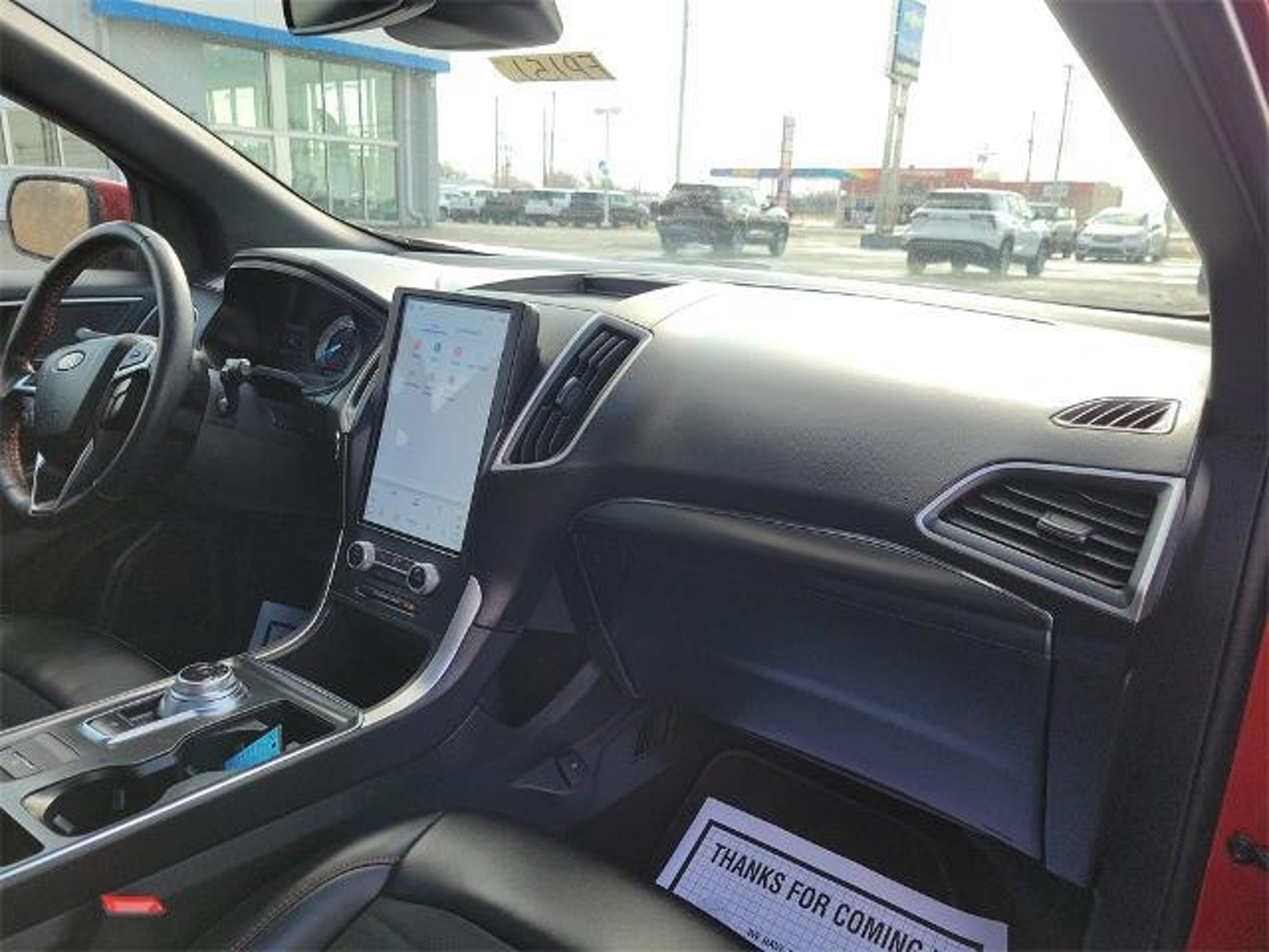 CARFAX One-Owner. Rapid Red Metallic Tinted Clearcoat 2023 Ford Edge ST Line 4D Sport Utility EcoBoost 2.0L I4 GTDi DOHC Turbocharged VCT 8-Speed Automatic AWD BAUMANN AUTO GROUP GENOA - 419.855.8366. We Make Car Buying Fun, Fast, and HASSLE FREE. AWD, Equipment Group 250A, Panoramic Vista Roof, Power Liftgate, 3.80 Axle Ratio, 4-Wheel Disc Brakes, 6 Speakers, ABS brakes, ActiveX Seating Material Heated Bucket Seats, Air Conditioning, Alloy wheels, AM/FM radio: SiriusXM with 360L, Auto High-beam Headlights, Auto-dimming Rear-View mirror, Automatic temperature control, Brake assist, Bumpers: body-color, Compass, Delay-off headlights, Driver door bin, Driver vanity mirror, Dual front impact airbags, Dual front side impact airbags, Electronic Stability Control, Emergency communication system: SYNC 4 911 Assist, FordPass Connect, Four wheel independent suspension, Front & Rear Floor Liners w/Carpet Mats, Front anti-roll bar, Front Bucket Seats, Front Center Armrest w/Storage, Front dual zone A/C, Front fog lights, Front reading lights, Fully automatic headlights, Garage door transmitter, Heated door mirrors, Heated front seats, Heated Steering Wheel, Illuminated entry, Knee airbag, Leather steering wheel, Low tire pressure warning, Occupant sensing airbag, Outside temperature display, Overhead airbag, Overhead console, Panic alarm, Passenger door bin, Passenger vanity mirror, Power door mirrors, Power driver seat, Power passenger seat, Power steering, Power windows, Radio: AM/FM Stereo/MP3 Capable, Rear anti-roll bar, Rear Parking Sensors, Rear reading lights, Rear seat center armrest, Rear window defroster, Rear window wiper, Remote keyless entry, Security system, SiriusXM w/360L, Speed control, Speed-Sensitive Wipers, Split folding rear seat, Spoiler, Steering wheel mounted audio controls, SYNC 4A w/Enhanced Voice Recognition, Tachometer, Telescoping steering wheel, Tilt steering wheel, Traction control, Trip computer, Variably intermittent wipers, Wheels: 20 Premium Gloss Black-Painted Aluminum, AWD, Equipment Group 250A, Panoramic Vista Roof, Power Liftgate.