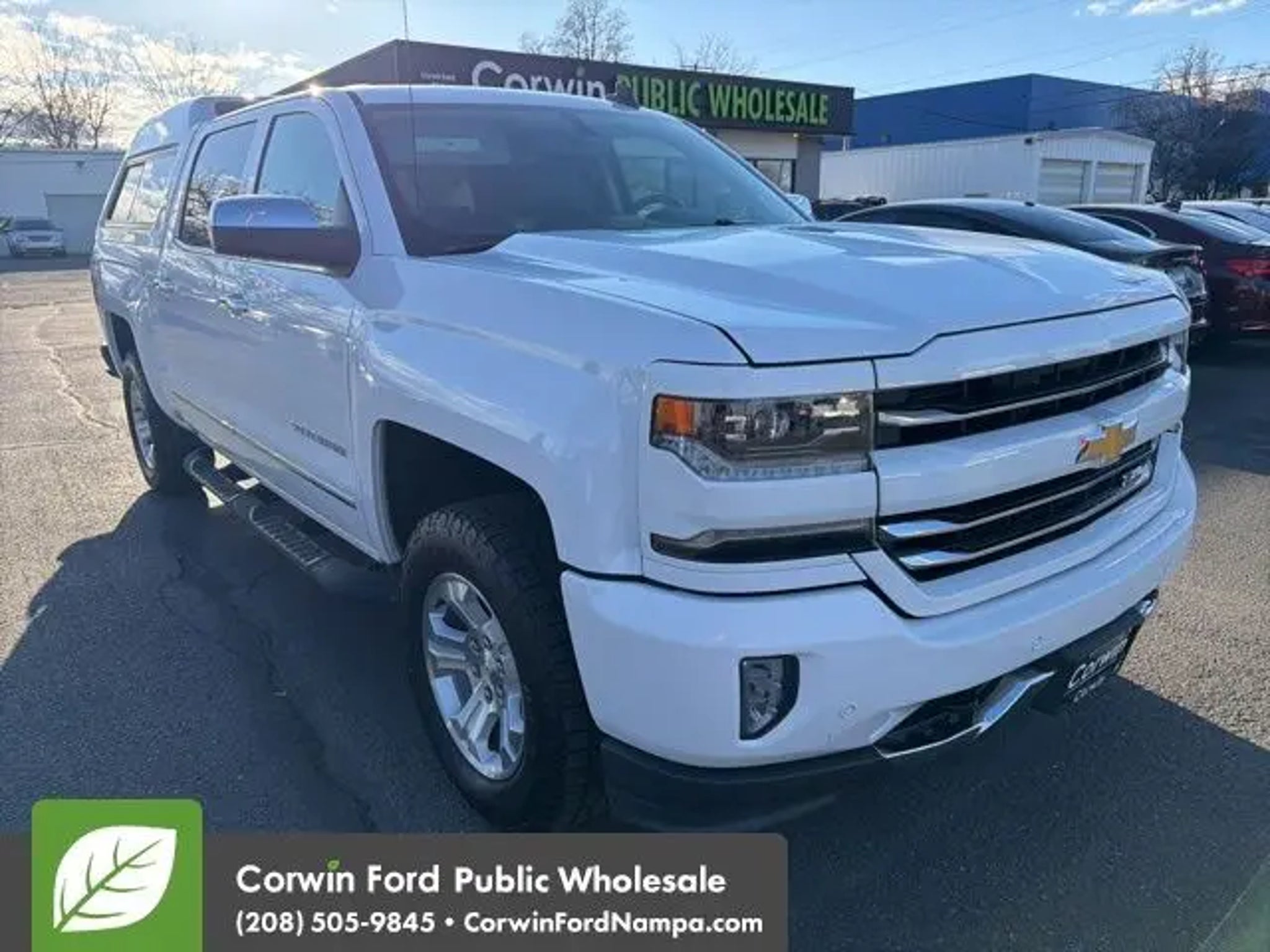 Engineered to be smart and strong, our Accident Free 2018 Chevrolet Silverado 1500 LTZ Crew Cab 4X4 in Summit White delivers all the and capability you require for work or play! Powered by a 5.3 Liter EcoTec3 V8 that generates 355hp paired with an 8 Speed Automatic transmission with tow/haul mode. This Four Wheel Drive executes flawlessly to provide you with nearly 23mpg on the highway and plenty of muscle to easily get your job done! The striking appearance of our Silverado 1500 LTZ looks top-notch with its chiseled physique, bold grille, chrome accents, prominent wheels, running boards, a matching topper, and high-strength steel bed. Bask in the luxury and comfort of the well-designed LTZ cabin that greets you with a universal home remote, remote vehicle start, a rearview camera, heated leather seats, power accessories, and a driver information center. It's easy to stay in touch thanks to the Chevrolet MyLink radio with voice activation, an 8-inch color touchscreen, Bluetooth®, available satellite radio, Android Auto®/Apple CarPlay® capability, and OnStar with available WiFi. The Chevrolet is built strong with the trailering package and received top safety scores with its high-strength steel, Stabilitrak, ABS, daytime running lamps, and plenty of airbags. You deserve a truck that can keep up with you, whether conquering your work day or playing hard on the weekend. Reward yourself with this Silverado 1500 LTZ! Save this Page and Call for Availability. We Know You Will Enjoy Your Test Drive Towards Ownership! Corwin Ford Nampa! Friendly service and aggressive pricing is why we are your new and pre-owned vehicle dealer serving, Nampa, Boise, Meridian, Caldwell, Kuna, Eagle, Emmett, Idaho City, Wilder, New Plymouth, Star, Middleton, Weiser, Payette, Horseshoe Bend, Mountain Home, Idaho, and surrounding states.