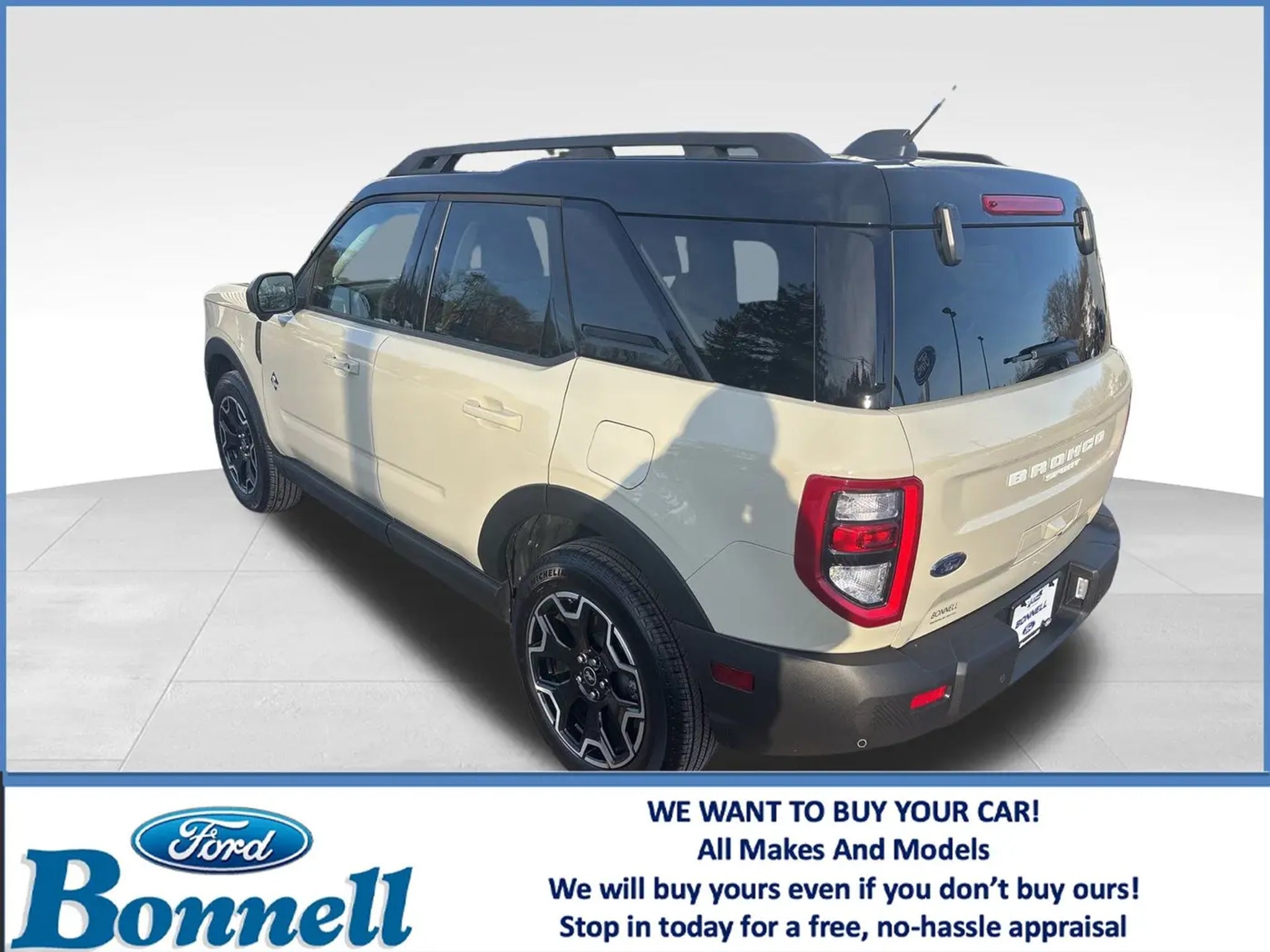 Details > 2025 Ford Bronco Sport AWD Outer Banks 4DR SUV For Sale in Winchester, MA Private Party Sellers Click here to place your ad now! You auta tell them you saw the ad in AutaBuy when you call or email. 1/47 2/47 3/47 4/47 5/47 6/47 7/47 8/47 9/47 10/47 11/47 12/47 13/47 14/47 15/47 16/47 17/47 18/47 19/47 20/47 21/47 22/47 23/47 24/47 25/47 26/47 27/47 28/47 29/47 30/47 31/47 32/47 33/47 34/47 35/47 36/47 37/47 38/47 39/47 40/47 41/47 42/47 43/47 44/47 45/47 46/47 47/47 View 47 Photos View All Add to My Garage Parked in Your Garage! Bonnell Motors, Inc. Contact Seller: I would like to: Make Offer Check Availability Ask A Question Request More Photos Check Financing Options Send a copy of this message to me Add this listing to my garage Send to Mobile Mileage 11,357 Exterior Color Desert Sand Interior Color Ebony Doors 4 Engine 1.5L I3 Transmission 8 Speed Auto Stock # P8470 VIN 3FMCR9CN0SRE58456 Estimated Monthly Payment $591 mo Apply Now J.J. Best Banc & Co. 2025 Ford Bronco Sport AWD Outer Banks 4DR SUV Description: Desert Sand 2025 Ford Bronco Sport Outer Banks 4WD 8-Speed Automatic 1.5L EcoBoost Power Moonroof. Recent Arrival! 25/30 City/Highway MPG · Mileage: 11,357 · Color: Desert Sand Price: $33,990. Mileage 11,357 Exterior Color Desert Sand Interior Color Ebony Doors 4 Engine 1.5L I3 Transmission 8 Speed Auto Stock # P8470 VIN 3FMCR9CN0SRE58456 Estimated Monthly Payment $591 mo Apply Now J.J. Best Banc & Co. Add to My Garage Parked in Your Garage! Message Seller Bonnell Motors, Inc. Contact Seller: I would like to: Make Offer Check Availability Ask A Question Request More Photos Check Financing Options Send a copy of this message to me Add this listing to my garage Offered for sale by Bonnell Motors, Inc. WINCHESTER, MA Price: $33,990. Offered for sale by Bonnell Motors, Inc. WINCHESTER, MA [entire inventory] Ask Auta Intelligence The first collector-car AI built directly into a classic car marketplace How many Bronco Sports were produced in Desert Sand? When was this model first introduced? What engine options did these come with? What trim levels were available for this model? How easy are parts to find for this model? What safety features does this model offer? What transmission options did these offer? How many of these were produced? What factory options were available on this model? How many passengers can this seat comfortably? Can you show me more suvs for a similar price? Where is this located? Tell me the history on this model What does this VIN number tell me? What colors did these come in? What kind of mileage do these get? How far is this from me? Do you have a similar car to sell? List It Now! Questions about this car? Ask Auta Intelligence for production numbers, available options, etc. · Subscribe to AutaBuy! · Send a Gift Subscription Notice to a Friend
