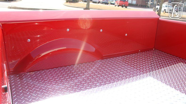 The modern amenities blend seamlessly with the classic charm of this Chevrolet 3100. The air conditioning keeps the cabin cool and comfortable, no matter the weather outside, while the AM/FM radio fills the space with your favorite tunes, adding a soundtrack to your journey. The custom wheels not only enhance the truck's striking appearance but also provide a confident ride that feels steady and composed.