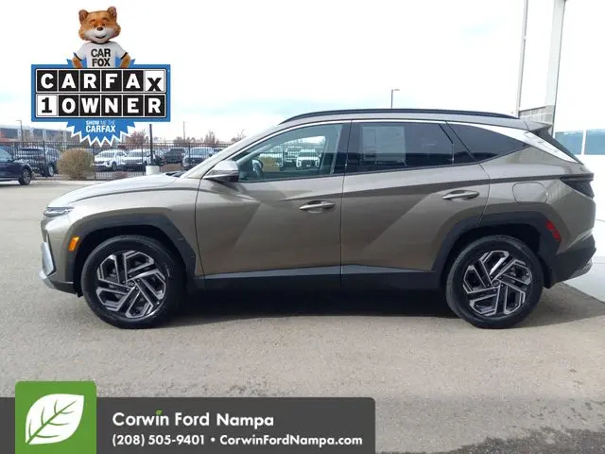 Our Accident Free, One Owner 2026 Hyundai Tucson Hybrid Limited AWD in Cashmere Bronze pairs hybrid efficiency with confidence and responsive power for spirited adventures. Motivated by a TurboCharged 1.6 Liter 4 Cylinder and an Electric Motor delivering a combined 231hp to a paddle-shifted 6 Speed Automatic transmission. This All Wheel Drive SUV also features athletic handling to help you control your ride, and it scores nearly 37mpg in the city. Designed to draw attention, our Tucson Hybrid boasts premium LED lighting, a panoramic sunroof, exclusive style cues, a rear spoiler, and a hands-free liftgate. Our Limited cabin surrounds you in luxury with power heated/ventilated leather power seats, heated rear seats, a heated leather steering wheel, dual-zone automatic climate control, keyless access, and push-button ignition. Advanced technology enhances every trip through a 10.25-inch digital driver display, a matching 10.25-inch touchscreen with full-color navigation, Apple CarPlay®, Android Auto®, Bluetooth®, wireless charging, and a premium Bose® sound system. Hyundai's Highway Driving Assist is the safety highlight supported by adaptive cruise control, blind-spot monitoring, a rearview camera, automatic braking, a driver attention monitor, lane-keeping assistance, forward collision warning, and more. It's time to take on the world and win in our Tucson Hybrid Limited! Save this Page and Call for Availability. We Know You Will Enjoy Your Test Drive Towards Ownership! Corwin Ford Nampa! Friendly service and aggressive pricing is why we are your new and pre-owned vehicle dealer serving, Nampa, Boise, Meridian, Caldwell, Kuna, Eagle, Emmett, Idaho City, Wilder, New Plymouth, Star, Middleton, Weiser, Payette, Horseshoe Bend, Mountain Home, Idaho, and surrounding states.