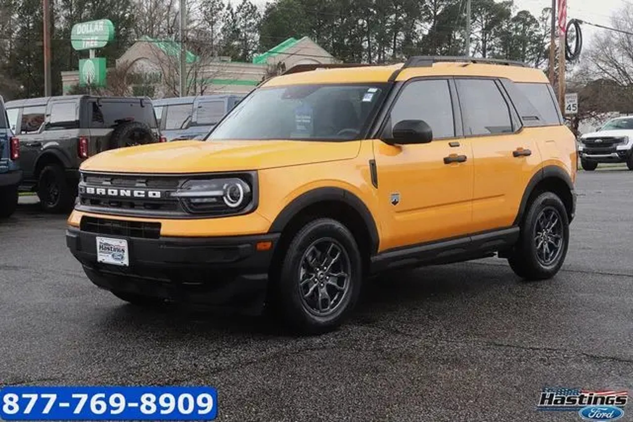 Cyber Orange Metallic Tricoat 2023 Ford Bronco Sport Big Bend 4WD 8-Speed Automatic 1.5L EcoBoost 3.80 Axle Ratio, 4-Wheel Disc Brakes, 4G LTE Wi-Fi Hotspot Credit, 6 Speakers, ABS brakes, Air Conditioning, Alloy wheels, AM/FM radio: SiriusXM, AM/FM Stereo, Auto High-beam Headlights, Automatic temperature control, Brake assist, Compass, Delay-off headlights, Driver door bin, Driver vanity mirror, Dual front impact airbags, Dual front side impact airbags, Electronic Stability Control, Emergency communication system: SYNC 3 911 Assist, Equipment Group 200A, Four wheel independent suspension, Front anti-roll bar, Front Bucket Seats, Front Center Armrest, Front License Plate Bracket, Front reading lights, Fully automatic headlights, Heated door mirrors, Illuminated entry, Knee airbag, Low tire pressure warning, Occupant sensing airbag, Outside temperature display, Overhead airbag, Overhead console, Panic alarm, Passenger door bin, Passenger vanity mirror, Power door mirrors, Power steering, Power windows, Radio data system, Rear anti-roll bar, Rear reading lights, Rear seat center armrest, Rear window defroster, Rear window wiper, Remote keyless entry, Roof-Rail Crossbars I (DIO), Security system, SiriusXM, Speed control, Speed-sensing steering, Speed-Sensitive Wipers, Split folding rear seat, Steering wheel mounted audio controls, SYNC 3 Communications & Entertainment System, SYNC 3/Apple CarPlay/Android Auto, Tachometer, Telescoping steering wheel, Tilt steering wheel, Traction control, Trip computer, Unique Cloth Front Bucket Seats, Variably intermittent wipers, Wheels: 17 Carbonized Gray-Painted Aluminum. 25/28 City/Highway MPG