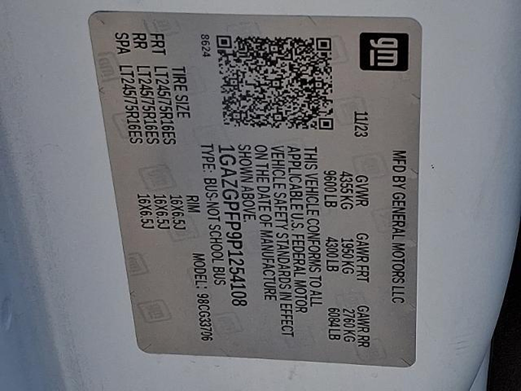 VIN 1GAZGPFP9P1254108