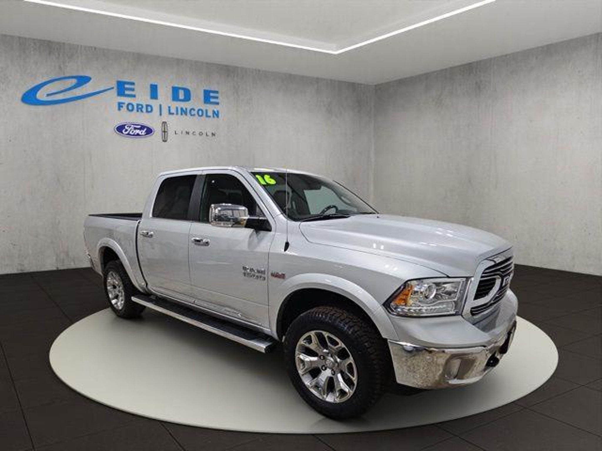Discover the ultimate in luxury and capability with this stunning 2016 Ram 1500 Laramie Longhorn. This impressive truck is a true head-turner, boasting a sleek silver exterior that commands attention wherever it goes. Prepare to be impressed by this Ram's impressive list of premium features: - Leather Seats - Power Moonroof/Sunroof - Trailer Tow Package/Trailer Hitch - Heated/Cooled Front Seats - Heated Rear Seats - Rear View Camera/Backup Camera - Navigation/Nav/GPS - Keyless Entry - Remote Start - Satellite Radio - Heated Steering Wheel - Reverse Sensing System - Park Assist - Accident Free Auto Check - 1-Owner - Local Trade-In The impressive HEMI 5.7L V8 engine, paired with an 8-Speed Automatic transmission and 4-Wheel Drive, delivers exceptional power and performance, while the fuel-efficient 15 city/21 highway MPG ratings ensure you can go the distance without constantly stopping at the pump. Indulge in the ultimate in luxury and convenience with the Quick Order Package 26V Limited, which includes features like a Chrome Bumper Package, Engine Block Heater, and more. The stunning Laramie Longhorn interior offers the perfect blend of style and comfort, with premium leather seating, wood and leather-wrapped steering wheel, and a host of other high-end touches that elevate the driving experience. Whether you're hauling heavy loads, towing a trailer, or simply enjoying the open road, this 2016 Ram 1500 Laramie Longhorn is the perfect companion. With its impressive capabilities, uncompromising quality, and exceptional attention to detail, this truck is sure to exceed your expectations. Don't miss your chance to own this exceptional vehicle. Visit our showroom today and experience the difference that Eide Ford can make in your next vehicle purchase. We are Western North Dakota's largest Ford Dealer. Winner of Ford Motor Company's prestigious President's Award for sales, service & customer satisfaction for the past six years in a row! We have been in business since 1981 and are locally owned and operated. At Eide Ford, we believe in giving you a fair and competitive price upfront. All of our vehicles feature our Markdown Pricing to ensure you feel confident about getting a good deal and excellent overall value in your vehicle purchase. We would also love to have your trade! We will give you Fair Market Trade Value for your vehicle. Want to know what your trade is worth? Use the Accu-Trade Instant Cash Offer feature on our website to receive a guaranteed value for your vehicle! We also offer convenient