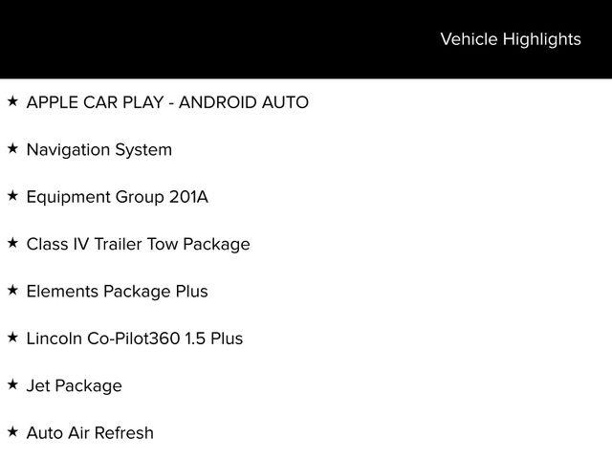 Elevate your driving experience with this exceptional 2023 Lincoln Aviator Reserve. Boasting a powerful 3.0L V6 engine paired with a smooth 10-Speed Automatic transmission and all-wheel drive, this luxury SUV delivers a dynamic and confident performance on the road. - APPLE CAR PLAY - ANDROID AUTO - Equipment Group 201A - Jet Package - Lincoln Co-Pilot360 1.5 Plus - Navigation System - Auto Air Refresh - Head-Up Display - Phone As A Key - Panoramic Vista Roof - Blind Spot Information System - Intelligent Adaptive Cruise Control - Black and Body-Color Exterior Elements - Class IV Trailer Tow Package Step inside the spacious and well-appointed cabin of the Aviator Reserve, where you'll be surrounded by premium materials and state-of-the-art technology. Enjoy the convenience of features like the Revel audio system with 14 speakers, dual-zone automatic climate control, and a power liftgate. The Heated and Ventilated front seats, Heated Steering Wheel, and Heated/Ventilated second-row outboard seats ensure exceptional comfort for all passengers. This Aviator Reserve is a certified pre-owned (CPO) vehicle, meaning it has undergone a rigorous multi-point inspection and comes with an extended warranty for added peace of mind. With its sleek Black exterior and low mileage, this Aviator is ready to provide you with a truly exceptional driving experience. Elevate your daily commute and weekend adventures with the 2023 Lincoln Aviator Reserve. Its impressive performance, luxurious amenities, and certified pre-owned status make it an exceptional choice for the discerning driver. Schedule a test drive today and discover the ultimate in comfort, technology, and driving pleasure.