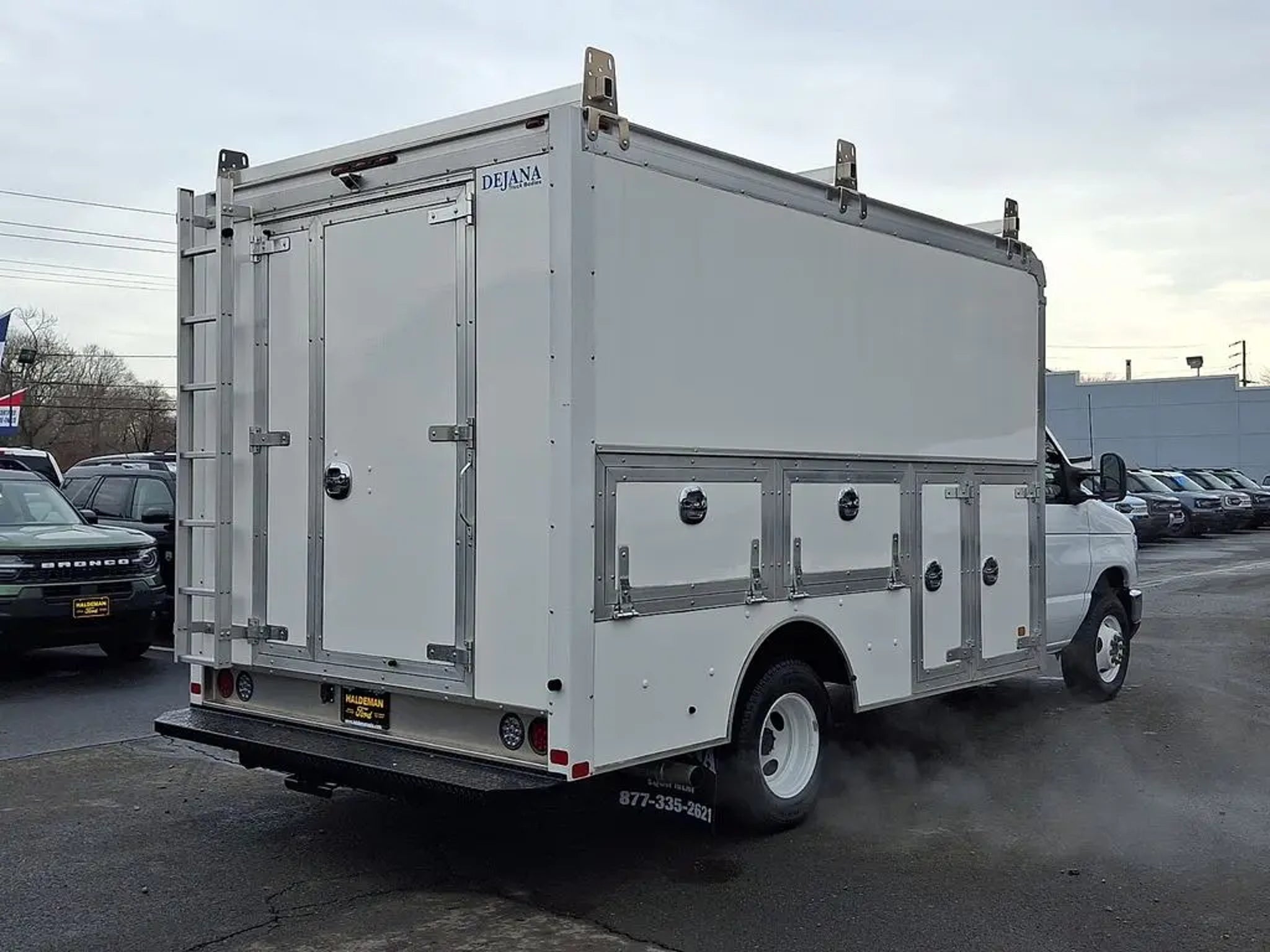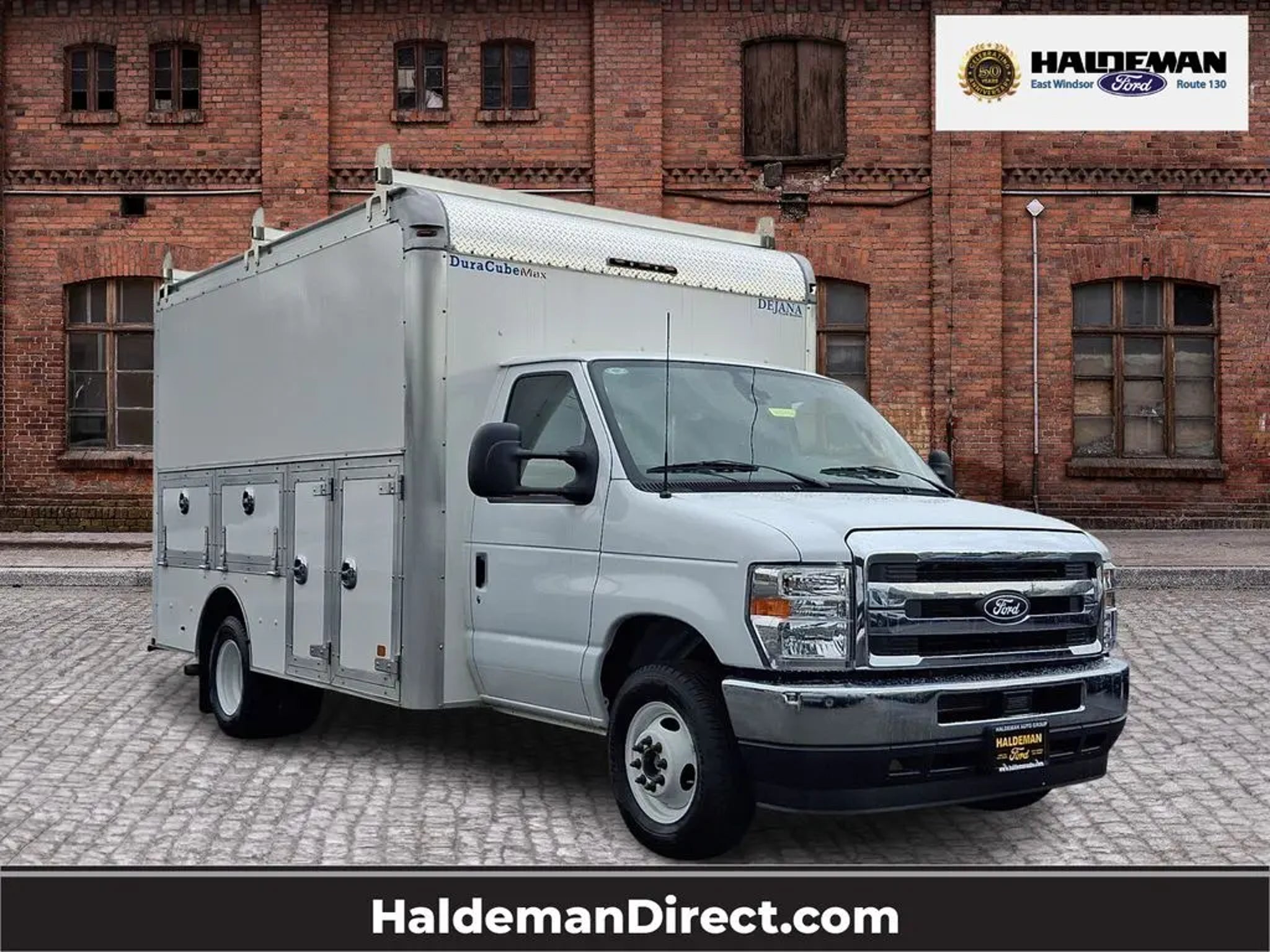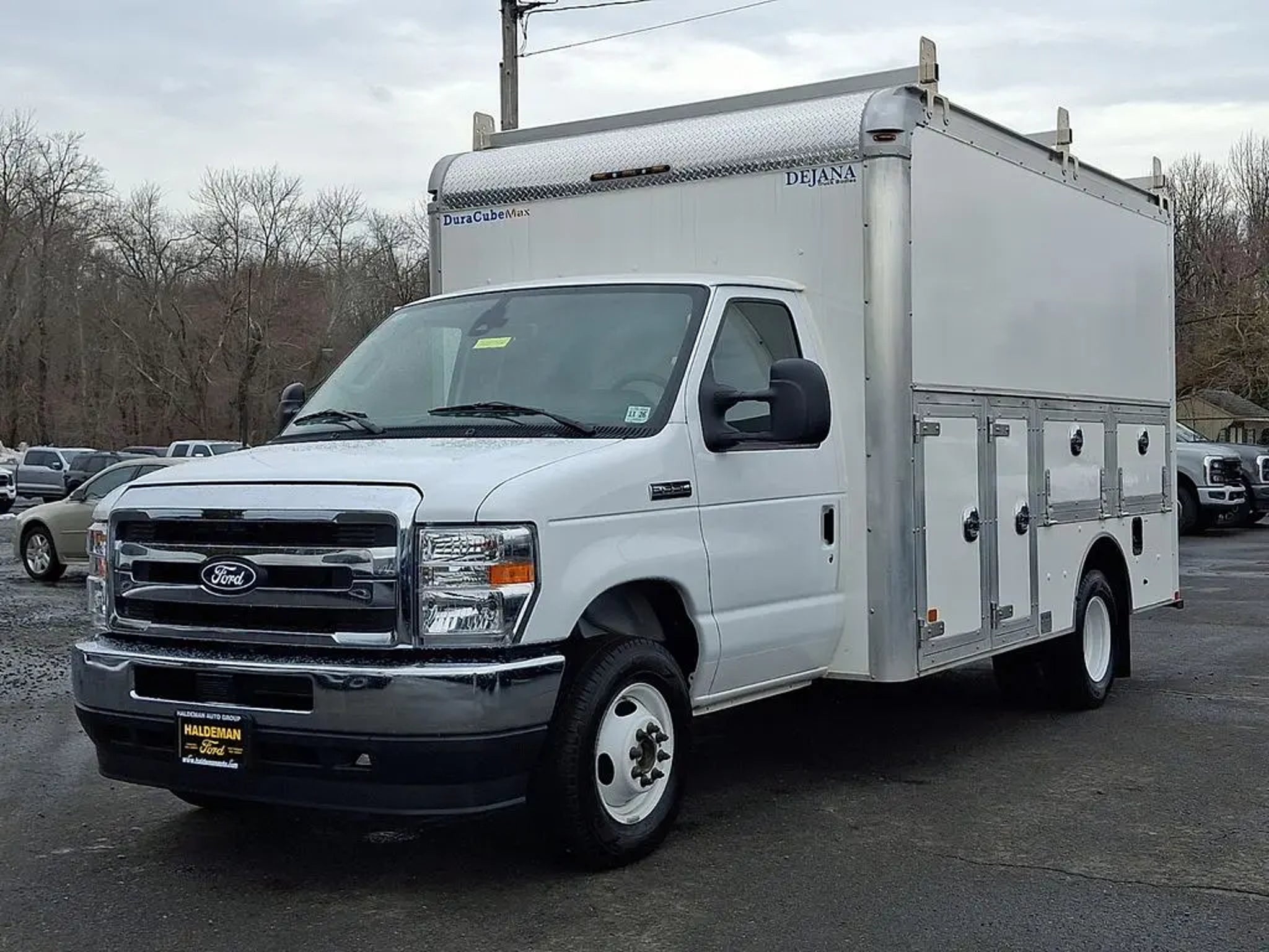 2026 Ford E-350 Cutaway with Dejana DuraCube Max FRP Body ? Only 2,395 Miles. This like-new work truck features a 12? Dejana DuraCube Max FRP body measuring 96? wide with a 78? interior height, providing a spacious stand-up cargo area ideal for contractors, delivery services, or mobile businesses. The durable fiberglass-reinforced body offers corrosion resistance, improved insulation, and long-term durability, while the smooth aerodynamic front cap and double rear cargo doors provide easy access and a professional appearance. Mounted on the dependable Ford E-350 chassis and equipped with exterior side storage compartments, this unit is ready for upfitting and immediate use without the wait of ordering new.. CARFAX One-Owner. Clean CARFAX.
