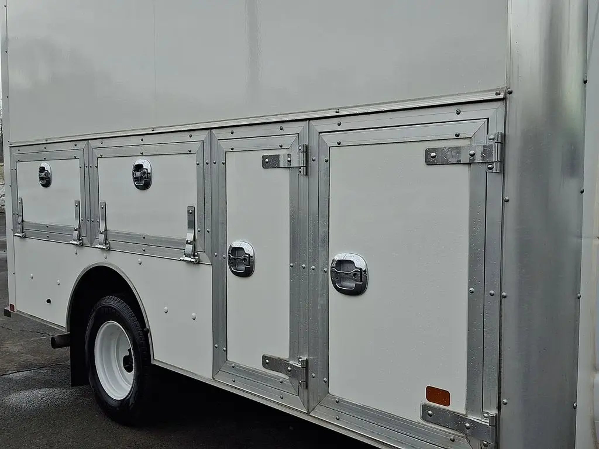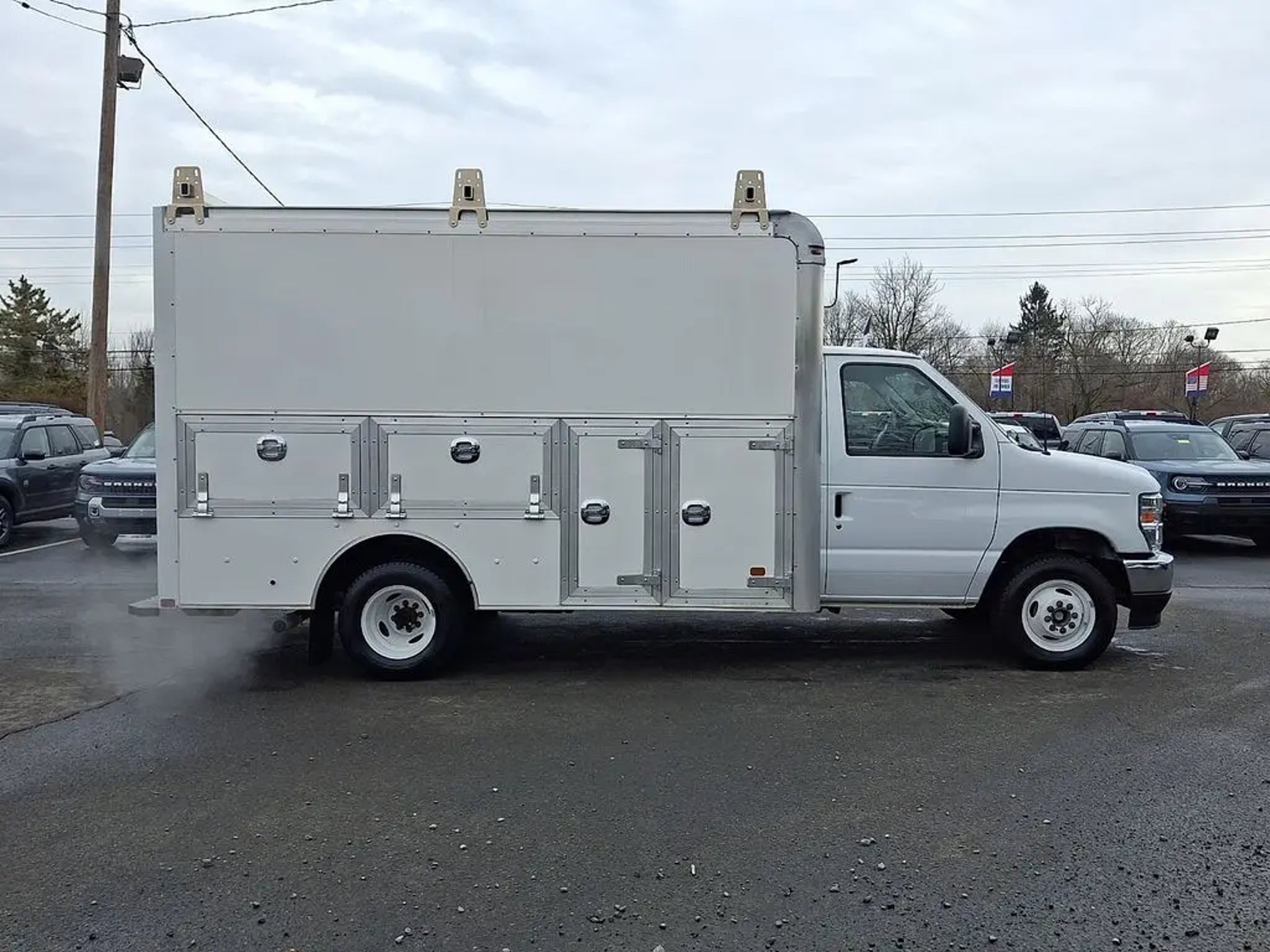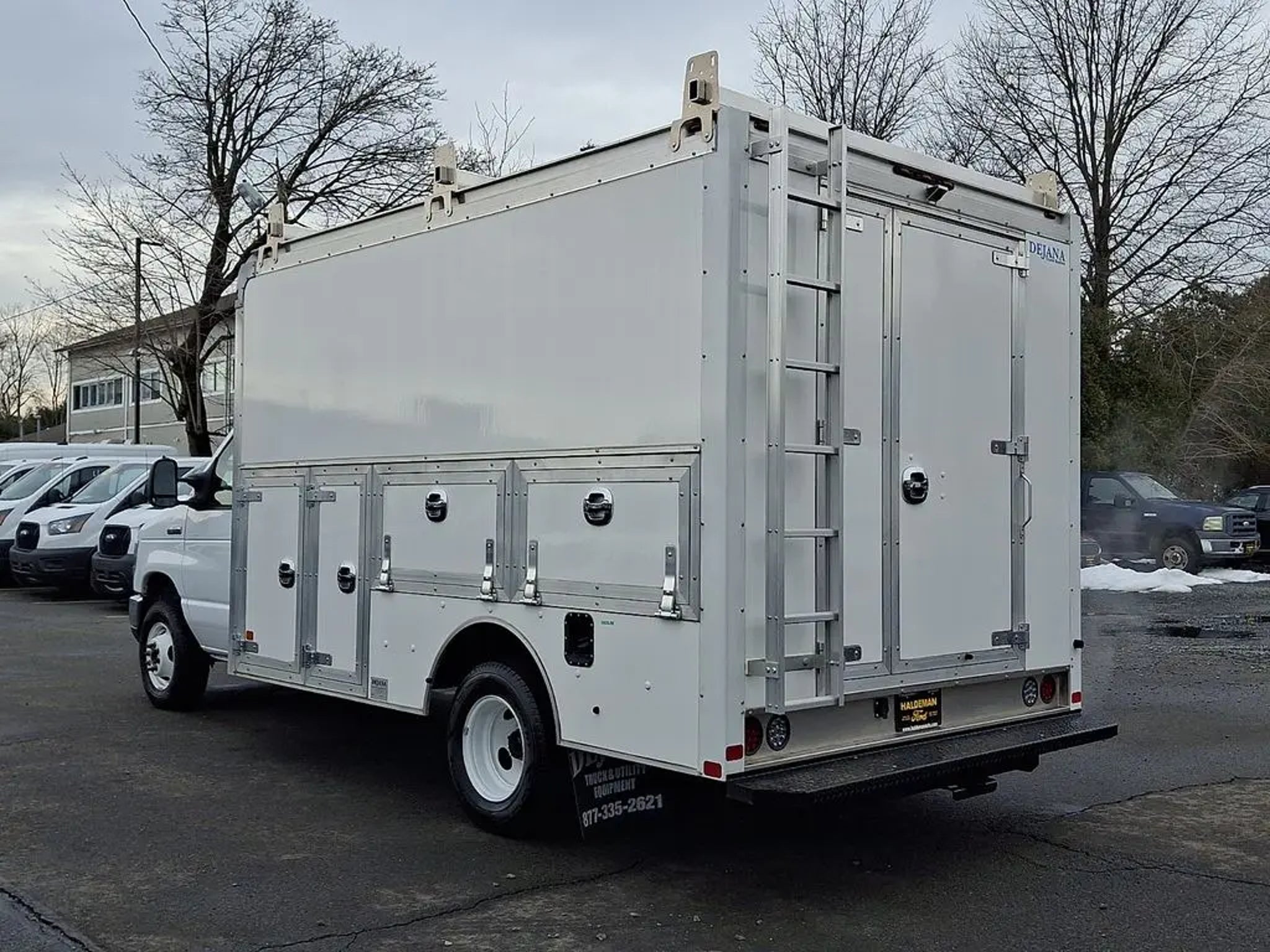 2026 Ford E-350 Cutaway with Dejana DuraCube Max FRP Body ? Only 2,395 Miles. This like-new work truck features a 12? Dejana DuraCube Max FRP body measuring 96? wide with a 78? interior height, providing a spacious stand-up cargo area ideal for contractors, delivery services, or mobile businesses. The durable fiberglass-reinforced body offers corrosion resistance, improved insulation, and long-term durability, while the smooth aerodynamic front cap and double rear cargo doors provide easy access and a professional appearance. Mounted on the dependable Ford E-350 chassis and equipped with exterior side storage compartments, this unit is ready for upfitting and immediate use without the wait of ordering new.. CARFAX One-Owner. Clean CARFAX.