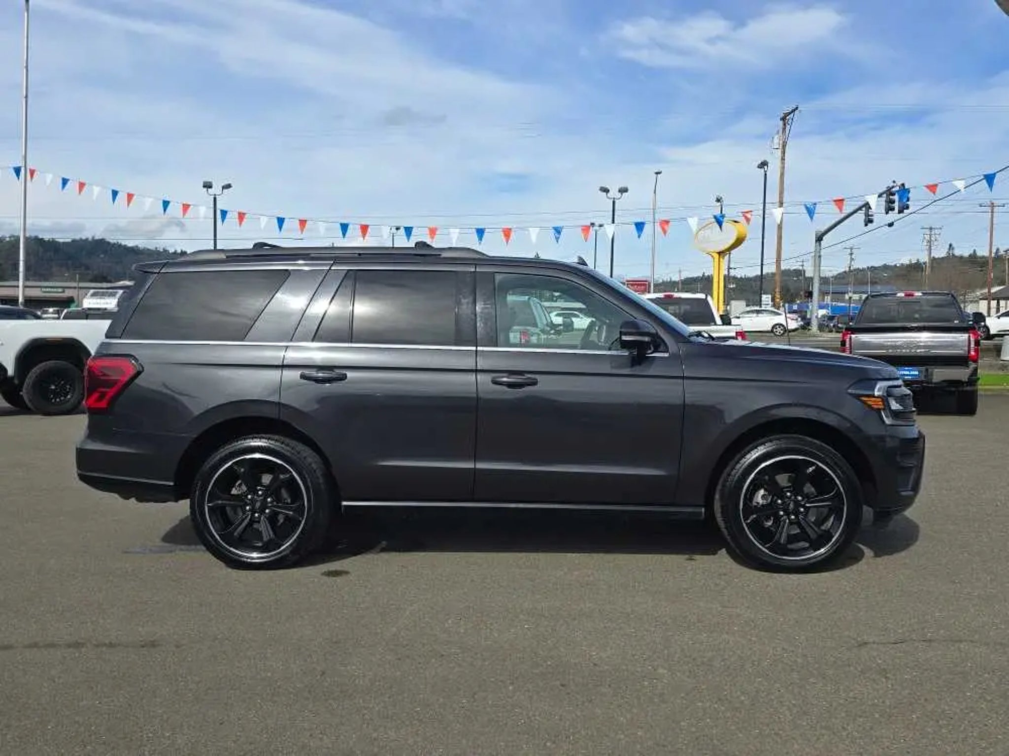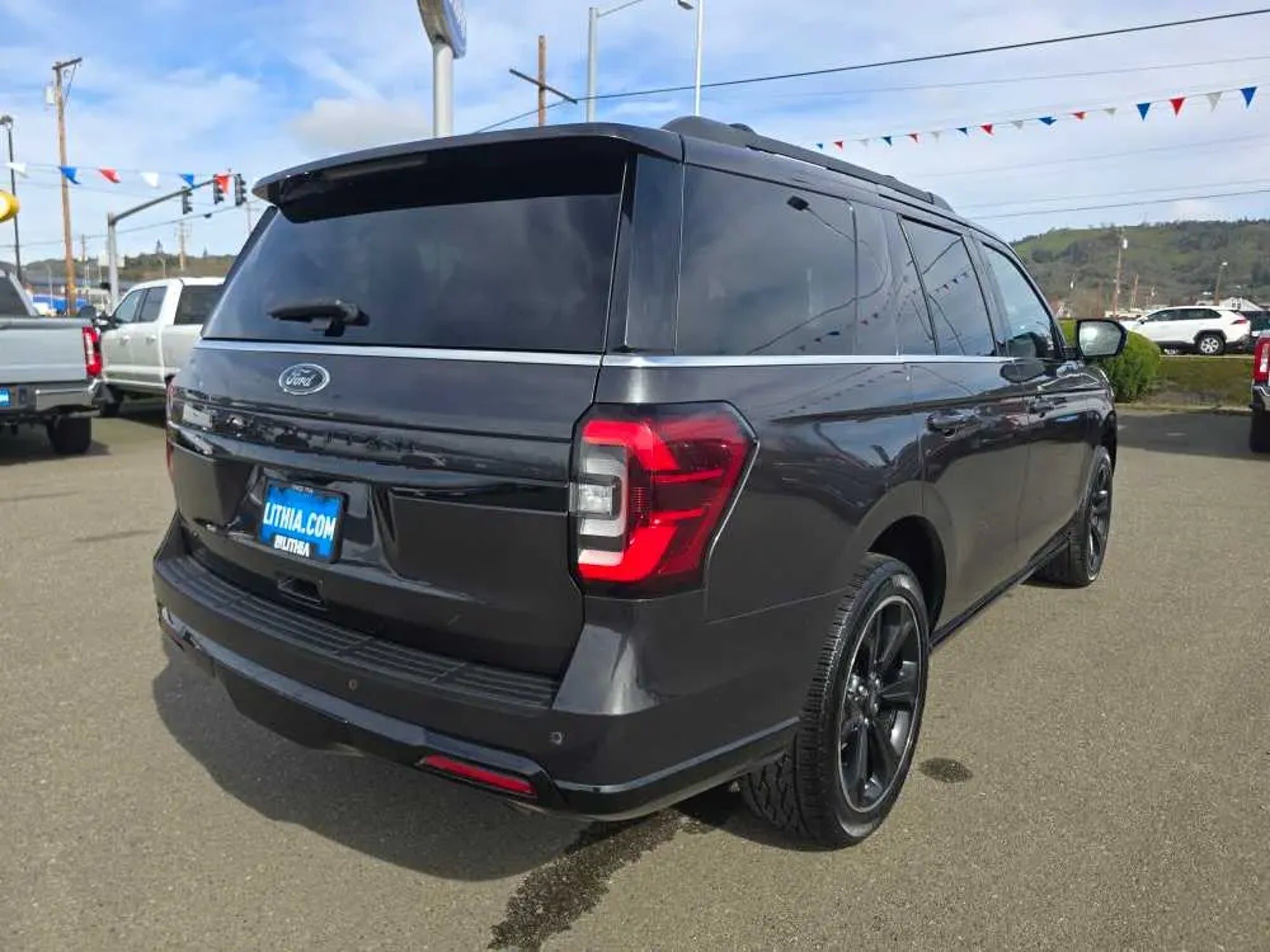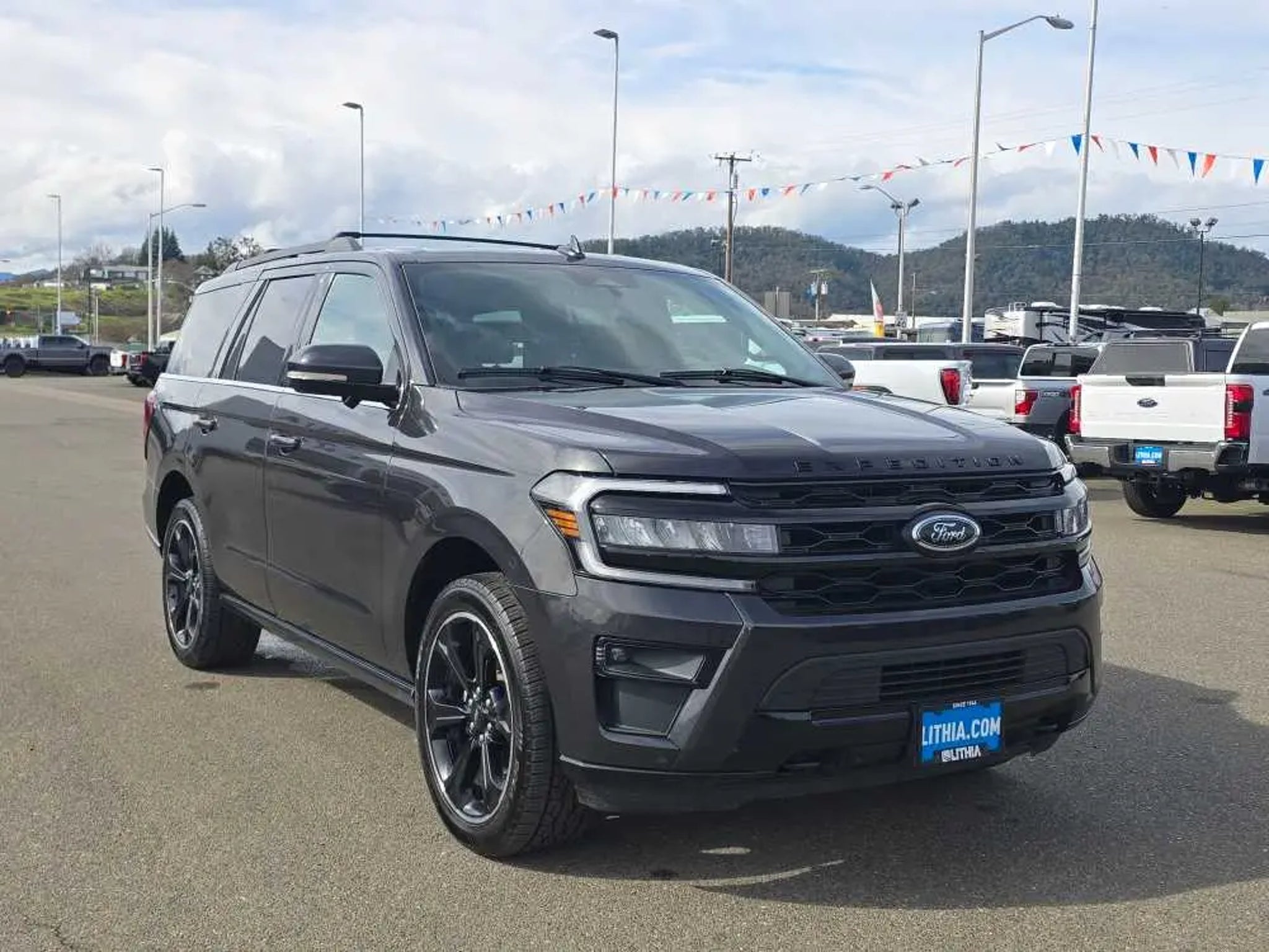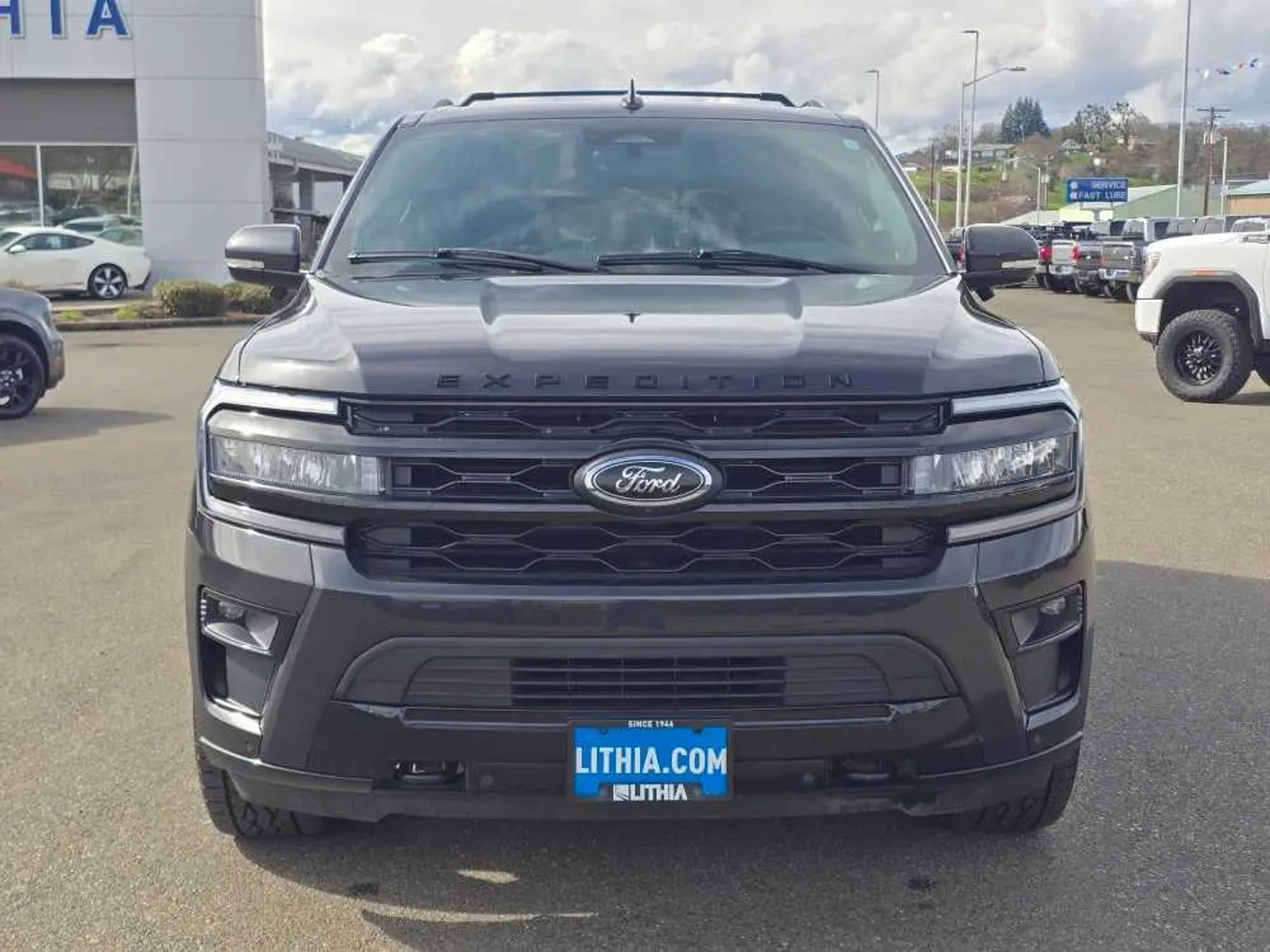 CARFAX 1-Owner, Ford Blue Certified, Extra Clean. Heated Leather Seats, 3rd Row Seat, Sunroof, NAV, Rear Air, Power Liftgate, 4x4, Tow Hitch, Quad Seats, ADVANCED CARGO MANAGER, CONTROLTRAC W/3.73 AXLE RATIO. CLICK NOW! KEY FEATURES INCLUDE Leather Seats, Third Row Seat, Quad Bucket Seats, Power Liftgate, Rear Air, Heated Driver Seat, Heated Rear Seat, Cooled Driver Seat, Premium Sound System, Satellite Radio, iPod/MP3 Input, Onboard Communications System, Remote Engine Start, Dual Zone A/C, Apple CarPlay®. Rear Spoiler, MP3 Player, Keyless Entry, Privacy Glass, Remote Trunk Release. OPTION PACKAGES EQUIPMENT GROUP 303A STEALTH PACKAGE 1st & 2nd Row Floor Mats w/Logo, Ford Co-Pilot360 Assist 2.0, Connected Built-In Navigation, 3 years of service, pinch-to-zoom capability, live traffic, predictive destinations and route guidance, Reverse Brake Assist, 360-Degree Camera w/Split View, front/rear washer, Stealth Edition Package, Expedition lettering on hood, black limited tailgate badge and front/second row floor mats w/logo, Black Roof Rack Side Rails, LED Taillamp w/Black Bezels, Black Headlamp and Fog Lamp Bezels, Ebony Black Power Deployable Running Boards, Wheels: 22 Premium Black-Painted Aluminum, Sport-Tuned Suspension, Continuous Controlled Damping (CCD) w/suspension road preview, Black Rear Bumper, Ebony Black Bar and Mesh Grille, Ebony Black Tailgate Applique, Tires: P285/45R22, CONTROLTRAC W/3.73 AXLE RATIO eLSD (Electronic Limited-Slip Differential), 2-Speed Automatic 4WD, neutral towing capability, HEAVY-DUTY TRAILER TOW PACKAGE 3.73 Axle Ratio, non-limited-slip rear axle, Integrated Trailer Brake Controller, 26mm Engine Radiator, Pro Trailer Backup Assist, 2-Speed Automatic 4WD, neutral towing capability, 360-Degree Camera w/Trailer Reverse Guidance, ADVANCED CARGO MANAGER black roof-rail crossbars and side rails, TRANSMISSION: 10-SPEED AUTOMATIC W/SELECTSHIFT (STD). 2023 Ford Expedition with Dark Matter Gray exterior and Black Onyx interior features a V6 Cylinder Engine with 400 HP at 5000 RPM*. Non-Smoker vehicle PRICED TO MOVE Was $45,999. SHOP WITH CONFIDENCE CARFAX 1-Owner AutoCheck One Owner Every Blue Certified used vehicle must pass a 139-point inspection, Service available at any Ford Dealer in the 50 states, and a manufacturer-backed 90-Day/4,000-Mile (whichever comes first) Comprehensive Limited Warranty, and Complimentary 24/7 Roadside Assistance, 11,000 FordPass Rewards Points to use towardscheduled maintenance visits or other rewards, CARFAX Vehicle History Report included, Complimentary SiriusXM 3-month trial WHO WE ARE Lithia Ford of Roseburg is a Douglas County, OR car dealer committed to earning customers for life. That means we respect your time, treat you like a neighbor and listen to what you are looking for and then give you straightforward information you need to make an intelligent decision.We proudly serve our neighbors in Roseburg and the surrounding I-5 corridor communities of Sutherlin, Winston, Green and even Eugene. Plus license and title, and $250 title and registration processing fee. Price does not include a charge for 0.40% Oregon Corporate Activity Tax. A 0.5% state privilege tax will be added to new vehicles. Not all sales at MSRP.