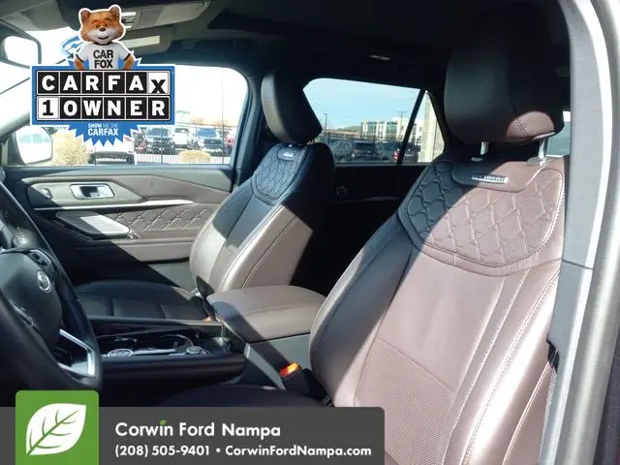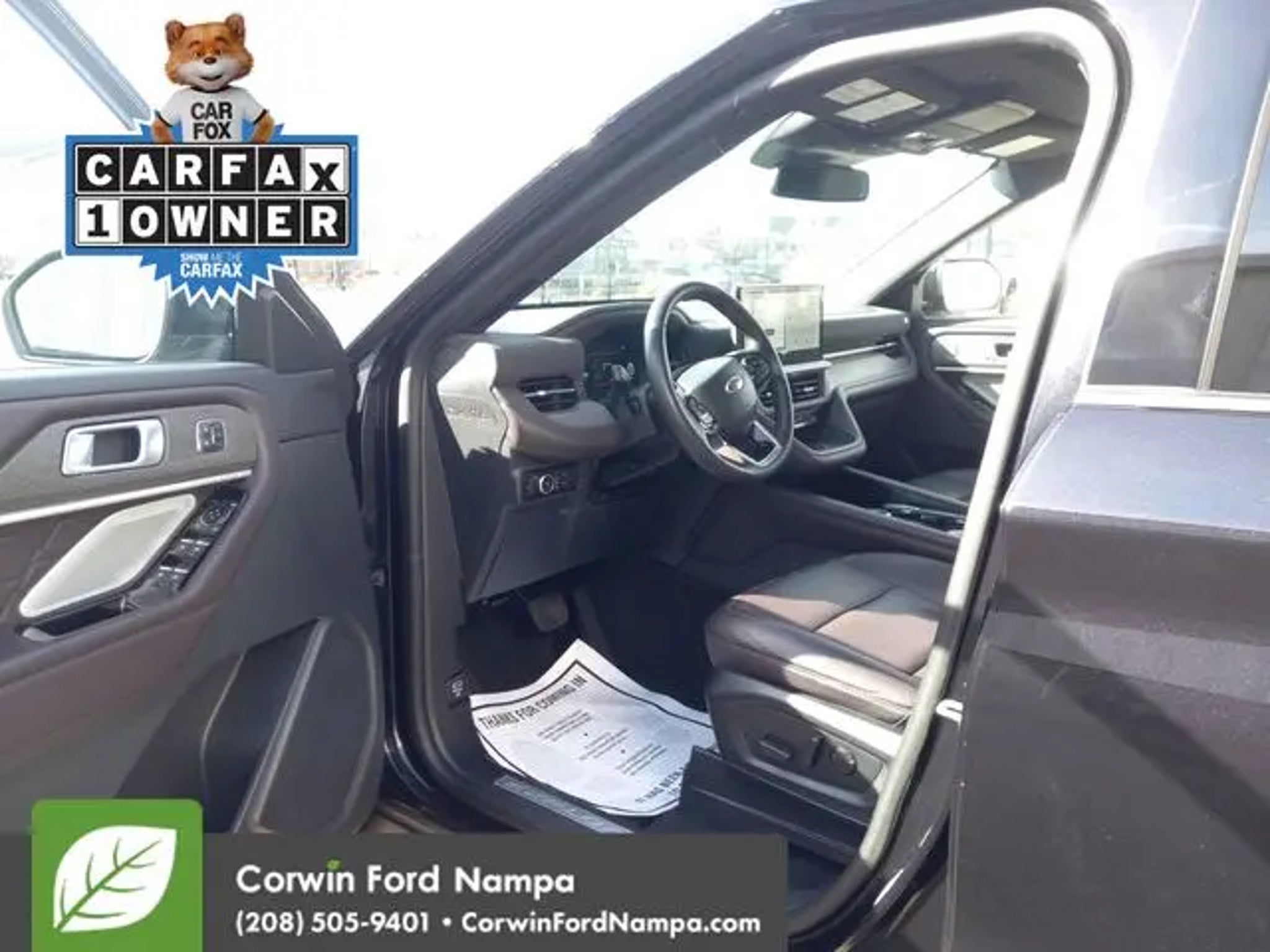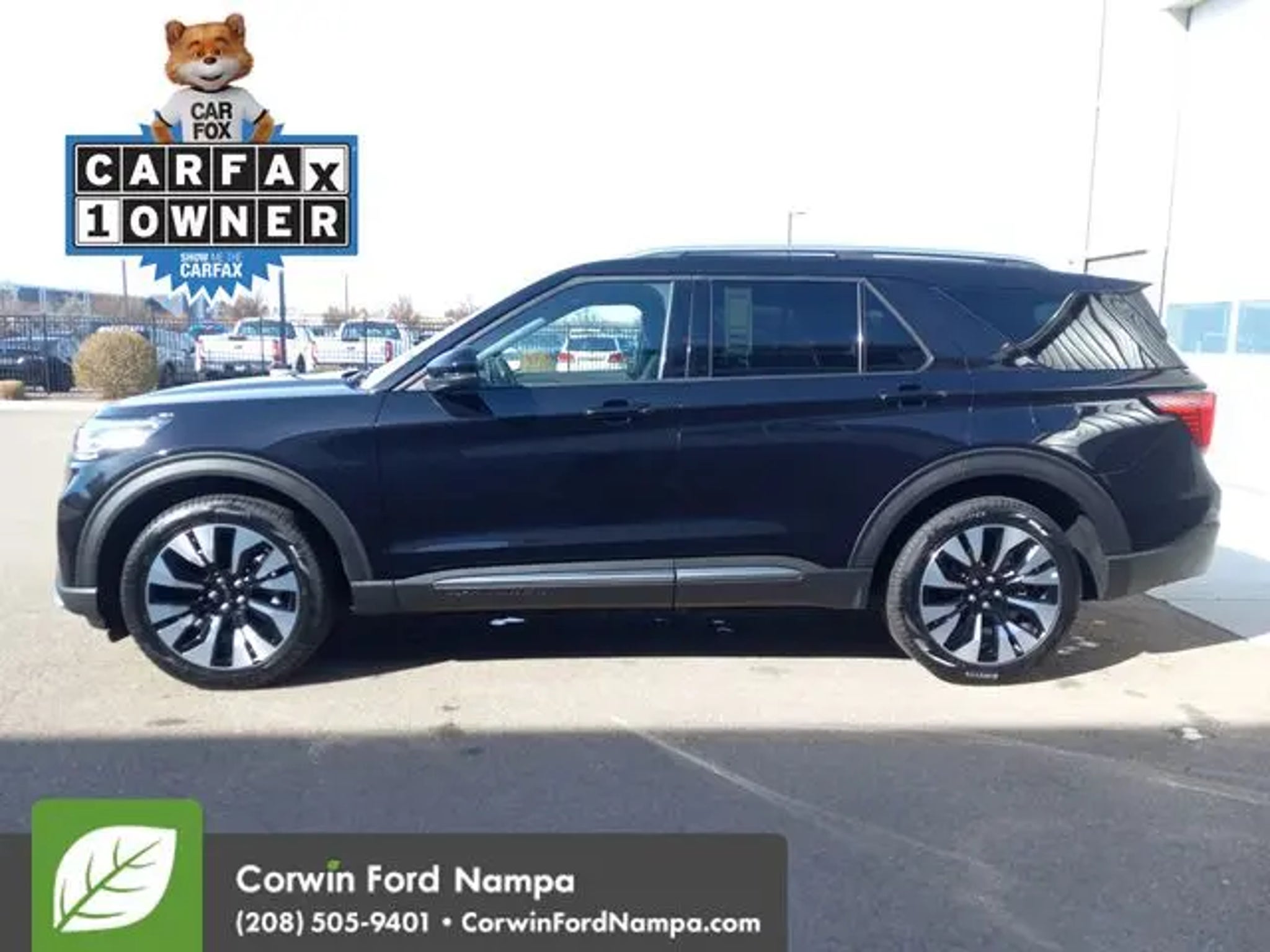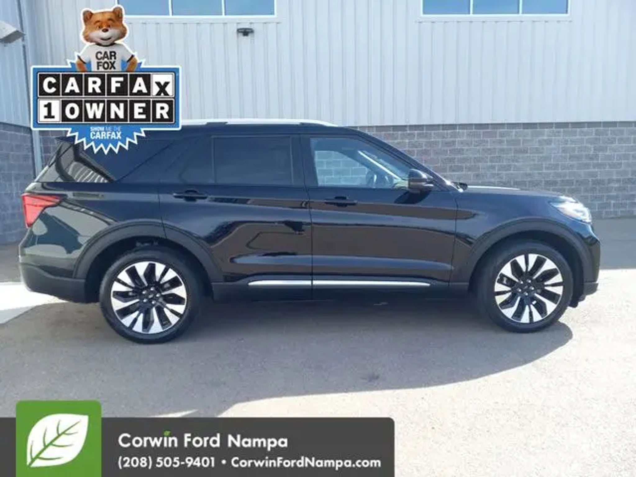 Our sophisticated Certified, Accident Free, One Owner 2025 Ford Explorer Platinum 4WD is ready to raise your limits for family adventure in Agate Black Metallic! Motivated by a TurboCharged 2.3. Liter 4 Cylinder generating 300hp for a 10 Speed Automatic transmission. This Four Wheel Drive SUV also combines terrain management and a robust suspension for traveling tough trails, and it returns nearly 27mpg on the highway. Dramatic Explorer details include adaptive LED headlights, fog lamps, upsized 21-inch wheels, silver-painted skid-plate elements, a power liftgate, twin panel sunroof, chrome exhaust tips, and satin aluminum roof rails. Enjoy luxury for the long haul in our Platinum cabin. It treats you to heated/ventilated/massaging leather power front seats with tri-diamond inserts, heated second-row captain's chairs, a power-fold third row, a heated leather power steering wheel, and tri-zone automatic temperature control. Your mobile command center boasts a 13.2-inch touchscreen, 12.3-inch driver display, B&O audio, WiFi compatibility, wireless smartphone connectivity, and wireless charging. Ford helps seal the deal with smart safety, providing blind-spot monitoring, adaptive cruise control, automatic braking, a 360-degree camera system, forward collision warning, lane-keeping assistance, and more. Our Explorer Platinum is a capable towing machine that can help your family pull through the tough spots! Save this Page and Call for Availability. We Know You Will Enjoy Your Test Drive Towards Ownership! Corwin Ford Nampa! Friendly service and aggressive pricing is why we are your new and pre-owned vehicle dealer serving, Nampa, Boise, Meridian, Caldwell, Kuna, Eagle, Emmett, Idaho City, Wilder, New Plymouth, Star, Middleton, Weiser, Payette, Horseshoe Bend, Mountain Home, Idaho, and surrounding states.