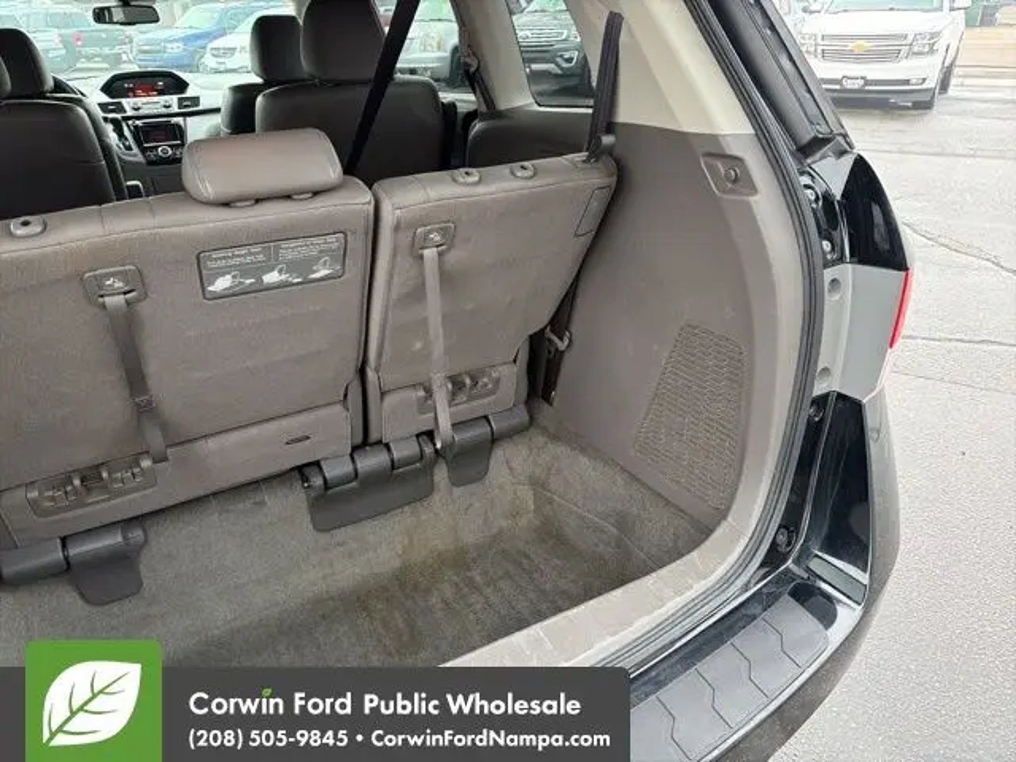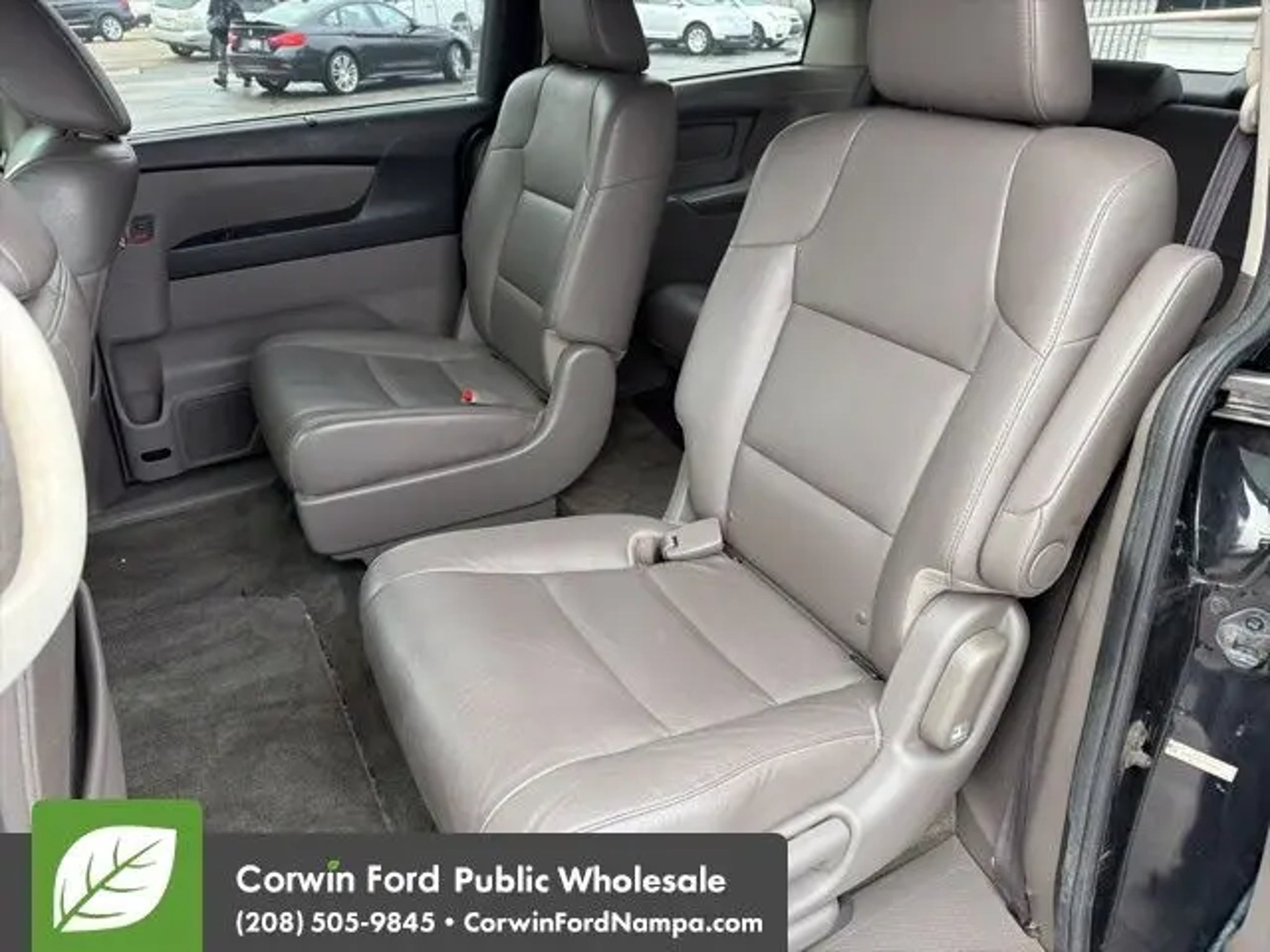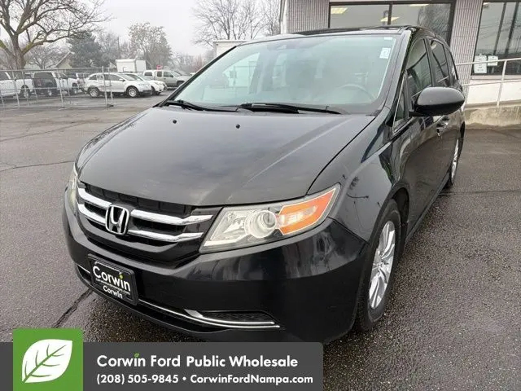 Start your adventure with our 2015 Honda Odyssey EX-L Van presented in beautiful Crystal Black Pearl. Powered by a 3.5 Liter V6 that offers 248hp paired to a 6 Speed Automatic transmission for natural passing authority. Fun to drive, this Front Wheel Drive minivan will impress you with its confident handling, acceleration, and versatility while offering nearly 27mpg on the highway. The aerodynamic exterior design of the Odyssey EX-L adds style as well as function. Get behind the wheel and experience the refined leather-trimmed EX-L interior featuring a massive sunroof; you may think you're in a luxury sedan! Designed with your busy family in mind, it has child-friendly power-sliding doors that help at school drop-off. Multi-adjustable second-row seats and a 60/40 split-folding third-row seat accommodate your growing family, and the cooler box is great for sippy cups! You will feel more relaxed with comfortable heated front seats and an audio system offering 2GB of digital music storage. Our Honda has earned superior safety ratings in its class due to ABS, stability/traction control, and airbags that cover all three rows. Start your journey with this Odyssey EX-L as your family's mobile command center. Save this Page and Call for Availability. We Know You Will Enjoy Your Test Drive Towards Ownership! Corwin Ford Nampa! Friendly service and aggressive pricing is why we are your new and pre-owned vehicle dealer serving, Nampa, Boise, Meridian, Caldwell, Kuna, Eagle, Emmett, Idaho City, Wilder, New Plymouth, Star, Middleton, Weiser, Payette, Horseshoe Bend, Mountain Home, Idaho, and surrounding states.