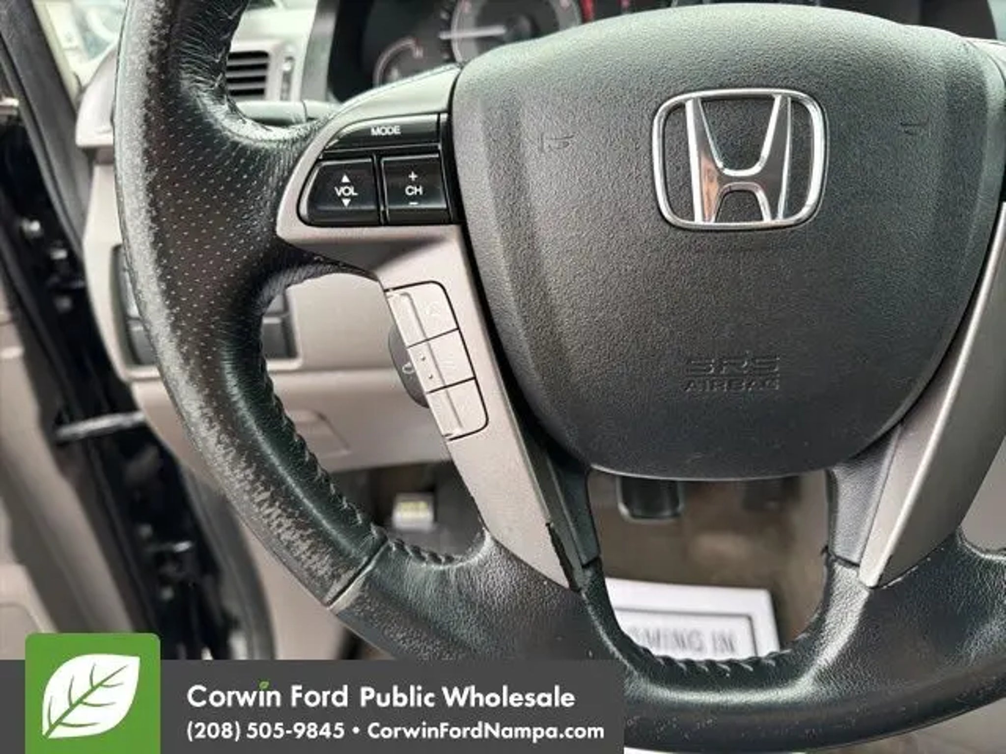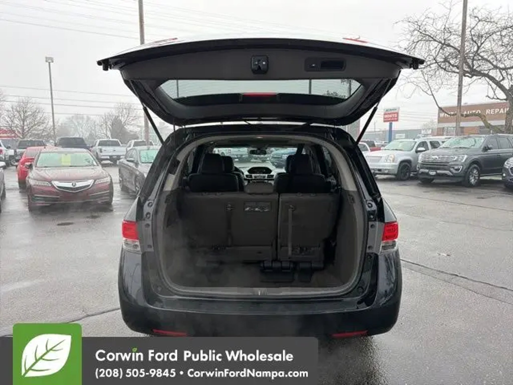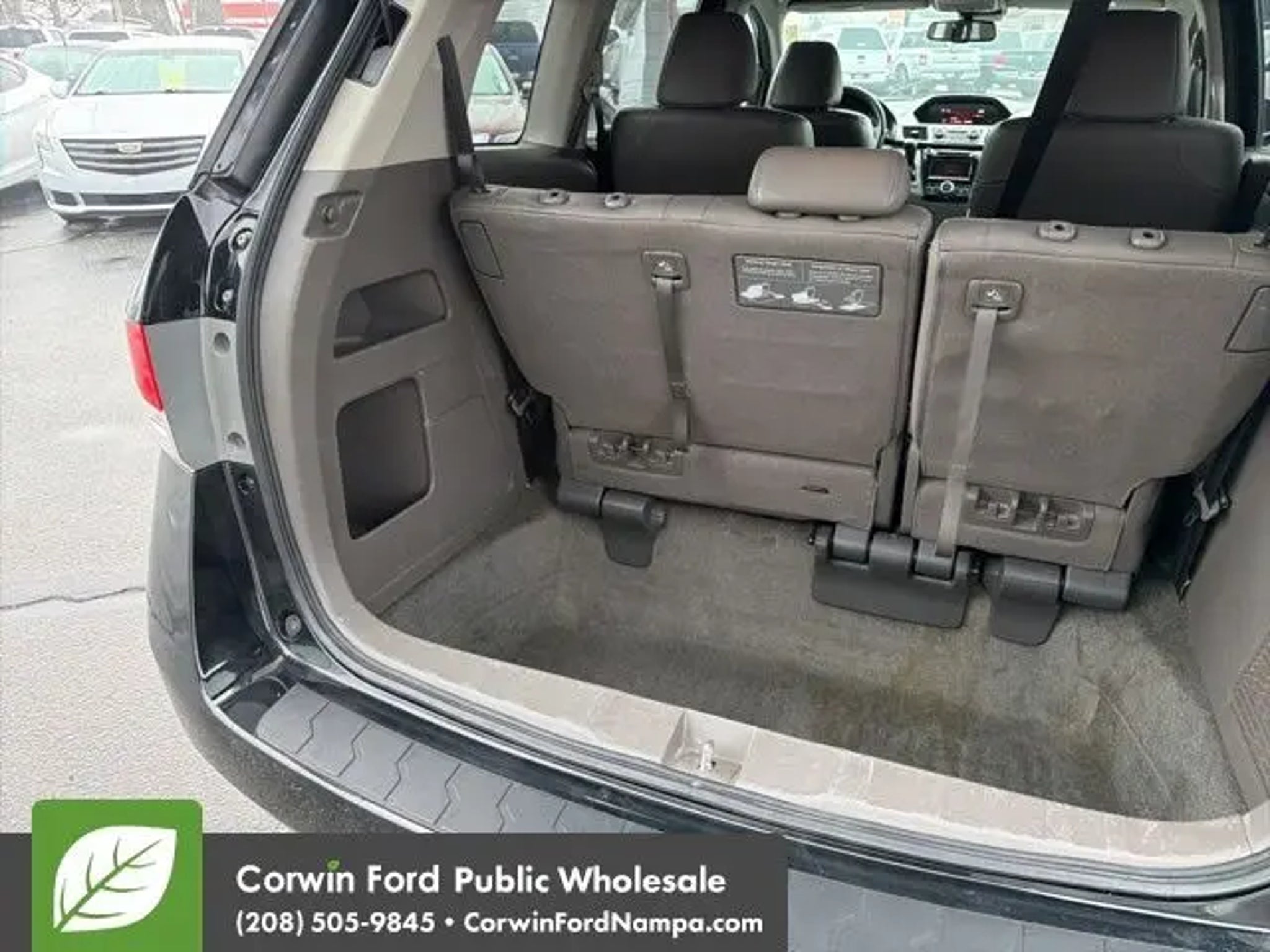 Start your adventure with our 2015 Honda Odyssey EX-L Van presented in beautiful Crystal Black Pearl. Powered by a 3.5 Liter V6 that offers 248hp paired to a 6 Speed Automatic transmission for natural passing authority. Fun to drive, this Front Wheel Drive minivan will impress you with its confident handling, acceleration, and versatility while offering nearly 27mpg on the highway. The aerodynamic exterior design of the Odyssey EX-L adds style as well as function. Get behind the wheel and experience the refined leather-trimmed EX-L interior featuring a massive sunroof; you may think you're in a luxury sedan! Designed with your busy family in mind, it has child-friendly power-sliding doors that help at school drop-off. Multi-adjustable second-row seats and a 60/40 split-folding third-row seat accommodate your growing family, and the cooler box is great for sippy cups! You will feel more relaxed with comfortable heated front seats and an audio system offering 2GB of digital music storage. Our Honda has earned superior safety ratings in its class due to ABS, stability/traction control, and airbags that cover all three rows. Start your journey with this Odyssey EX-L as your family's mobile command center. Save this Page and Call for Availability. We Know You Will Enjoy Your Test Drive Towards Ownership! Corwin Ford Nampa! Friendly service and aggressive pricing is why we are your new and pre-owned vehicle dealer serving, Nampa, Boise, Meridian, Caldwell, Kuna, Eagle, Emmett, Idaho City, Wilder, New Plymouth, Star, Middleton, Weiser, Payette, Horseshoe Bend, Mountain Home, Idaho, and surrounding states.