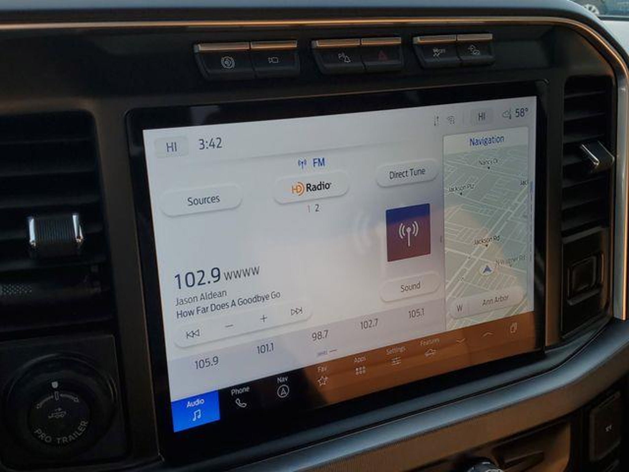 Certified. Ford Gold Certified Certified, 4WD, 4-Wheel Disc Brakes, ABS brakes, Adjustable pedals, Air Conditioning, All-Weather Floor Mats, Alloy wheels, AM/FM radio: SiriusXM with 360L, Auto High-beam Headlights, Auto tilt-away steering wheel, Auto-dimming Rear-View mirror, Automatic temperature control, Brake assist, Compass, Delay-off headlights, Driver door bin, Driver vanity mirror, Dual front impact airbags, Dual front side impact airbags, Electronic Stability Control, Electronic-Locking w/3.55 Axle Ratio, Emergency communication system: SYNC 4 911 Assist, Exterior Parking Camera Rear, Flow-Through Console, Front & Rear Wheel Well Liners (Pre-Installed), Front anti-roll bar, Front Bucket Seats, Front Center Armrest, Front dual zone A/C, Front fog lights, Front reading lights, Fully automatic headlights, Garage door transmitter, Heated door mirrors, Heated front seats, Heated rear seats, Heated steering wheel, Illuminated entry, Leather steering wheel, LED Roof Clearance Lights, Low tire pressure warning, Memory seat, Navigation system: Connected Navigation (includes complimentary 1-year trial), Outside temperature display, Overhead airbag, Overhead console, Panic alarm, Passenger door bin, Passenger vanity mirror, Pedal memory, Power door mirrors, Power driver seat, Power passenger seat, Power steering, Power windows, Rain sensing wipers, Rear reading lights, Rear seat center armrest, Rear step bumper, Rear window defroster, Remote keyless entry, Security system, SiriusXM Radio w/360L, Speed control, Split folding rear seat, Steering wheel memory, Steering wheel mounted audio controls, SYNC 4 w/Enhanced Voice Recognition, Tachometer, Telescoping steering wheel, Tilt steering wheel, Tough Bed Spray-In Bedliner, Traction control, Trip computer, Turn signal indicator mirrors, Twin Panel Power Moonroof, Variably intermittent wipers, Ventilated front seats, 4WD. CARFAX One-Owner.