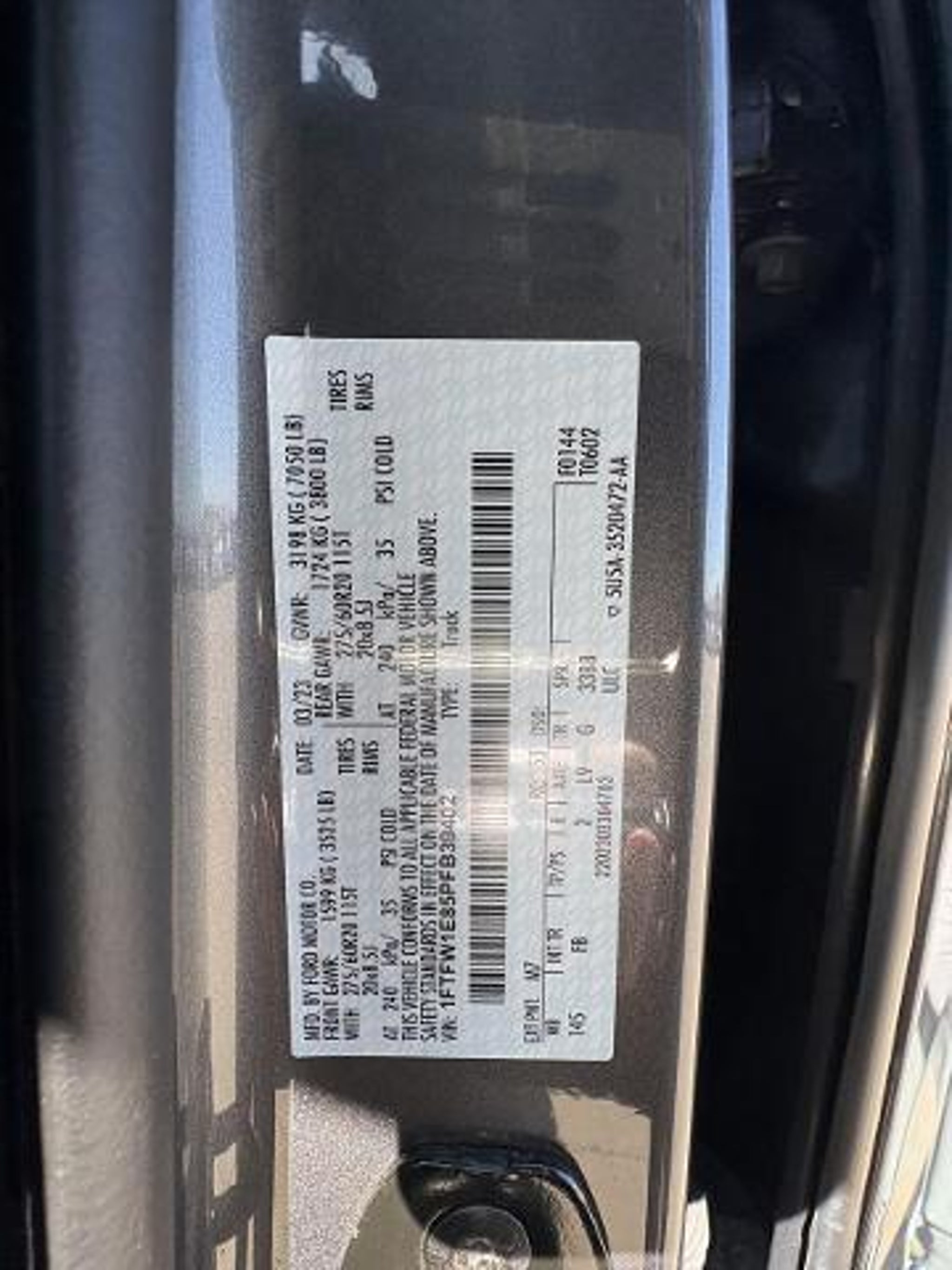 VIN 1FTFW1E85PFB39402