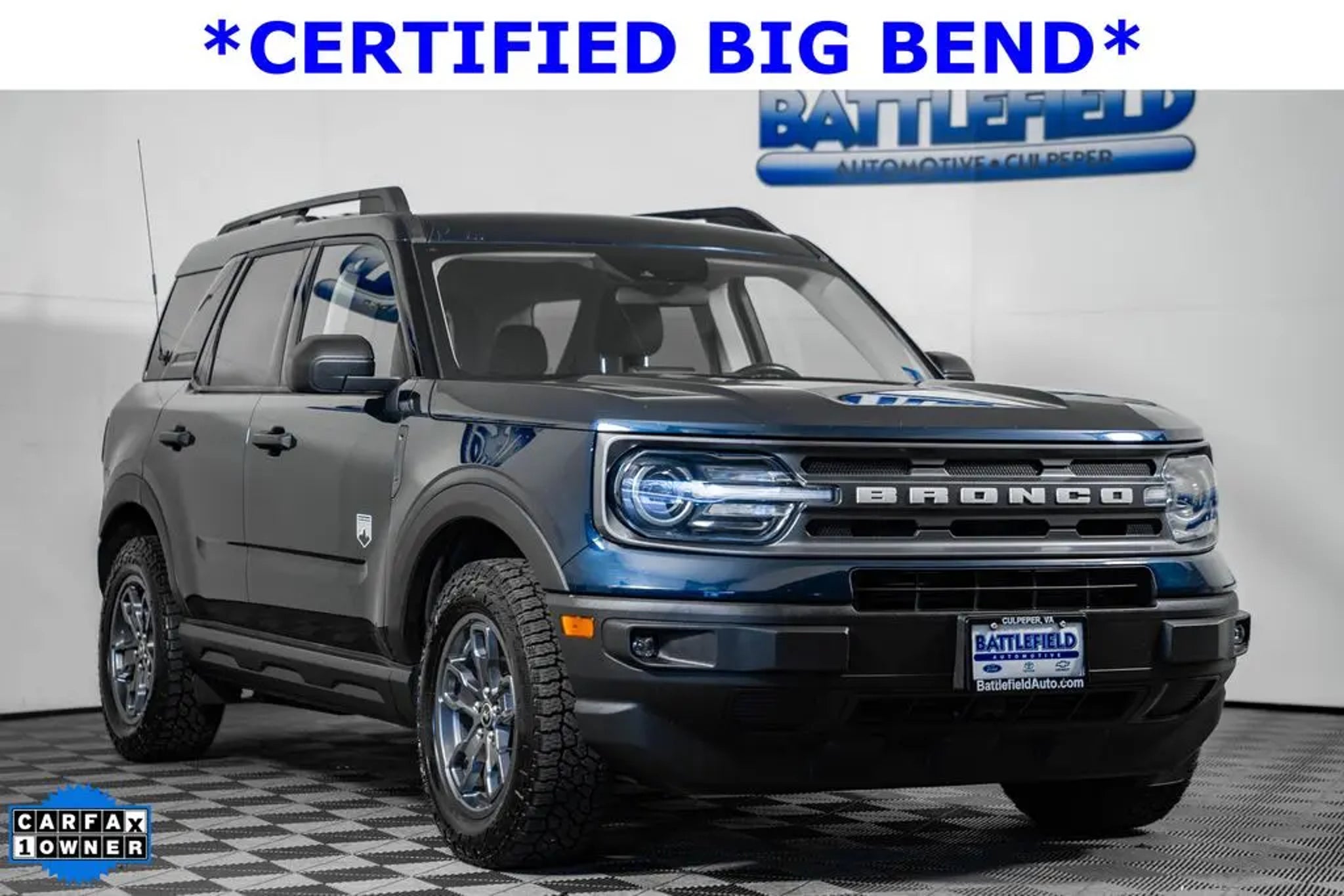 Discover the rugged charm and capable performance of the 2022 Ford Bronco Sport Big Bend. This versatile SUV is ready to take on any adventure, whether it's conquering the great outdoors or navigating the urban jungle. - FORD BLUE CERTIFIED!! - Convenience Package - Class II Trailer Tow Package w/Trailer Sway Control - Intelligent Access (Lock/Unlock) - Rear Parking Sensors - LED Fog Lamps - Front Driver & Passenger Seatback Zipper Pockets - Leather-Wrapped Steering Wheel - Universal Garage Door Opener (UGDO) - Wireless Charging Pad - Heated Front Bucket Seats Powered by a 1.5L EcoBoost engine and equipped with 4WD, the Bronco Sport Big Bend delivers impressive fuel efficiency of 25 MPG in the city and 28 MPG on the highway, making it an exceptional choice for both everyday commuting and weekend getaways. This Ford Bronco Sport is not just a capable off-road companion, but also a refined and well-equipped vehicle that caters to your everyday needs. With a host of advanced features, including SYNC 3 with Apple CarPlay and Android Auto, a wireless charging pad, and a comprehensive suite of safety technologies, the Bronco Sport Big Bend is designed to keep you connected, comfortable, and secure on the road. As a Ford Blue Certified pre-owned vehicle, this Bronco Sport has undergone a rigorous inspection and reconditioning process, ensuring it meets the highest standards of quality and reliability. With the backing of Ford's comprehensive warranty, you can drive with confidence, knowing that your investment is protected. Experience the perfect blend of ruggedness and refinement with the 2022 Ford Bronco Sport Big Bend. Schedule a test drive today and discover the ultimate adventure-ready SUV that's ready to take you wherever the road, or the trail, may lead.