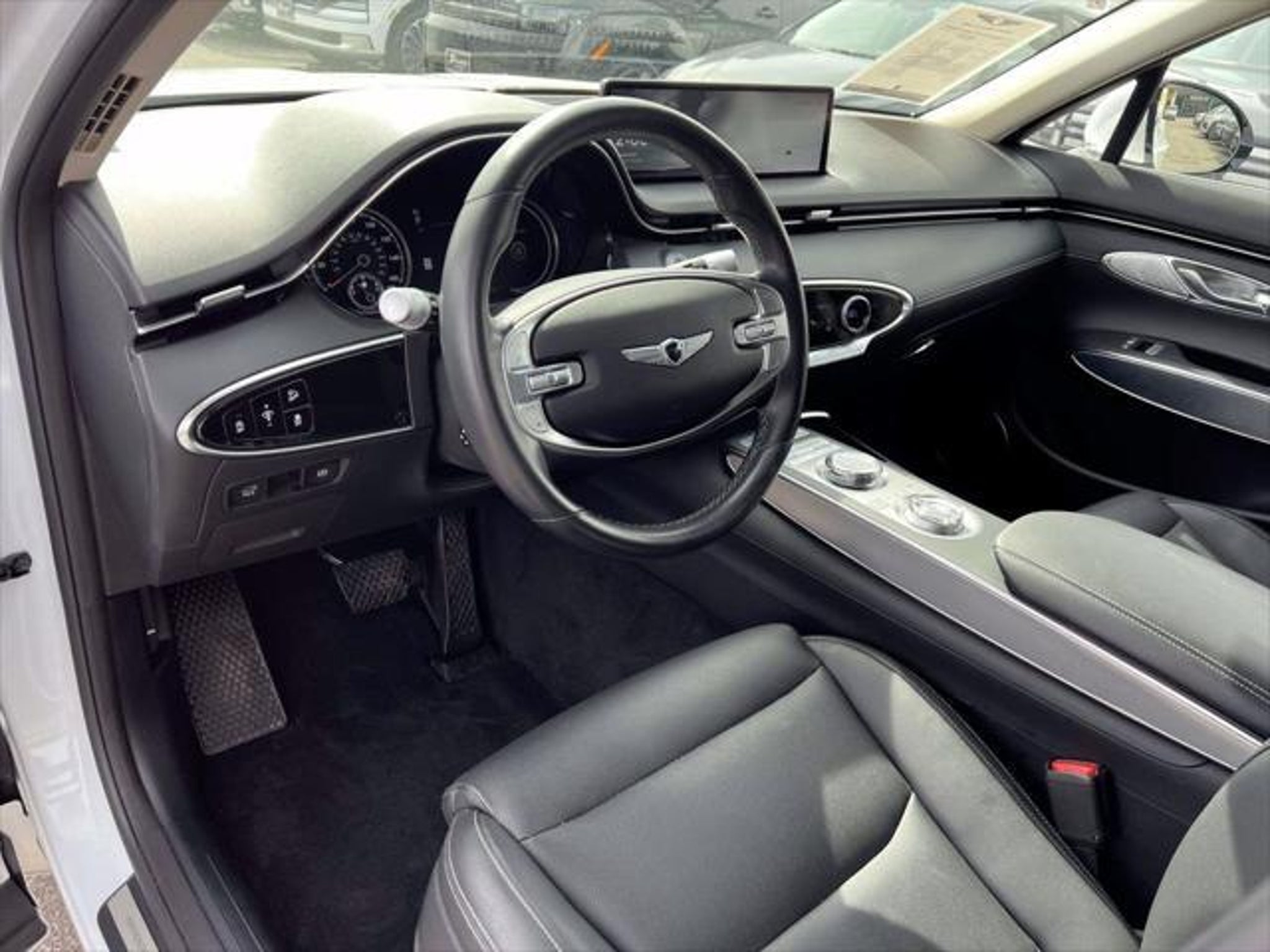 Leather Seats, ONE OWNER, 16-way Pwr Driver Seat w/Pwr Lumbar Support; Heated Front Seats, 19 Alloy Wheels, 4-Wheel Disc Brakes, 4.181 Axle Ratio, 8-Way Driver seat with Height Adjustment; Heated Front Seats, 9 Speakers, ABS brakes, Air Conditioning, Aluminum Trim w/Spin Brushed Pattern, AM/FM radio: SiriusXM, Android Auto & Apple CarPlay, Anti-whiplash front head restraints, Auto High-beam Headlights, Auto-dimming Rear-View mirror, Automatic temperature control, Bumpers: body-color, Cargo Net, Cruise Control, Delay-off headlights,Auto-Leveling Headlights,Dynamic Bending Light (DBL), Driver door bin, Driver vanity mirror, Dual front impact airbags, Dual front side impact airbags, Emergency communication system: Genesis Connected Services, Exterior Parking Camera Rear, Forward Collision Avoidance Assist, Four wheel independent suspension, Front anti-roll bar, Front Center Armrest w/Storage, Front dual zone A/C, Front reading lights, Fully automatic headlights, Garage door transmitter: HomeLink, Heated Front Bucket Seats, Heated Side Mirrors, Heated Steering Wheel, Illuminated entry, Integrated Memory System (IMS), Intergrated Memory Seat for Driver Seat, Knee airbag, Lane Keeping Assist & Driver Attention Warning, Leatherette Seating Surfaces, Low tire pressure warning, Navigation System With 8' display, Occupant sensing airbag, Option Group 02, Outside temperature display, Overhead airbag, Overhead console, Panic alarm, Passenger door bin, Passenger vanity mirror, Passenger Walk-In Device, Power door mirrors, Power Folding ECM Mirrors w/Genesis Logo Lamp, Power Liftgate, Power passenger seat, Power steering, Power Telescoping Steering Wheel, Power Tilt & Slide Panoramic Sunroof, Power windows, Radio: 14.5 Navigation System w/AM/FM/HD Radio, Rain sensing wipers, Rear anti-roll bar, Rear Parking Sensors, Rear reading lights, Rear seat center armrest, Rear window defroster, Rear window wiper, Remote keyless entry, Reversible Cargo Tray, Security system, Select Package, Speed-sensing steering, Speed-Sensitive Wipers, Split folding rear seat, Spoiler, Steering wheel mounted audio controls, Tachometer, Telescoping steering wheel, Traction control, Trip computer, Turn signal indicator mirrors, Variably intermittent wipers. Certified. AWD 8-Speed Automatic with SHIFTRONIC 2.5L DOHC Odometer is 12459 miles below market average! White 2024 Genesis GV70 2.5T Select Package Subject to the primary lender's approval. All prices exclude tax, title, dealer fee of $695, tags, license & DMV. Vehicles are sold cosmetically as is. Not all cars are certified where as many do pass the certification process, the customer does have the right to add an optional extended service agreement.