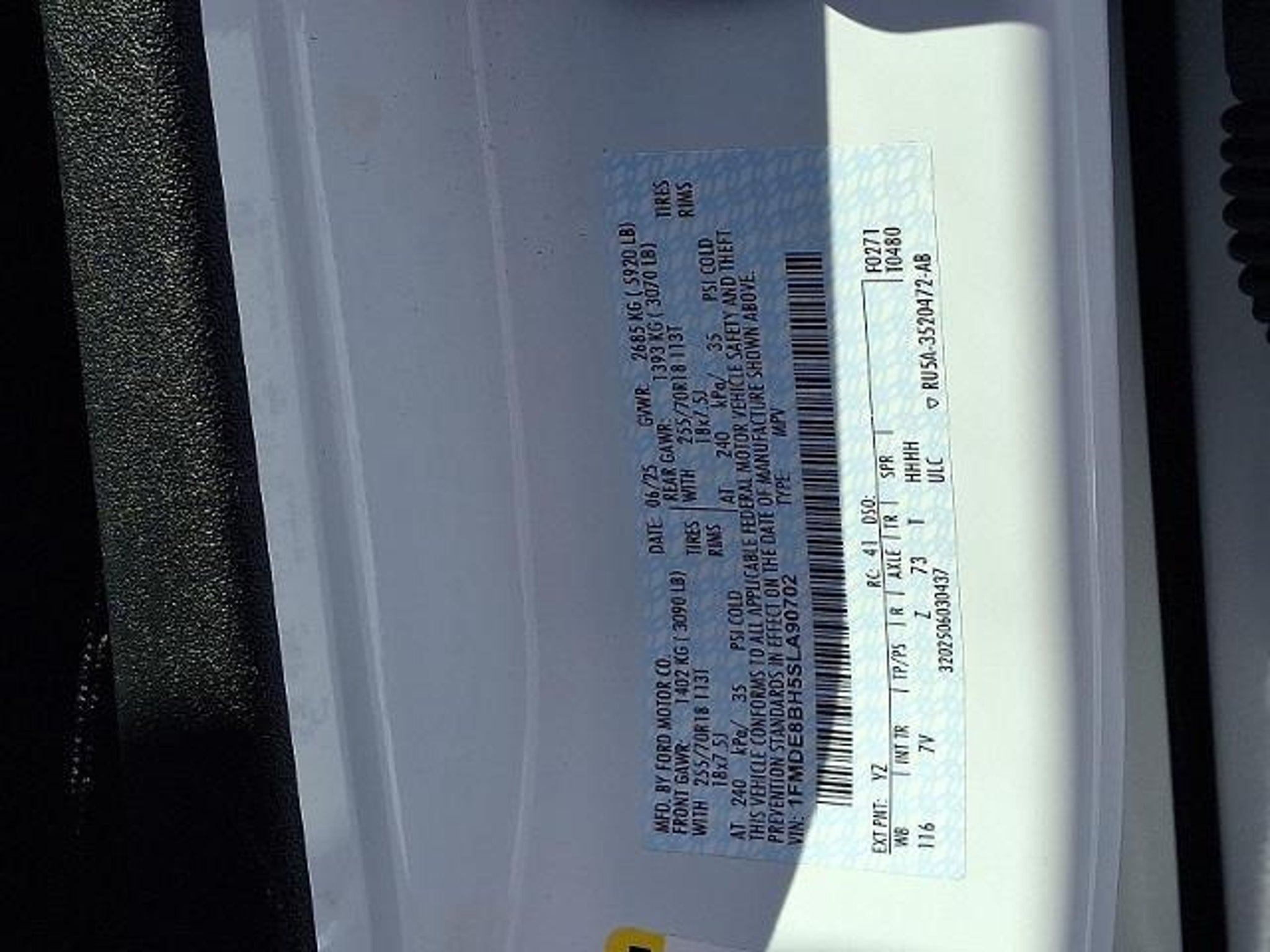 VIN 1FMDE8BH5SLA90702