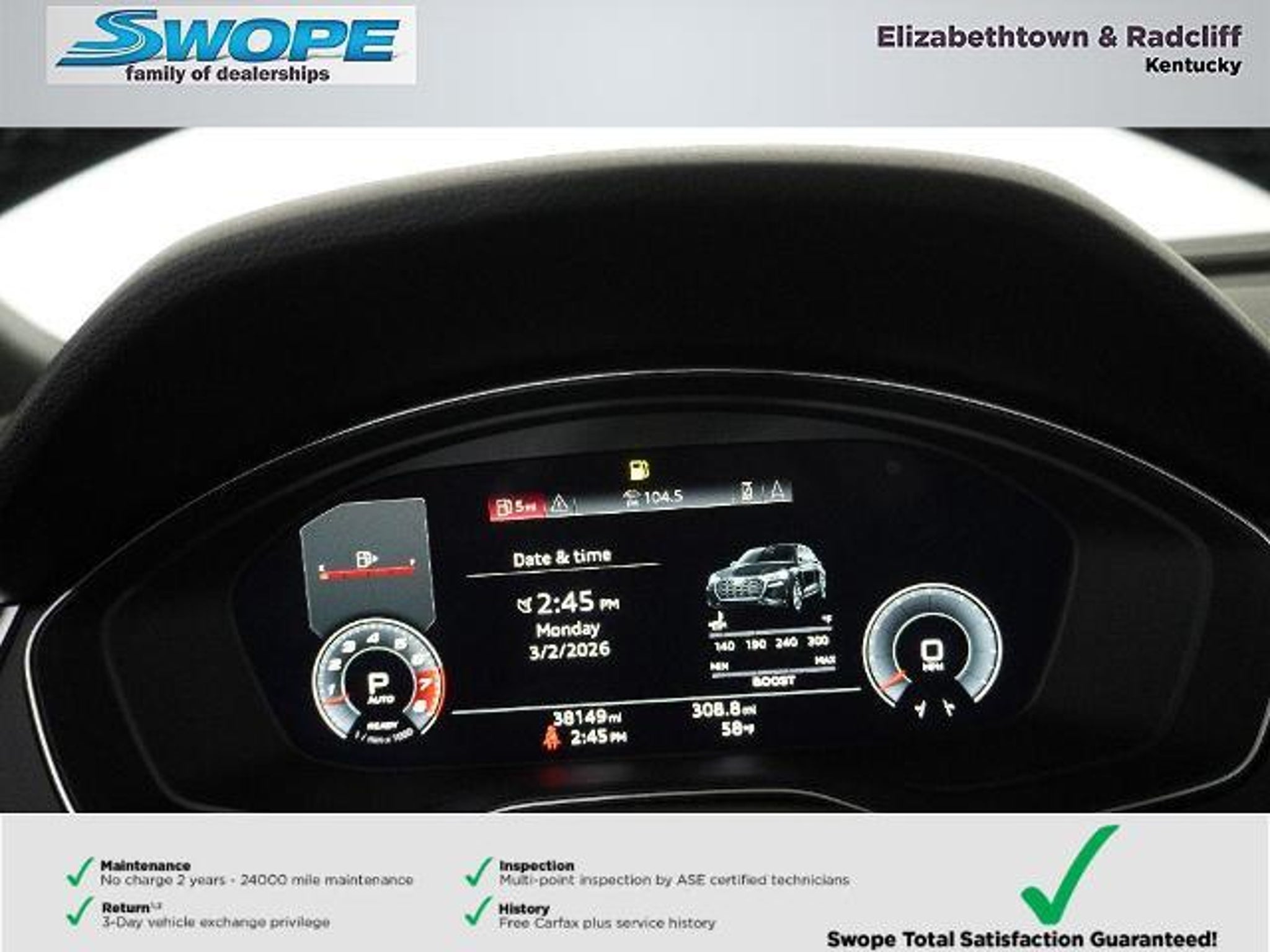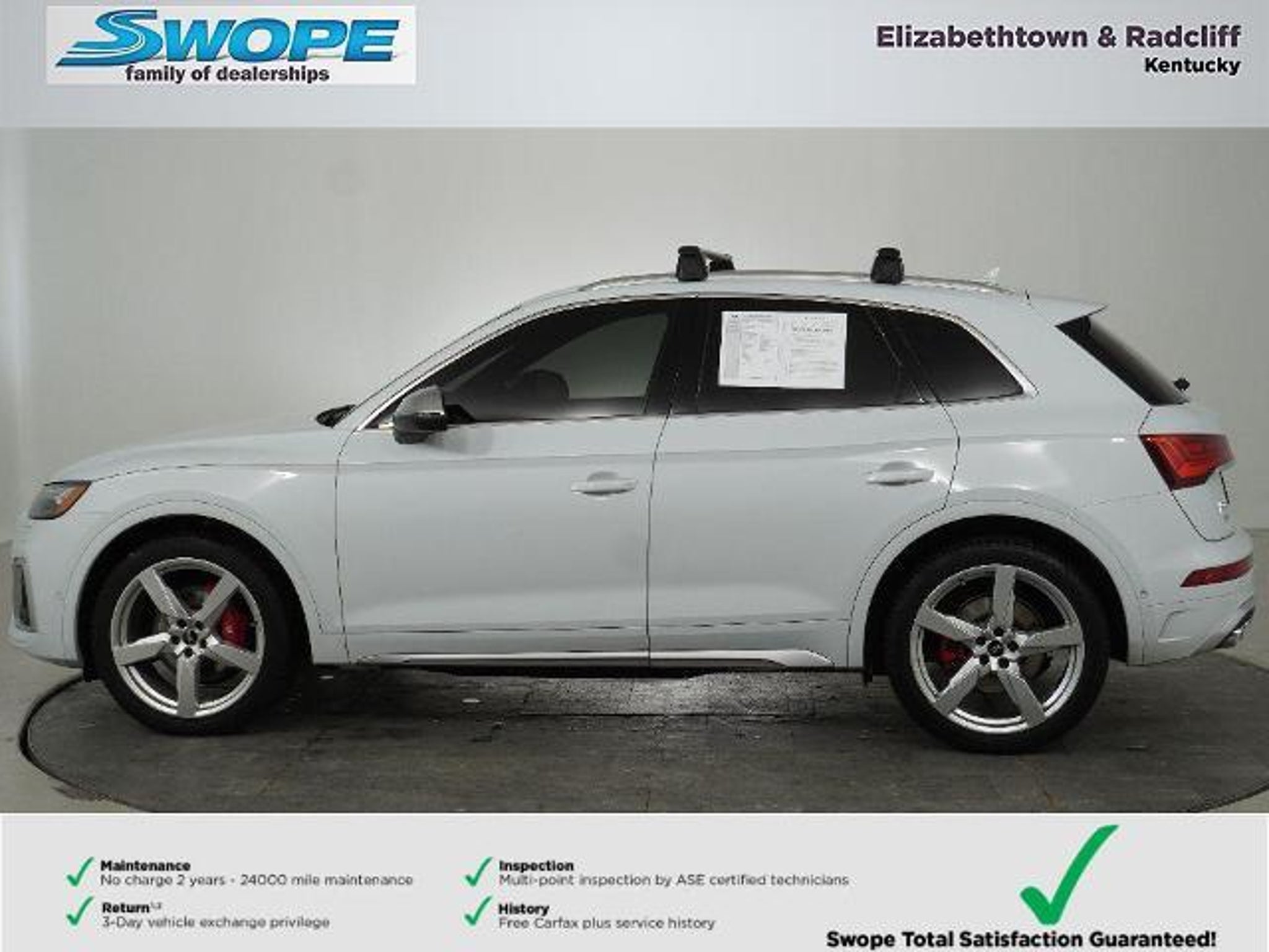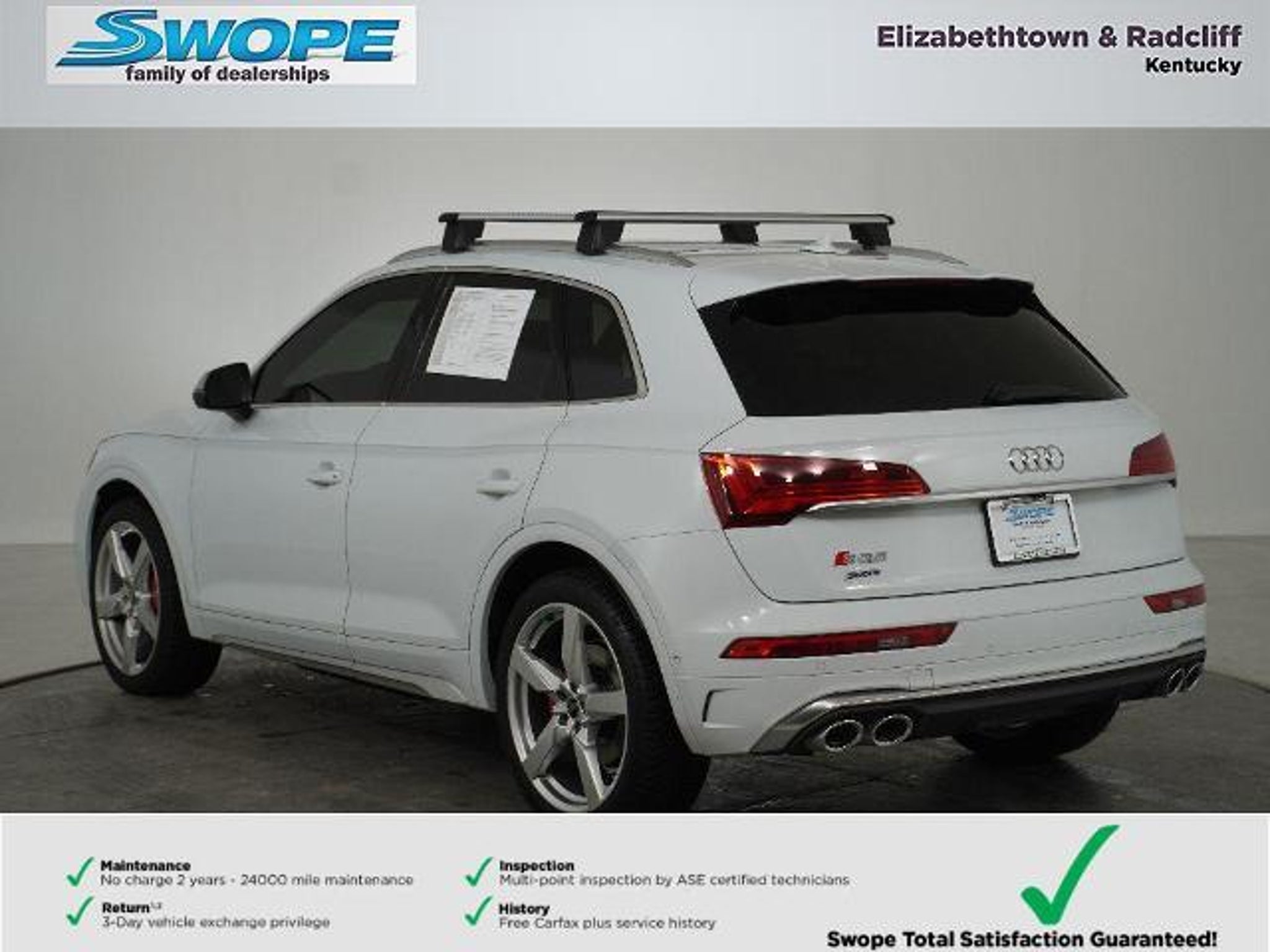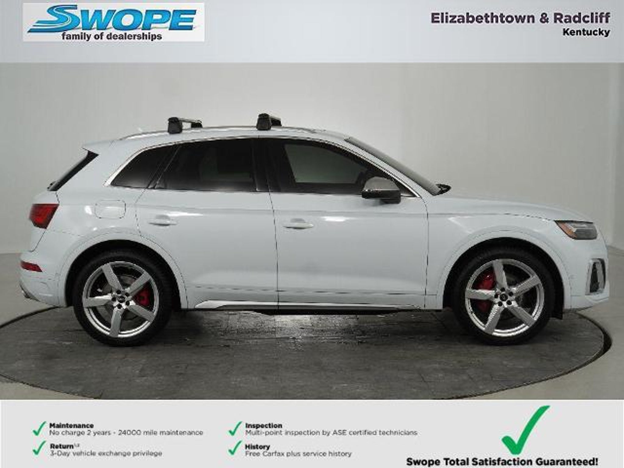 Details > 2021 Audi SQ5 AWD 3.0T Quattro Prestige 4DR SUV For Sale in Elizabethtown, KY Private Party Sellers Click here to place your ad now! You auta tell them you saw the ad in AutaBuy when you call or email. 1/32 2/32 3/32 4/32 5/32 6/32 7/32 8/32 9/32 10/32 11/32 12/32 13/32 14/32 15/32 16/32 17/32 18/32 19/32 20/32 21/32 22/32 23/32 24/32 25/32 26/32 27/32 28/32 29/32 30/32 31/32 32/32 View 32 Photos View All Add to My Garage Parked in Your Garage! Bob Swope Ford, Inc. Contact Seller: I would like to: Make Offer Check Availability Ask A Question Request More Photos Check Financing Options Send a copy of this message to me Add this listing to my garage Send to Mobile Mileage 38,149 Exterior Color Glacier White Metallic Interior Color Black Doors 4 Engine 3.0L V6 Transmission 8 Speed Auto Stock # F25851690A VIN WA1C4AFY8M2075876 Estimated Monthly Payment $644 mo Apply Now J.J. Best Banc & Co. 2021 Audi SQ5 AWD 3.0T Quattro Prestige 4DR SUV Description: · Mileage: 38,149 · Color: Glacier White Metallic Price: $37,000. Mileage 38,149 Exterior Color Glacier White Metallic Interior Color Black Doors 4 Engine 3.0L V6 Transmission 8 Speed Auto Stock # F25851690A VIN WA1C4AFY8M2075876 Estimated Monthly Payment $644 mo Apply Now J.J. Best Banc & Co. Add to My Garage Parked in Your Garage! Message Seller Bob Swope Ford, Inc. Contact Seller: I would like to: Make Offer Check Availability Ask A Question Request More Photos Check Financing Options Send a copy of this message to me Add this listing to my garage Offered for sale by Bob Swope Ford, Inc. ELIZABETHTOWN, KY Price: $37,000. Offered for sale by Bob Swope Ford, Inc. ELIZABETHTOWN, KY [entire inventory] Ask Auta Intelligence The first collector-car AI built directly into a classic car marketplace What kind of mileage do these get? What transmission options did these offer? What factory options were available on this model? How many SQ5s were produced in White? How many passengers can this seat comfortably? Can you show me more imports for a similar price? What colors did these come in? How easy are parts to find for this model? What safety features does this model offer? Tell me the history on this model How many of these were produced? What does this VIN number tell me? What engine options did these come with? Where is this located? How far is this from me? What trim levels were available for this model? When was this model first introduced? Do you have a similar car to sell? List It Now! Questions about this car? Ask Auta Intelligence for production numbers, available options, etc. · Subscribe to AutaBuy! · Send a Gift Subscription Notice to a Friend
