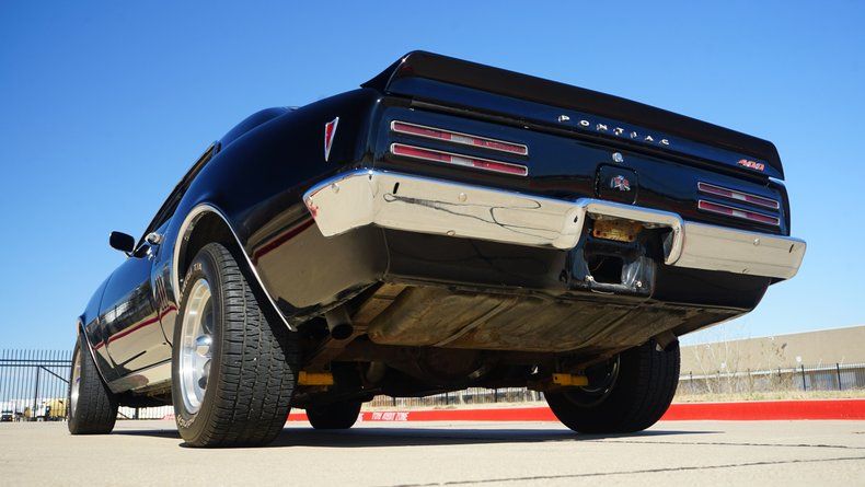 The black-on-black combination enhances the car's long hood, short deck proportions and iconic first-generation styling. Inside, bucket seats and center console maintain the sporty cockpit feel Pontiac intended when these cars first hit the streets.