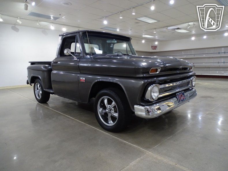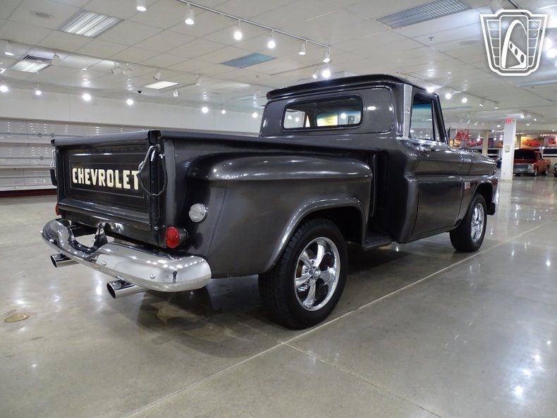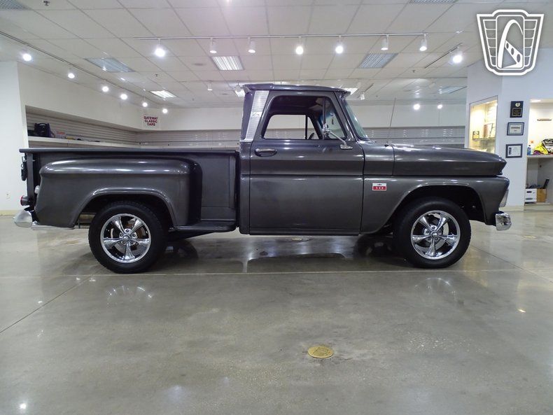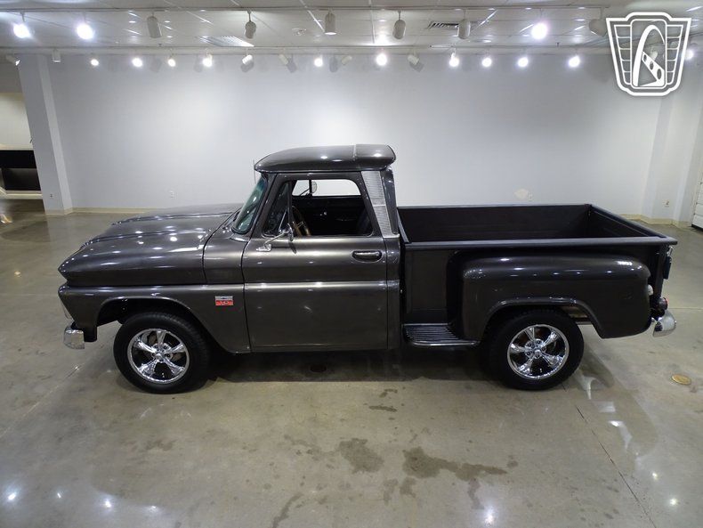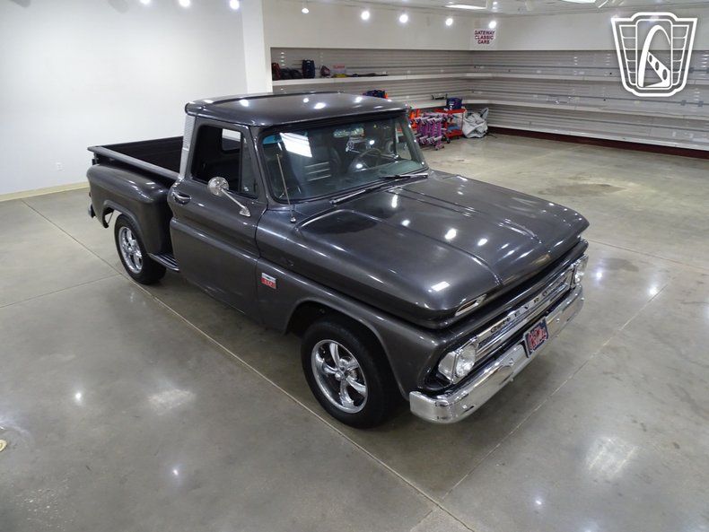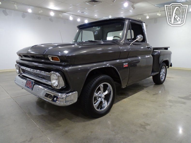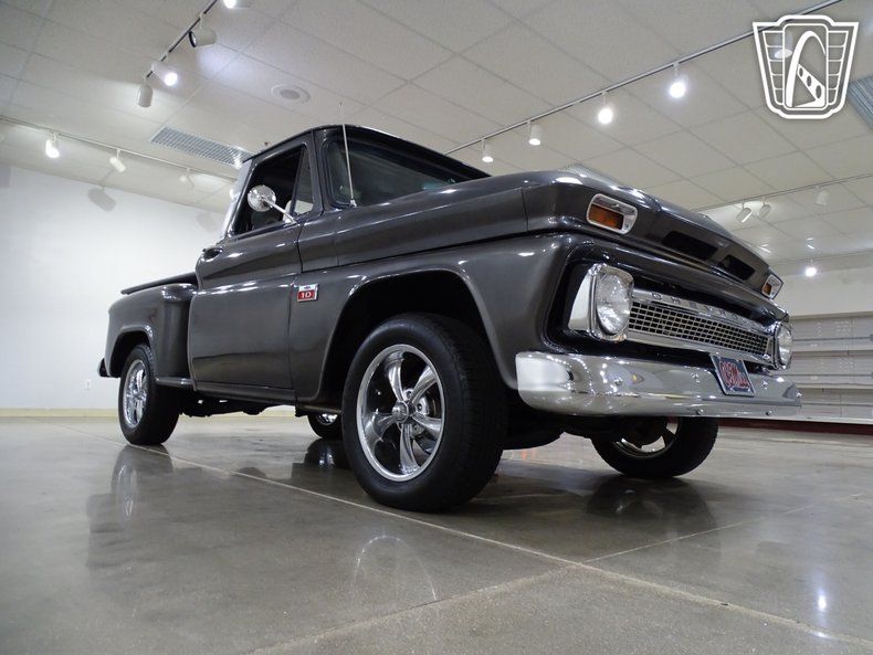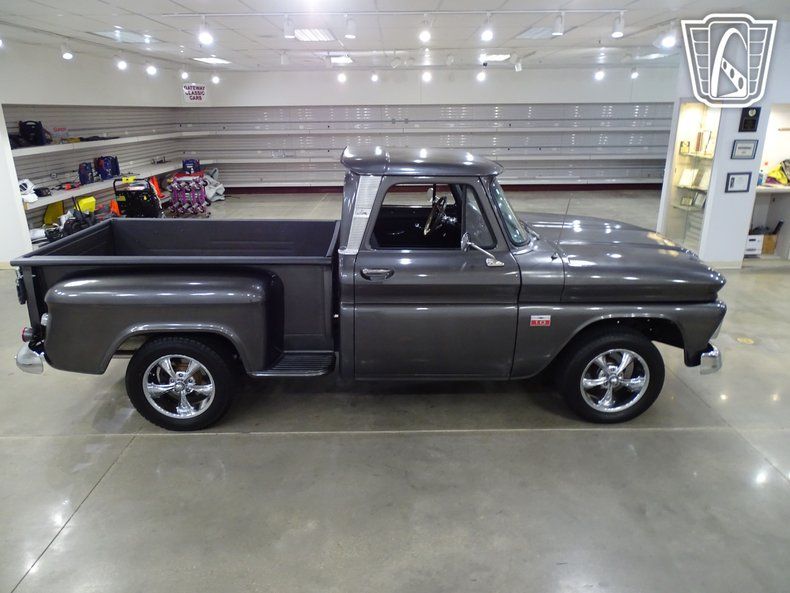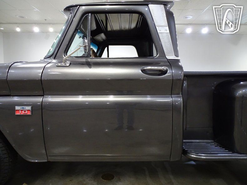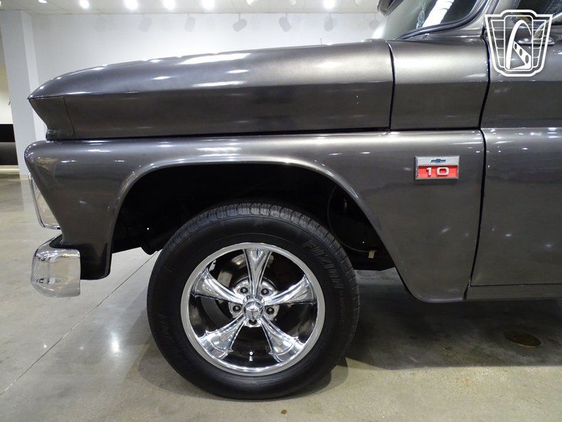 Step into timeless style and classic American craftsmanship with this stunning 1966 Chevrolet C10. Dressed in a sleek and sophisticated grey exterior, this truck exudes a commanding presence that turns heads wherever it goes. Open the door and slide into the luxurious black leather interior, where comfort meets vintage charm. The combination of modern amenities and retro appeal creates an atmosphere that invites you to settle in and enjoy the ride.