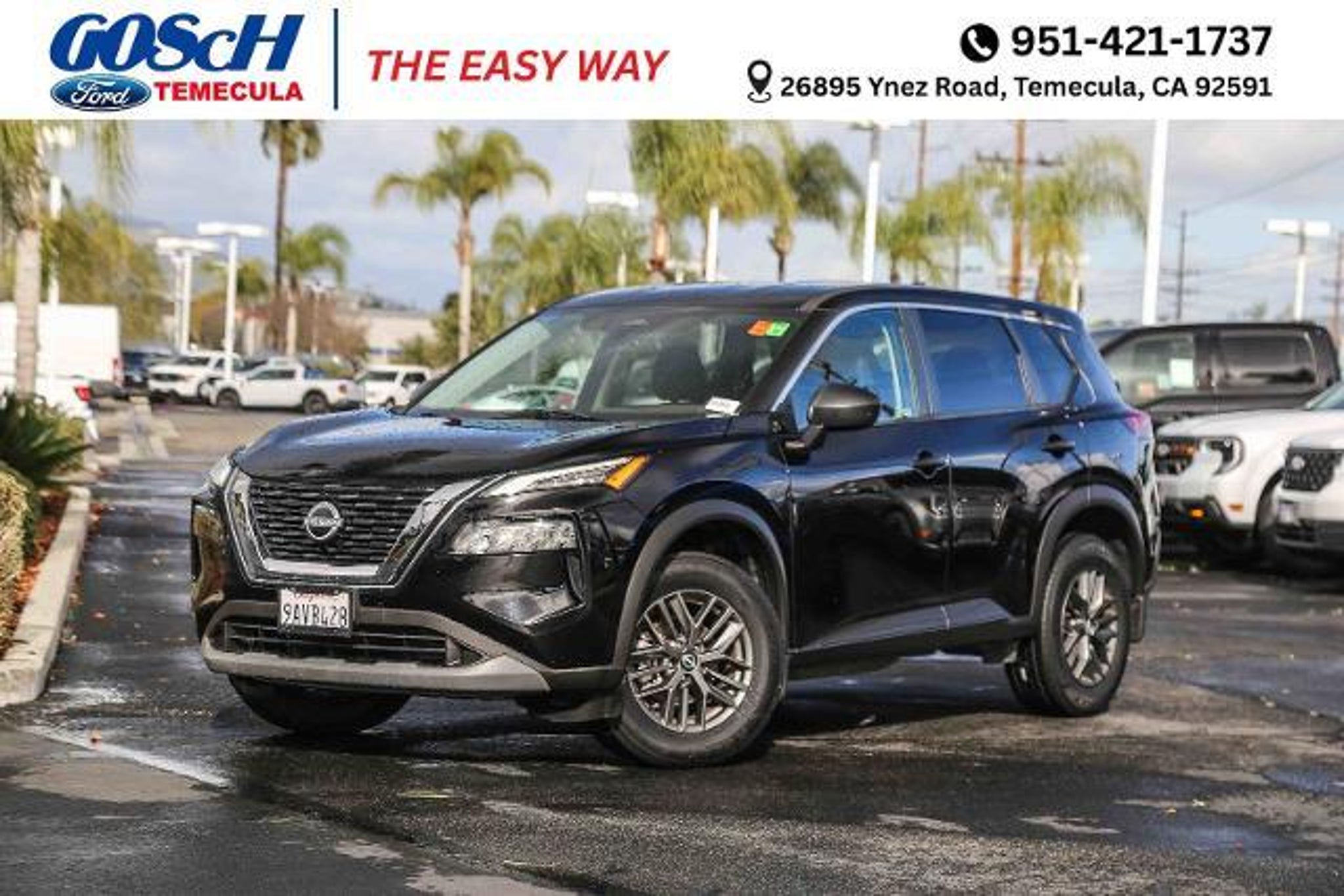 The 2022 Nissan Rogue S is a versatile and well-equipped compact SUV that offers an exceptional value proposition. With its sleek exterior design, spacious interior, and advanced technology features, this Rogue is the perfect choice for those seeking a practical and stylish vehicle to enhance their daily driving experience. - Floor Mats w/1-Piece Cargo Area Protector - Black Splash Guards (Set of 4) - First Aid Kit Powered by a 1.5L I3 Turbocharged engine, the 2022 Rogue S delivers an impressive 201 horsepower, ensuring a responsive and engaging driving dynamics. Paired with the efficient CVT with Xtronic transmission, this SUV boasts an exceptional fuel economy of 30 MPG in the city and 37 MPG on the highway, making it an economical choice for your commute or weekend adventures. The Rogue S is equipped with a wealth of advanced safety features, including Blind Spot Warning, Rear Parking Sensors, and Electronic Stability Control, providing you with the confidence and peace of mind you deserve on the road. The roomy and well-appointed cabin offers ample space for passengers and cargo, with a split-folding rear seat and a host of convenient amenities, such as NissanConnect with Apple CarPlay and Android Auto integration. Discover the perfect balance of style, performance, and practicality in the 2022 Nissan Rogue S. This compact SUV is the ideal companion for your active lifestyle, whether you're navigating the city streets or embarking on a weekend getaway. Visit our showroom today and experience the exceptional value and versatility of this remarkable vehicle. Gosch Ford Temecula, located in Temecula, CA, is proud to be one of the premier dealerships in the area. From the moment you walk into our showroom, you'll know our commitment to Customer Service is second to none. We strive to make your experience with Gosch Ford Temecula a good one for the life of your vehicle. Whether you need to Purchase, Finance, or Service a New or Pre-Owned Ford, you've come to the right place.