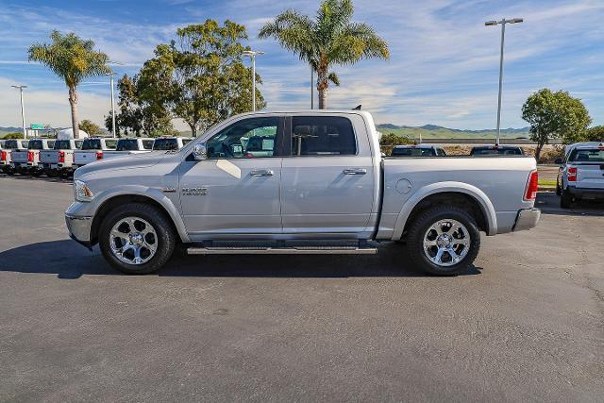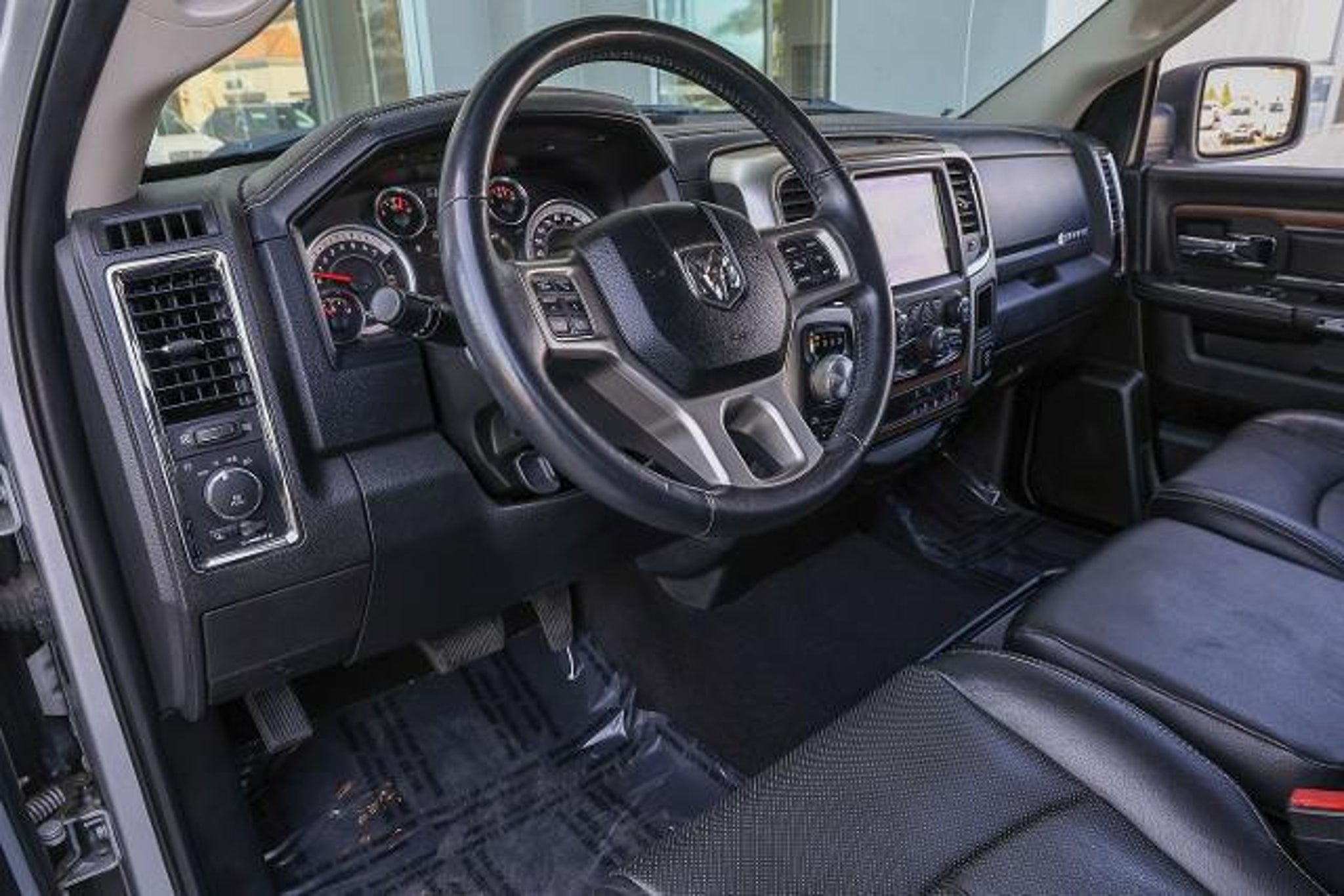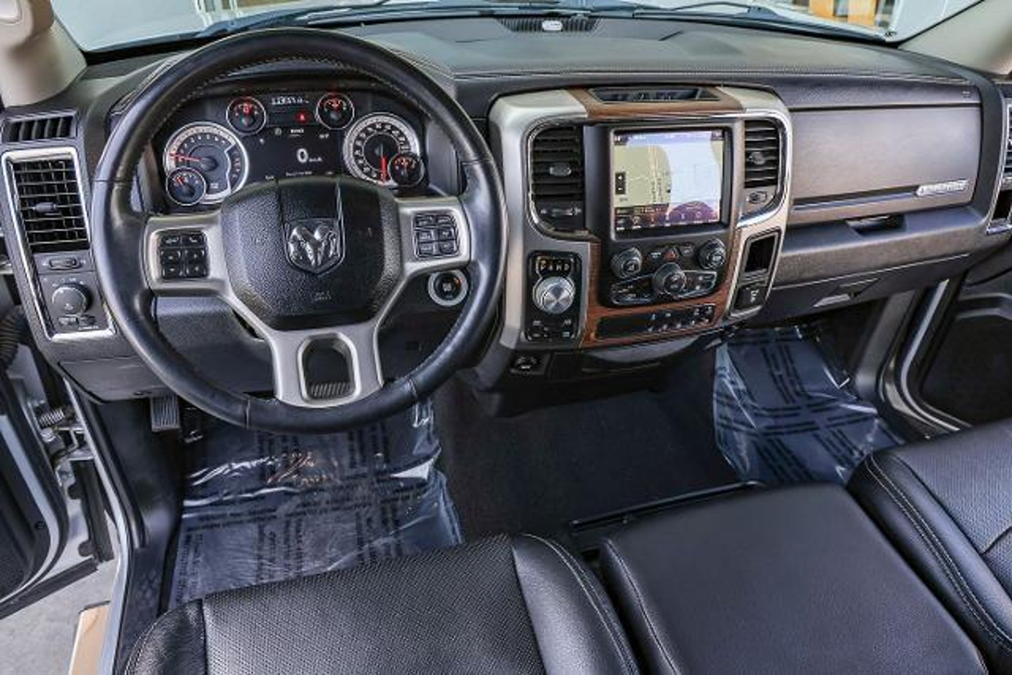 All of our Pre-Owned vehicles are subject to a 100 point inspection to ensure safety and reliability. 1-Yr SiriusXM Guardian Trial, 115V Auxiliary Power Outlet, 20 x 9 Chrome Clad Aluminum Wheels, 3.21 Rear Axle Ratio, 4-Wheel Disc Brakes, 5-Year SiriusXM Traffic Service, 5-Year SiriusXM Travel Link Service, 6 Speakers, 8.4 Touchscreen Display, 9 Alpine Speakers w/Subwoofer (DISC), ABS brakes, Active Grille Shutters, Adjustable pedals, Air Conditioning, Alloy wheels, AM/FM radio: SiriusXM, Anti-Spin Differential Rear Axle, Apple CarPlay, Apple CarPlay/Android Auto, Audio Jack Input for Mobile Devices, Audio memory, Auto High Beam Headlamp Control, Auto-dimming door mirrors, Auto-dimming Rear-View mirror, Automatic temperature control, Brake assist, Bumpers: chrome, Center Hub, Compass, Convenience Group, Delay-off headlights, Driver door bin, Driver vanity mirror, Dual front impact airbags, Dual front side impact airbags, Electronic Shift, Electronic Stability Control, Emergency communication system: SiriusXM Guardian, Folding Flat Load Floor Storage, Front anti-roll bar, Front Center Armrest w/Storage, Front dual zone A/C, Front fog lights, Front reading lights, Front wheel independent suspension, Fully automatic headlights, Garage door transmitter, Google Android Auto, GPS Antenna Input, GPS Navigation, HD Radio, Heated door mirrors, Heated Front Seats, Heated front seats, Heated steering wheel, High Back Seats, Illuminated entry, Integrated Voice Command w/Bluetooth, Keyless Enter-N-Go, Leather steering wheel, Leather Trim 40/20/40 Bench Seat, Low tire pressure warning, Manufacturer's Statement of Origin, Media Hub (2 USB, AUX), Memory seat, Occupant sensing airbag, Outside temperature display, Overhead airbag, Overhead console, Panic alarm, ParkSense Front/Rear Park Assist System, ParkView Rear Back-Up Camera, Passenger door bin, Passenger vanity mirror, Pedal memory, Power 10-Way Memory Driver & 6-Way Passenger Seats, Power door mirrors, Power driver seat, Power passenger seat, Power steering, Power windows, Quick Order Package 26H Laramie (DISC), Radio data system, Radio: Uconnect 4C Nav w/8.4 Display, Radio: Uconnect 4C w/8.4 Display, Rain Sensitive Windshield Wipers, Rear 60/40 Split Folding Seat, Rear anti-roll bar, Rear seat center armrest, Rear step bumper, Rear Window Defroster, Remote keyless entry, Remote Proximity Keyless Entry, Remote Start System, Remote USB Port, Security system, SiriusXM Satellite Radio, SiriusXM Traffic Plus, SiriusXM Travel Link, Speed control, Split folding rear sea