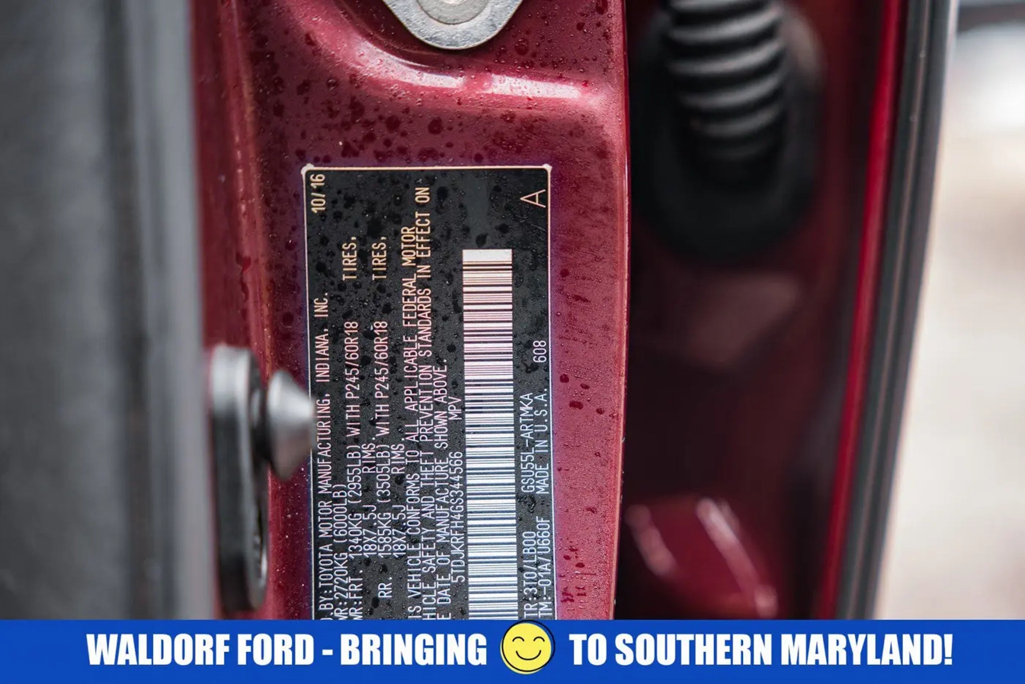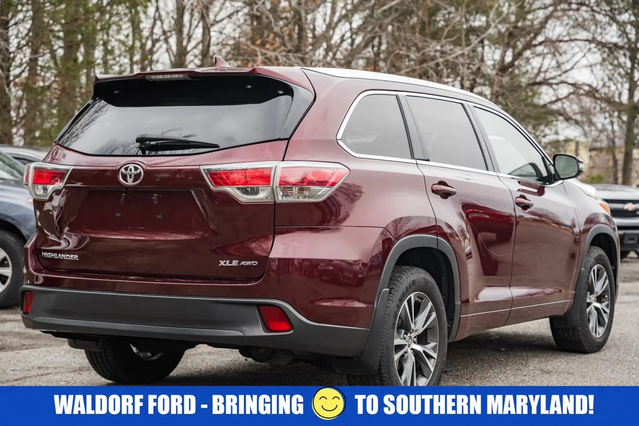 2016 Toyota Highlander XLE V6 AWD. Ooh La La Rouge MicaOpen your door to the world of adventures with the sleek Ooh La La Rouge Mica 2016 Toyota Highlander. The Automatic 3.5L V6 DOHC Dual VVT-i 24V is built for the long haul, and packed with features such as, AWD. If you think the pictures look pretty just wait until you see it in your driveway! This Highlander is big enough to fit everything you need for your day, plus whatever else life throws at you.Waldorf Ford in Waldorf, MD has the DC Metro Areas best value Pre Owned Used Cars, SUV's and Trucks! Call us at (240) 427-1373 or email us now and lock in the special E-Price on your next vehicle! Waldorf Ford has been a leading provider of great deals and phenomenal prices for customers in the DC Metro Area for over 25 years. Our Waldorf Ford Dealer specializes in new and pre-owned Ford vehicles, Ford Motor Credit Finance, Ford Service, and Ford parts. Our knowledgeable Ford Sales and Ford Service staff has been trained and certified by Ford to provide amazing customer service. Since Waldorf Ford has been selling and servicing Maryland, Virginia and DC for such a long time, our experience is second to none! Ever since 1995! Just check out our reviews online! Waldorf Ford offers Video Walkaround, Test Drive, Online Paperwork, Delivery and many more services for our customers. Waldorf Ford proudly serves the Washington DC Metro Area, Fairfax, Alexandria, Falls Church, Bethesda, Rockville, Centreville, Manassas, Haymarket, Gainesville, Vienna, Suitland, La Plata, Leonardtown, Prince Frederick, Lexington Park, Upper Marlboro. ALL of Charles County, Calvert County and St. Marys County.