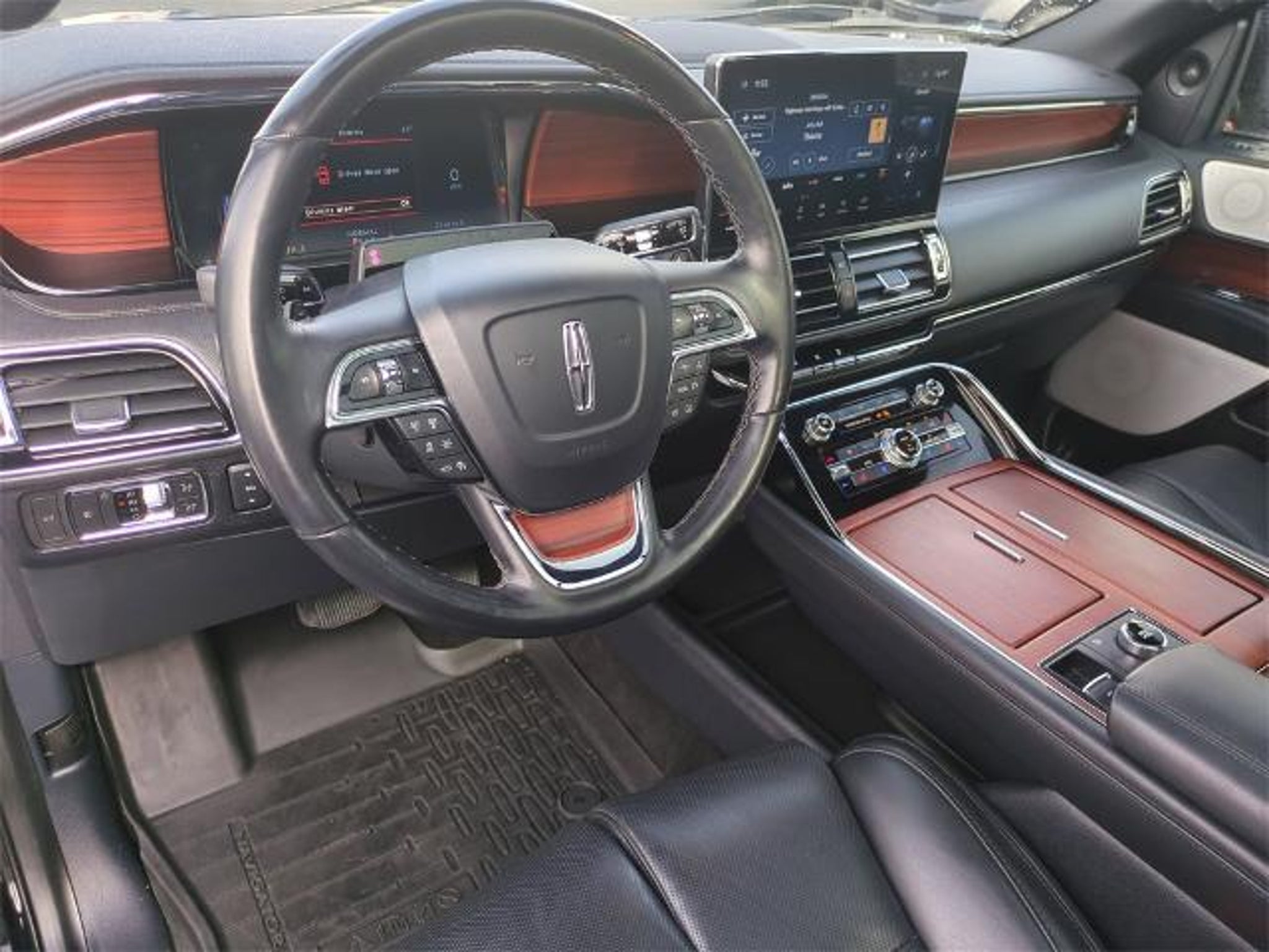 2022 Lincoln Navigator Reserve 4WD V6 10-Speed Automatic Body-Color Exterior Mirror Finish, Equipment Group 201A Reserve I, Luxury Package, Monochromatic Lincoln Badge, Monochromatic Lincoln Grille, Monochromatic Package, Wheels: 22 Black Aluminum. Check out all these great options! Equipment Group 201A Reserve I, Luxury Package, Monochromatic Package (Body-Color Exterior Mirror Finish, Monochromatic Lincoln Badge, Monochromatic Lincoln Grille, and Wheels: 22 Black Aluminum), 14 Speakers, 3.73 Axle Ratio, 3rd row seats: split-bench, 4-Wheel Disc Brakes, ABS brakes, Adaptive suspension, Adjustable pedals, Air Conditioning, Alloy wheels, AM/FM radio: SiriusXM with 360L, Audio memory, Auto High-beam Headlights, Auto Start-Stop Technology, Auto tilt-away steering wheel, Auto-dimming door mirrors, Auto-dimming Rear-View mirror, Auto-leveling suspension, Automatic temperature control, Bodyside moldings, Brake assist, Bumpers: body-color, Compass, Delay-off headlights, Driver door bin, Driver vanity mirror, Driver's Seat Mounted Armrest, Dual front impact airbags, Dual front side impact airbags, Electronic Stability Control, Emergency communication system: 911 Assist, Exterior Parking Camera Rear, Four wheel independent suspension, Front anti-roll bar, Front Bucket Seats, Front dual zone A/C, Front fog lights, Front reading lights, Fully automatic headlights, Garage door transmitter, Genuine wood dashboard insert, Genuine wood door panel insert, Head restraints memory, Heads-Up Display, Heated door mirrors, Heated front seats, Heated rear seats, Heated steering wheel, HVAC memory, Illuminated entry, Leather steering wheel, Low tire pressure warning, Memory seat, Navigation system: Connected Navigation (3-year trial), Occupant sensing airbag, Outside temperature display, Overhead airbag, Overhead console, Panic alarm, Passenger door bin, Passenger seat mounted armrest, Passenger vanity mirror, Pedal memory, Power adjustable rear head restraints, Power door mirrors, Power driver seat, Power Liftgate, Power moonroof: Panoramic Vista Roof, Power passenger seat, Power steering, Power windows, Prem Lthr Auto Htd/Ventiltd Perfect Position Seats, Radio data system, Radio: Revel AM/FM/HD/MP3 Audio System, Rain sensing wipers, Rear air conditioning, Rear anti-roll bar, Rear audio controls, Rear reading lights, Rear window defroster, Rear window wiper, Reclining 3rd row seat, Remote keyless entry, Security system, SiriusXM w/360L, Speed control, Speed-sensing steering, Speed-Sensitive Wipers, Split folding rear seat, Spoil