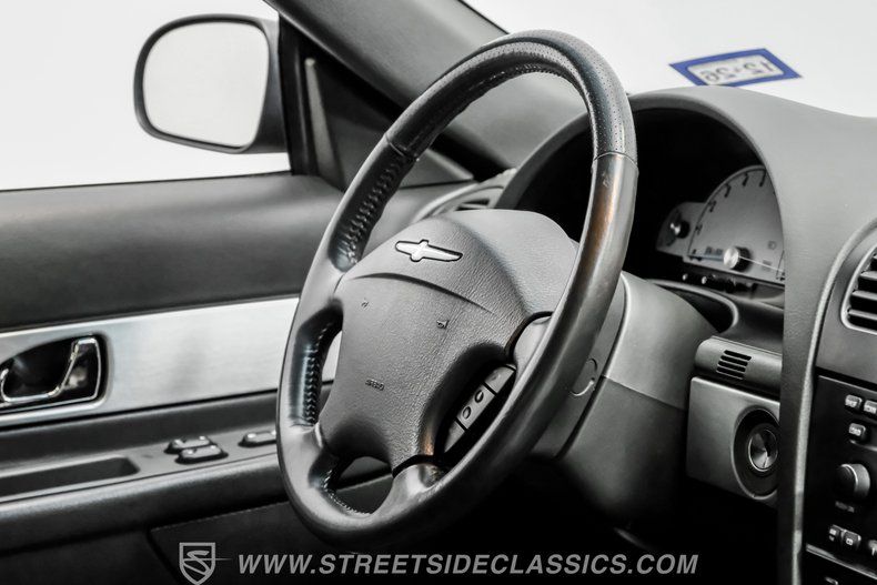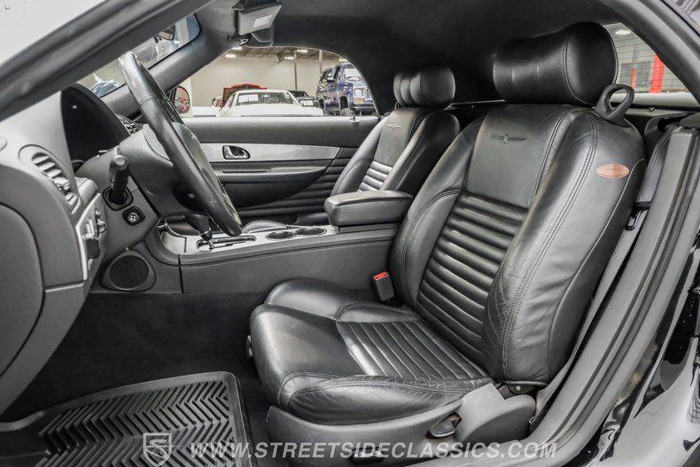 This generation Thunderbird, finished elegantly in Evening Black with a Midnight Black interior, features automatic A/C climate control and heated seats, allowing you to drive comfortably with the top down nearly all year round. This car was created to be a terrific cruiser loaded with power windows, power locks, keyless entry/alarm, dual front airbags, a premium AM/FM/6-CD changer stereo and cruise control. The leather seats feel comfy and have a well-respected style with the kind of use that goes with the low mileage. The power driver's seat gets you in the right position to really see nice details such as the steering wheel's classic turquoise streak in the Thunderbird logo that is coordinated with the needles on the gauges.