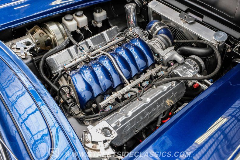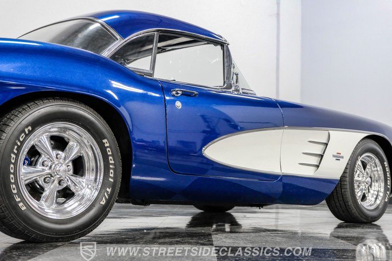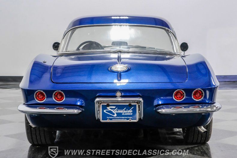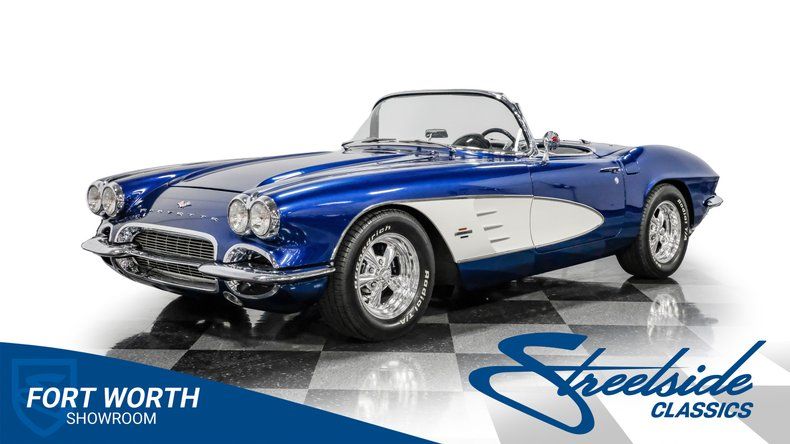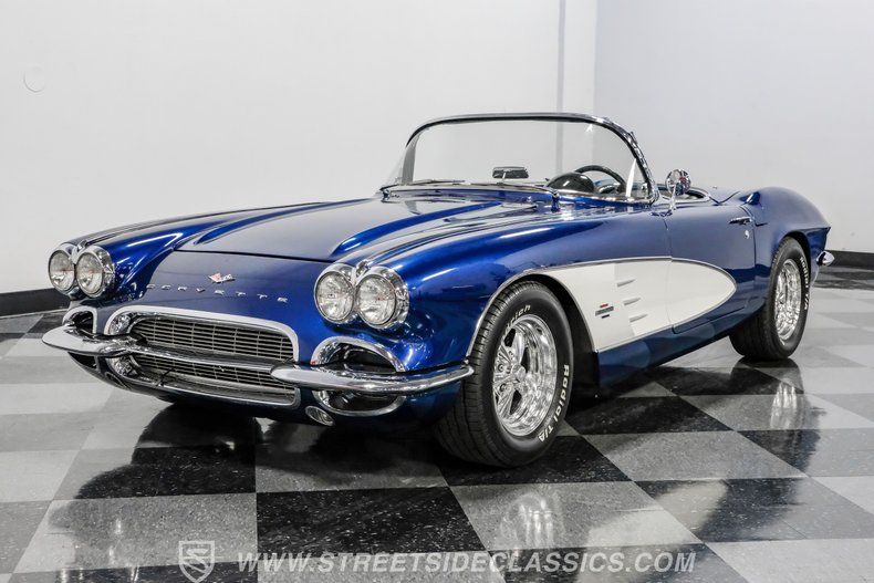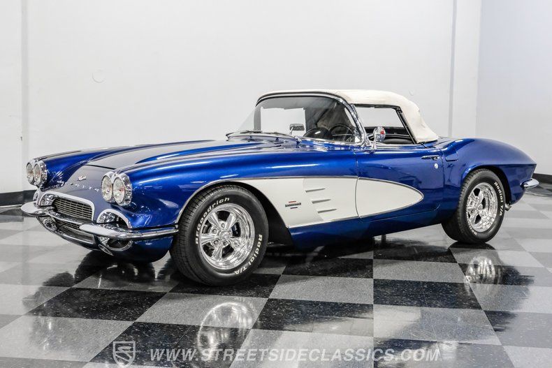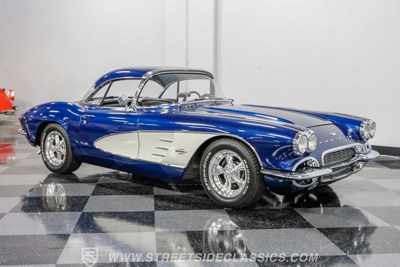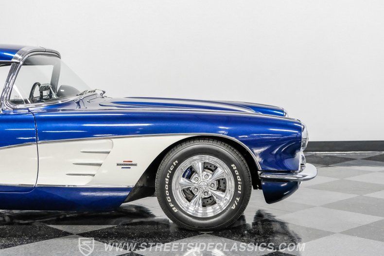 Throughout the Corvette's eight generations, each one has its own special years and models. For the first generation, beyond its inaugural year, it can be argued that this 1961 Chevrolet Corvette Restomod represents the most visually impactful year in this sports car's history. Decked out in this spectacular Lemans Blue with white coves, complete with a body-color removable fiberglass hardtop and a complementing white vinyl soft top, the polished five-spoke 15-inch Billet Specialty wheels give this car a stance unlike most other classics. This year, Corvette can be identified by its three-louver side vent moldings, and most notably, 1961 is the first year Chevy gave its halo car its now-signature quad taillight setup.