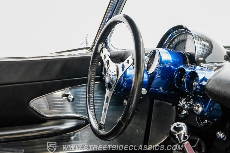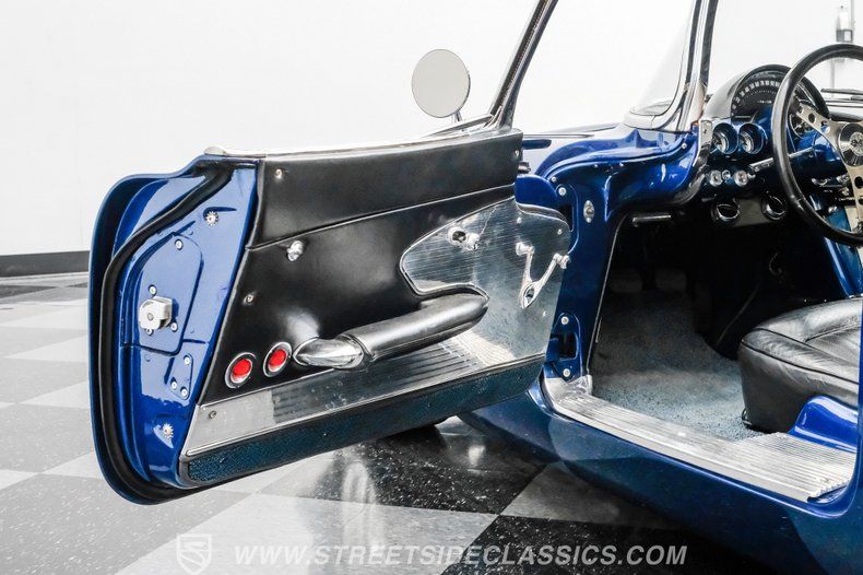 This 1961 Chevrolet Corvette Restomod rides on an aftermarket suspension featuring a full front swap with tubular A-arms and rack-and-pinion steering. Wilwood power disc, highlighted by cross-drilled and slotted rotors at all four corners, stands ready to scrub off speed far better than anything made in 1961. If you've been looking for a Corvette with historical significance, but a reliable modern powertrain that only has about 1,200 miles on it, then it's going to be hard to beat this stunning Lemans Blue 1961 'Vette. Don't wait, call today!