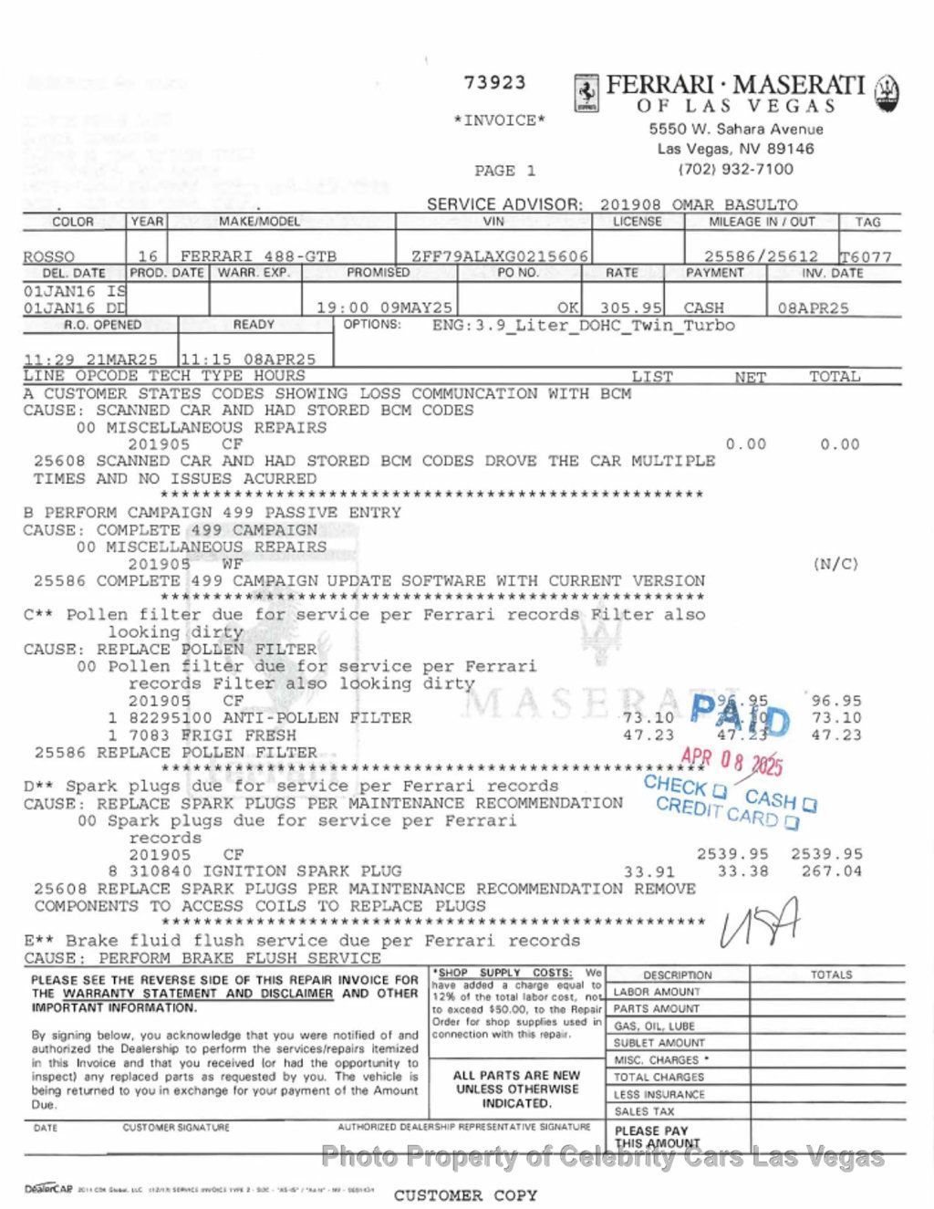 2016 Ferrari 488 GTB Celebrity Cars is pleased to offer this 2016 Ferrari 488 GTB. This example was privately owned by a good customer of Celebrity Cars and runs and drives exactly as a Ferrari should. Finished in iconic Rosso Scuderia over Nero leather, this 488 GTB features a desirable Atelier specification and a well-optioned factory build. It is powered by Ferrari's twin-turbocharged 3.9L V8 paired with a lightning-fast dual-clutch transmission, delivering blistering performance and everyday usability. This car presents very well and has clearly been cared for throughout its life. Factory Options Include: Adaptive Frontlight System Atelier Car / Atelier New York specification Rosso brake calipers Carbon fiber steering wheel with LEDs Electric seats Suspension lifter Scuderia Ferrari fender shields White rev counter Special stitching in Rosso Cavallino stitched headrests 20 forged dark-painted wheels Parking camera It has a Clean CARFAX showing no accidents or damage reported and a documented service history with 14 service records and recent maintenance completed. Recent service highlights include oil services, brake fluid service, and major maintenance performed in Las Vegas. This Ferrari is a non-smoking vehicle and has always been garage kept. We welcome pre-purchase inspections as well as video chats with the car. * PLEASE be sure to watch our VIDEO for a more in-depth look. A link to the FREE full CARFAX report can be found on our website listing for the vehicle. We can facilitate shipping anywhere, and extended warranties may be available. Please check with your local DMV regarding registration requirements before purchasing. We are not responsible for registration, and it is not included in the sale. Please call us with any questions or to go over financing options. VIDEO Watch Video Video will open in a new window Using the eBay App? Paste link into a browser window: .ytvideo * box-sizing:border-box; .ytvideo margin:.5em auto 40px auto; max-width:480px; font-family:arial; text-align:center; position:relative; min-height:120px; background-color:#555; .ytvideo p position:absolute; margin:0; color:white; background-color:rgba(0,0,0,.5); .ytvideo .yt_hd font-size:16px; width:100%; height:28px; padding-top:6px; text-align:left; top:0; left:0; padding-left:10px; overflow:hidden; .ytvideo .yt_ft font-size:12px; width:100%; bottom:0; left:0; .ytvideo img display:block; max-width:100%; border:0; .ytvideo a:after content:A025BA; position:absolute; width:60px; height:40px; left:0; top:0; right:0; bottom:0; margin:auto; border:0; border-radius:10px; color:white; background:rgba(0,0,0,.6); font-size:24px; padding-top:11px; cursor:pointer; .ytvideo a:hover:after background:#CC181E; .ytvideo .yt_inp position:absolute; top:100%; left:0; width:100%; text-align:center; padding:.5em .2em; border:0; color:white; background: rgba(0,0,0,.7); @media(max-device-width:960px) .ytvideo margin-bottom:60px; .ytvideo .yt_inp padding:1em .2em; - Premium Sound System, Leather Interior Surface - Contact Internet Sales at 702-818-1031 or info@celebritycars.com for more information. -