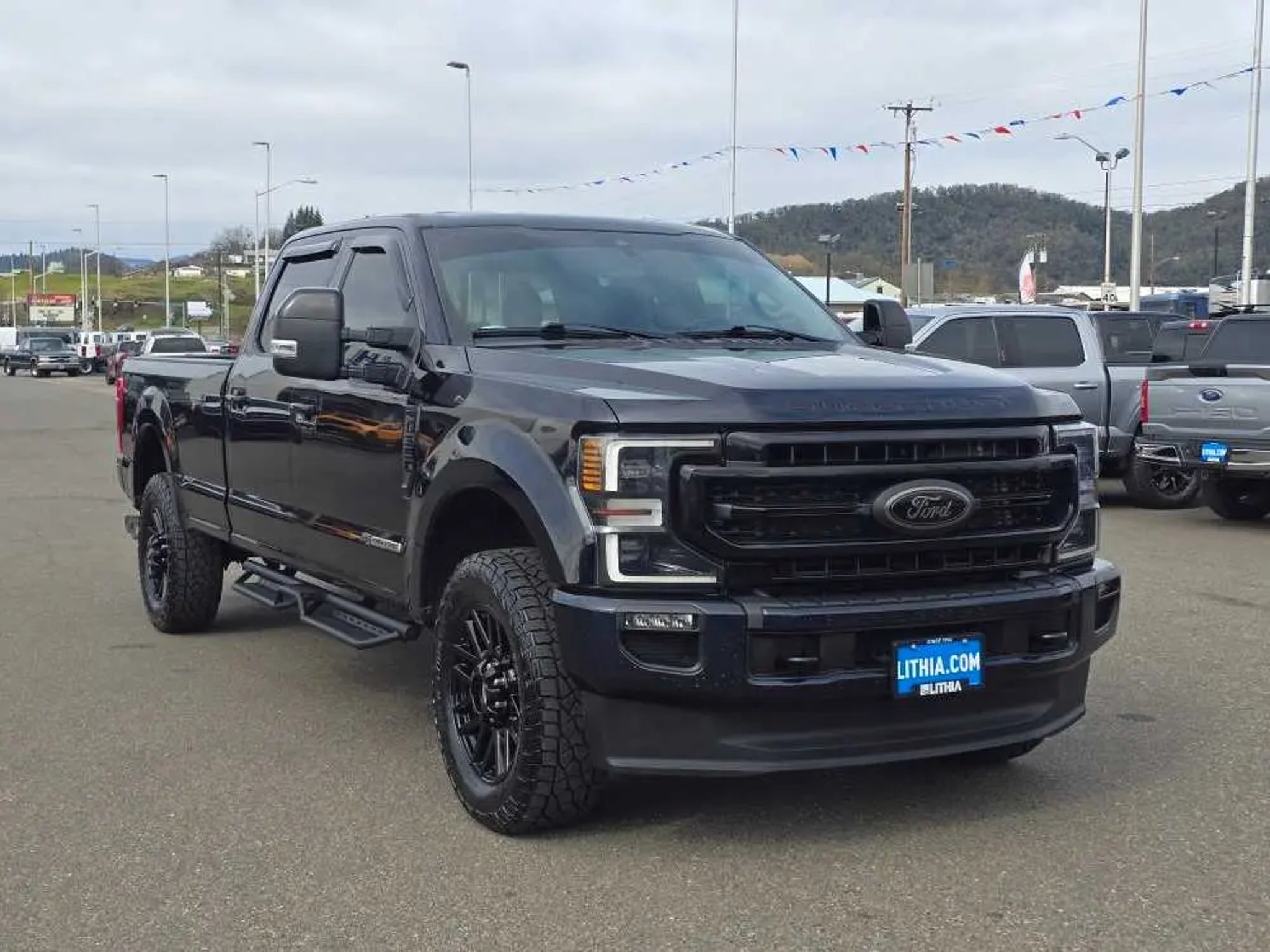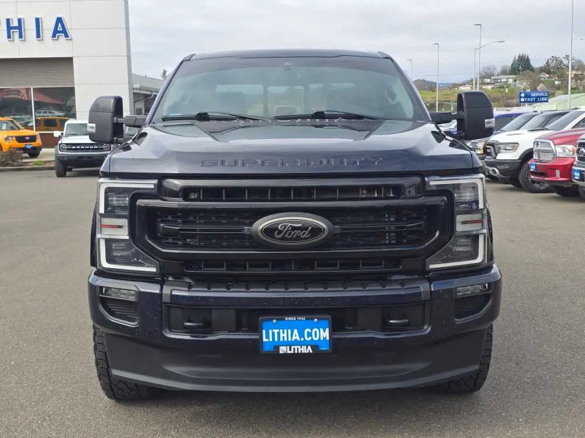 Clean, CARFAX 1-Owner, Ford Blue Certified, LOW MILES - 19,235! Heated Leather Seats, NAV, Tow Hitch, Onboard Communications System, iPod/MP3 Input, Premium Sound System, Diesel, Back-Up Camera, 4x4, LARIAT VALUE PACKAGE SEE MORE! KEY FEATURES INCLUDE Leather Seats, 4x4, Back-Up Camera, Diesel, Premium Sound System, iPod/MP3 Input, Onboard Communications System, Trailer Hitch, Dual Zone A/C, Apple CarPlay®, Blind Spot Monitor, Cross-Traffic Alert, WiFi Hotspot, Heated Leather Seats. MP3 Player, Keyless Entry, Privacy Glass, Steering Wheel Controls, Child Safety Locks. OPTION PACKAGES LARIAT BLACK APPEARANCE PACKAGE ebony black fender vent surround, Black Out Surrounds LED Only Headlamps, Rear Wheel Well Liners (Pre-Installed), Ebony Black Painted Front Grille Bars, Ebony Black Painted Mirror Caps, Tough Bed Spray-In Bedliner, tailgate-guard, black box bed tie-down hooks and black bed attachment bolts, Body-Color Front & Rear Bumpers, Wheels: 20 High-Gloss Black Premium Painted Alum, Tires: LT275/65Rx20E OWL Automatic Transmission (4), Spare may not be the same as road tire, 6 Ebony Black Angular Running Boards, LARIAT VALUE PACKAGE Memory Power-Adjustable Pedals, Power Heated/Ventilated Driver Seat w/Memory, Remote Start System, PowerScope Trailer Tow Mirrors w/Memory, EASY ENTRY®/Exit Memory Drivers Seat Feature, LED Box Lighting, LED Center High-Mounted Stop Lamp (CHMSL), Power Heated/Ventilated Passenger Seat, VOICE-ACTIVATED NAVIGATION HD and SiriusXM Traffic and Travel Link, Note: SiriusXM Traffic and Travel Link includes a, Services are not available in Alaska and Hawaii, SiriusXM audio and data services each require a subscription sold separately, or as a package, by SiriusXM Radio Inc, If you decide to continue service after your trial, the subscription plan you choose will automatically renew thereafter and you will be charged according to your chosen payment method at then-current rates, Fees and taxes apply, To cancel you must call SiriusXM at |See SiriusXM customer agreement for complete terms at |All fees and programming subject to change, Sirius, XM and all related marks and logos are trademarks of Sirius XM Radio Inc, ELECTRONIC-LOCKING W/3.55 AXLE RATIO, TAILGATE STEP & HANDLE, HEATED REAR SEATS, RAIN-SENSING WINDSHIELD WIPERS Heated Steering Wheel, UNIVERSAL GARAGE DOOR OPENER (UGDO), TRANSMISSION: TORQSHIFT 10-SPEED AUTOMATIC SelectShift and selectable drive modes: normal, tow/haul, eco, deep sand/snow and slippery (STD). 2021 Ford Super Duty F-350 SRW Pickup with Antimatter Blue exterior and Black interior features a 8 Cylinder Engine with 385 HP at 5750 RPM*. Non-Smoker vehicle BUY WITH CONFIDENCE AutoCheck One Owner Every Blue Certified used vehicle must pass a 139-point inspection, Service available at any Ford Dealer in the 50 states, and a manufacturer-backed 90-Day/4,000-Mile (whichever comes first) Comprehensive Limited Warranty, and Complimentary 24/7 Roadside Assistance, 11,000 FordPass Rewards Points to use towardscheduled maintenance visits or other rewards, CARFAX Vehicle History Report included, Complimentary SiriusXM 3-month trial Clean BUY FROM AN AWARD WINNING DEALER Lithia Ford of Roseburg is a Douglas County, OR car dealer committed to earning customers for life. That means we respect your time, treat you like a neighbor and listen to what you are looking for and then give you straightforward information you need to make an intelligent decision.We proudly serve our neighbors in Roseburg and the surrounding I-5 corridor communities of Sutherlin, Winston, Green and even Eugene. Plus license and title, and $250 title and registration processing fee. Price does not include a charge for 0.40% Oregon Corporate Activity Tax. A 0.5% state privilege tax will be added to new vehicles. Not all sales at MSRP.
