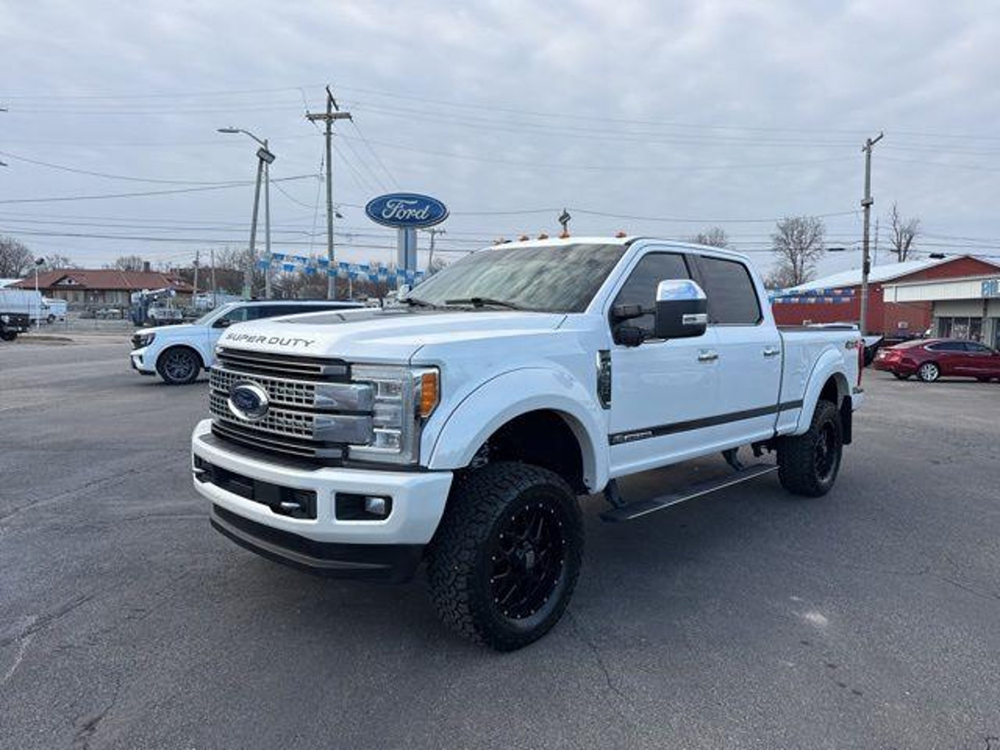 2018 White Ford F-250SD Platinum TorqShift 6-Speed Automatic Power Stroke 6.7L V8 DI 32V OHV Turbodiesel 4WD Clean CARFAX. Diagnostic Alerts, USB Charging ports, Cruise Control, Backup Camera, Keyless Entry, Multi-zone Climate Control, Power Locks, Power Windows, Bluetooth, Hands-Free, Navigation, Portable Audio Connection, Premium Audio, Security System, Heated Seats, Leather Seats, Premium Wheels, Sunroof, Trailer Hitch, Aftermarket wheels!, ABS brakes, Alloy wheels, Compass, Electronic Stability Control, Front dual zone A/C, Heated door mirrors, Heated front seats, Heated rear seats, Illuminated entry, Low tire pressure warning, Navigation System, Remote keyless entry, Traction control. Odometer is 30800 miles below market average! Priced below KBB Fair Purchase Price! Awards: * 2018 KBB.com 10 Most Awarded Brands * 2018 KBB.com Brand Image Awards At Bill Dobson Ford we believe in MARKET VALUE PRICING all vehicles in our inventory. We use real-time Internet price comparisons to constantly adjust prices to provide ALL BUYERS The BEST VALUE possible. We do not mark them up, to mark them down! We utilize state-of-the-art technology to constantly monitor pricing trends in order to offer our shoppers the best competitive pricing and value. Our entire team is committed to helping you buy a car the way we would want to buy a car! We sell and service all makes and models of Pre-owned / Used Vehicles Used Cars, Used Trucks, Used Sport Utility, 10K under used cars, Ford, Chevrolet/Chevy, Honda, Toyota, Porsche, Land Rover, Jaguar, INFINITI, Audi, Nissan, Mazda, Hyundai, Chrysler, Jeep, Dodge, Ram, SRT, Mitsubishi, Lexus, Kia, Volkswagen, Mini, BMW, Mercedes, Fiat, Volvo, GMC, Cadillac, Lincoln as well as other brands. Proudly serving these areas Indiana, Montgomery, Vincennes, Loogootee, Bloomfield, Petersburg, Odon, Plainville, Elnora, Linton & Wheatland. A Dobson Deal is a Better Deal!!!! Call 812-618-1647.