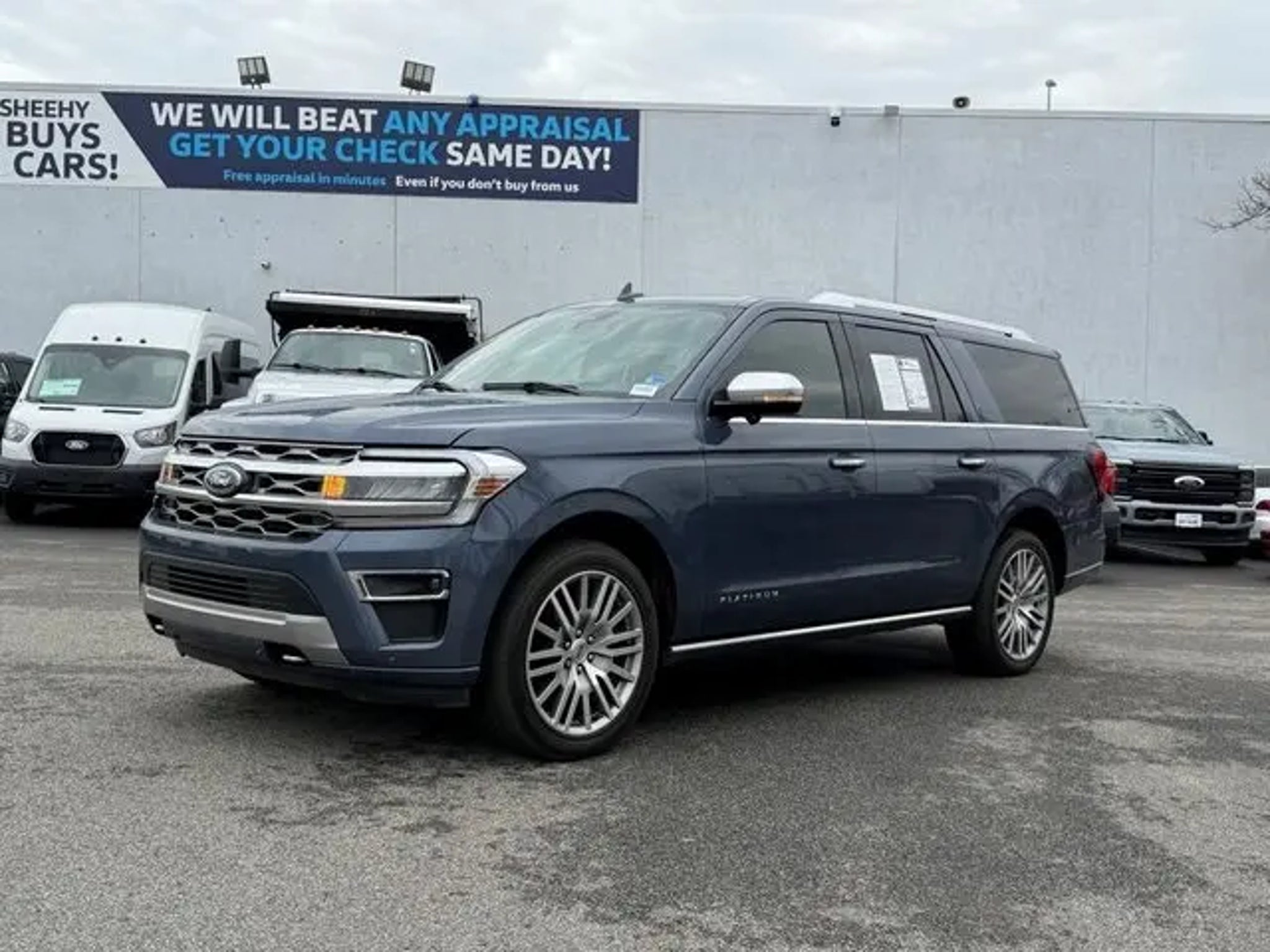 2022 Ford Expedition Max Platinum 4WD at Sheehy Ford of Springfield! This Expedition Max has an exterior color of Blue Metallic with Carmelo Leather interior. This preowned Ford Expedition Max is equipped with amazing options like: Equipment Group 600A Standard Package, Heavy-Duty Trailer Tow Package (3.73 Axle Ratio, 360-Degree Camera w/Trailer Reverse Guidance, Integrated Trailer Brake Controller, and Pro Trailer Backup Assist), Auto High-beam Headlights, Continuous Controlled Damping (CCD), Electronic Stability Control, Memory seat, Power driver seat, Power Liftgate, Power moonroof, Speed control, and Wheels: 22 12-Spoke Polished Aluminum. CARFAX One-Owner. Some vehicles may have unrepaired safety recalls. Sheehy Auto Stores is not a manufacturer-authorized repair facility for all brands, but your local same-brand dealer will provide recall repair services for free. To check for open recalls please visit https://www.nhtsa.gov/recalls?vin=1FMJK1MT6NEA47371#vin.