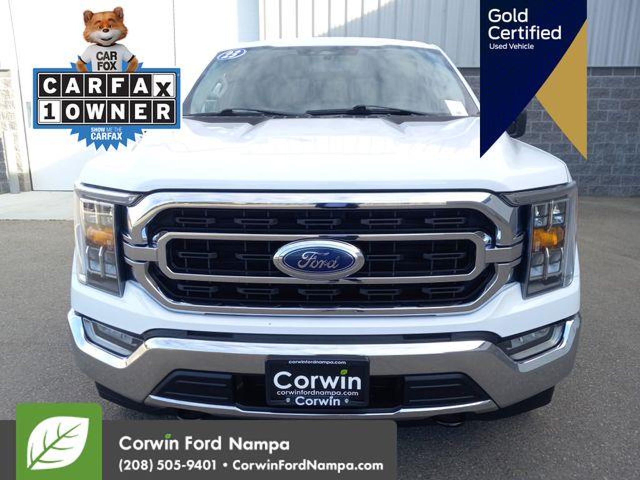 Drive our Certified, One Owner 2023 Ford F-150 XLT SuperCrew 4X4 with the High Pack in Oxford White, and discover every detail matters! Powered by a Twin-TurboCharged 3.5 Liter EcoBoost V6 serving up 400hp connected to a 10 Speed Automatic transmission so you can get more done with less effort. This Four Wheel Drive truck is also easy to maneuver at work or play, and it sees nearly 23mpg on the highway. Rugged good looks are standard with our F-150, which showcases chrome bumpers, alloy wheels, and our High Pack that includes LED headlights/fog lamps, running boards, tonneau cover, a bedliner, a Class IV hitch, a remote tailgate release, and a SecuriCode keypad. Our XLT cabin adds our High Pack to help you command your days with heated power front seats, a wrapped steering wheel, dual-zone automatic climate control, keyless access/ignition, remote start, an 8-inch productivity screen, and enhanced voice recognition. Use that or the 8-inch touchscreen to manage Apple CarPlay®/Android Auto®, WiFi compatibility, Bluetooth®, and an AM/FM stereo for rewarding digital benefits. This superior interior has plenty of versatile storage, too! Ford inspires confidence with sophisticated safety from lane-keeping assistance, automatic emergency braking, blind spot monitoring, forward collision warning, a rearview camera, dynamic hitch assistance, hill-start assistance, Safety Canopy airbags, and more. Now find out for yourself why our F-150 XLT is so popular! Save this Page and Call for Availability. We Know You Will Enjoy Your Test Drive Towards Ownership! Corwin Ford Nampa! Friendly service and aggressive pricing is why we are your new and pre-owned vehicle dealer serving, Nampa, Boise, Meridian, Caldwell, Kuna, Eagle, Emmett, Idaho City, Wilder, New Plymouth, Star, Middleton, Weiser, Payette, Horseshoe Bend, Mountain Home, Idaho, and surrounding states.