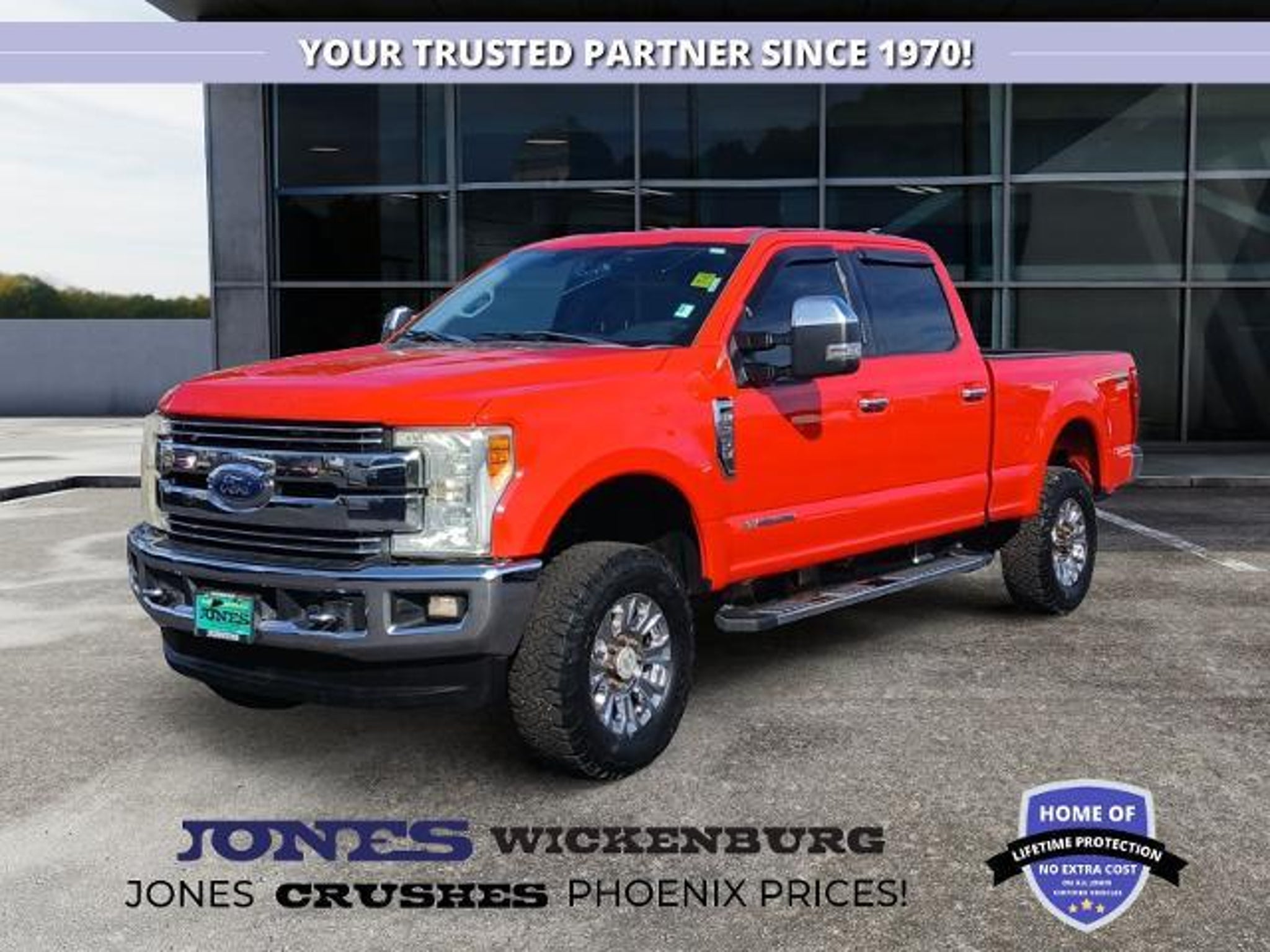 2017 Ford F250 Super Duty Lariat Strength Meets Sophistication Offered proudly by Jones Ford CJDR Wickenburg When you want serious capability wrapped in premium comfort, the 2017 Ford F250 Super Duty Lariat is the truck that stands tall. Built for those who need heavy-duty performance without sacrificing refinement, this Lariat model delivers power, presence, and everyday usability in a way only a Super Duty can. Beneath the hood lives the heart of a workhorse: Fords available 6.7L Power Stroke Turbo Diesel V8, producing a massive 440 horsepower and 925 lb-ft of torque one of the strongest engine configurations offered in the 2017 Super Duty lineup. Paired with the Torq Shift 6-speed automatic transmission, the truck feels smooth, confident, and ready for demanding towing and hauling tasks. The Crew Cab design offers an expansive interior with over 40 inches of front headroom and nearly 44 inches of front legroom, giving every passenger space to relax even on long drives. Premium Lariat trim touches like soft touch materials, upscale finishes, and advanced convenience features create a cabin that feels more like a luxury SUV than a work truck. And because real trucks earn their reputation by what they do, the F250 Lariat doesn't disappoint: diesel equipped models can tow up to 21,000 pounds, giving you the confidence to pull heavy trailers, equipment, or recreational gear without hesitation. The fully boxed high strength steel frame, paired with Fords military grade aluminum alloy body, ensures long-lasting durability while shedding unnecessary weight for improved performance. From rugged job sites to Arizona backroads, this F250 Lariat delivers a ride that feels stable, powerful, and unmistakably Ford Tough. At Jones Ford CJDR Wickenburg, you'll experience our signature smalltown honesty, friendly guidance, and a no pressure approach designed to make your truck buying experience easy and enjoyable. Ready to take the wheel? Visit our showroom, contact us today, or schedule a test drive your next powerhouse awaits.